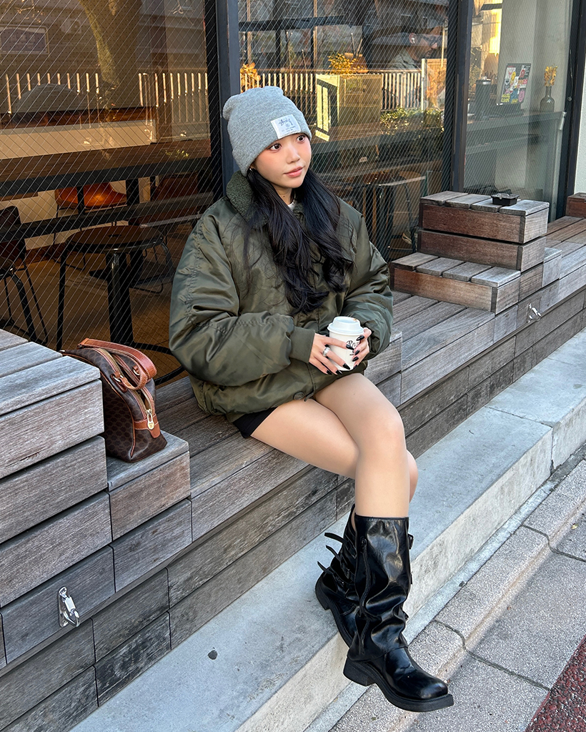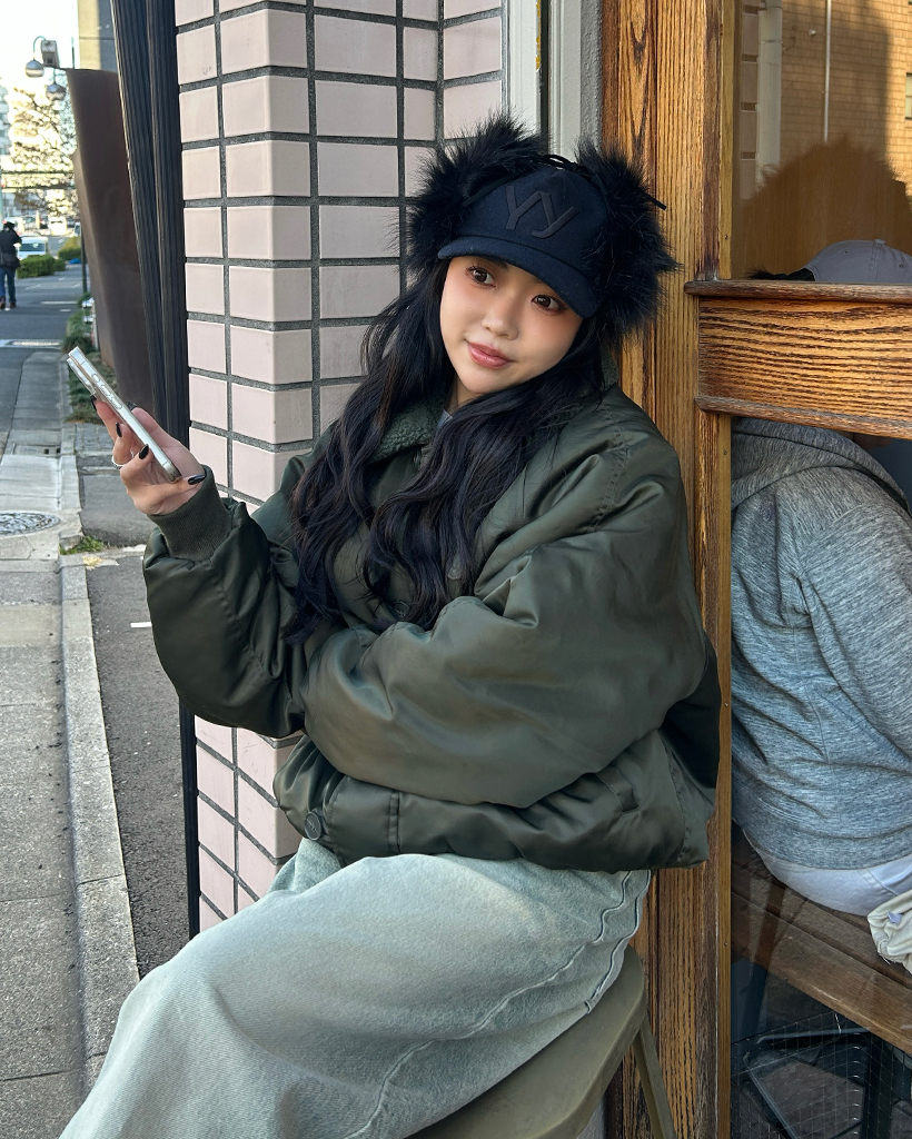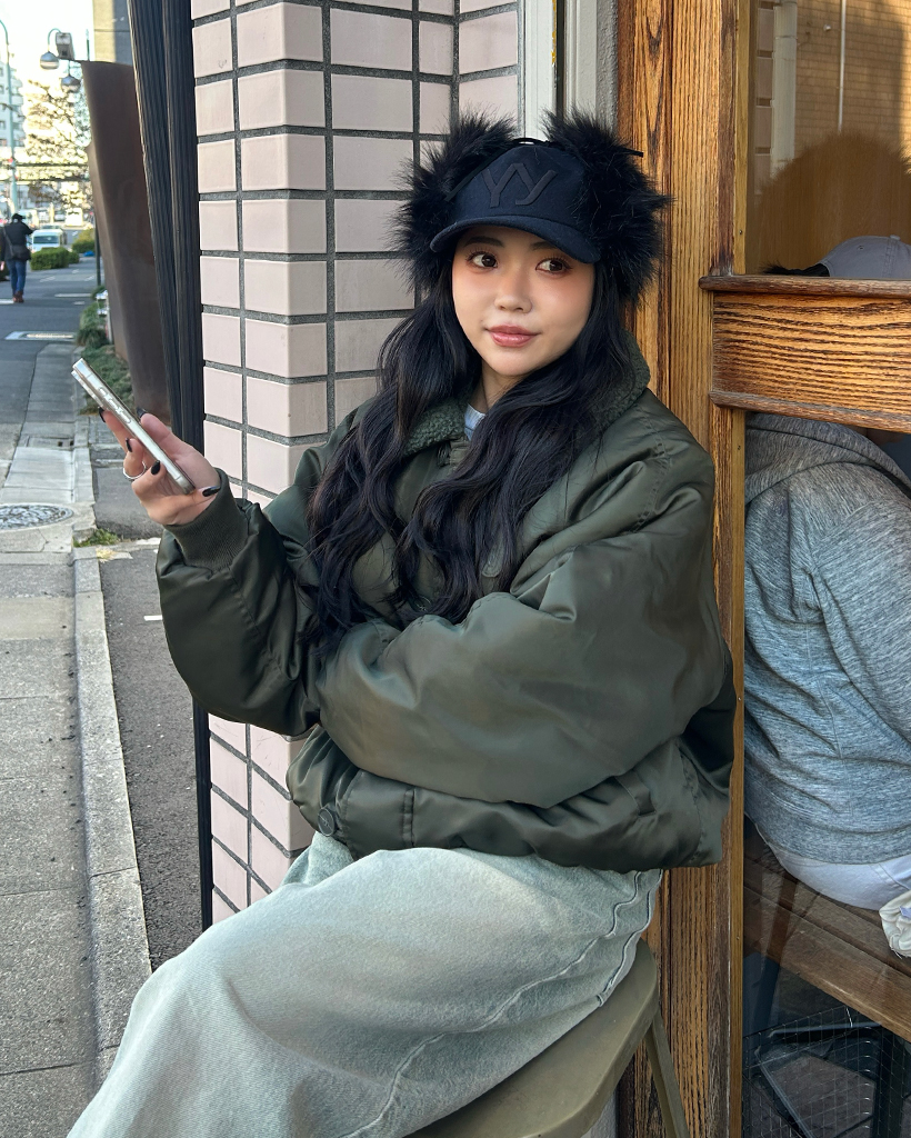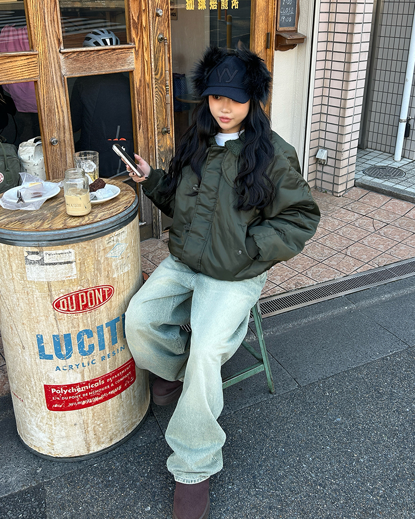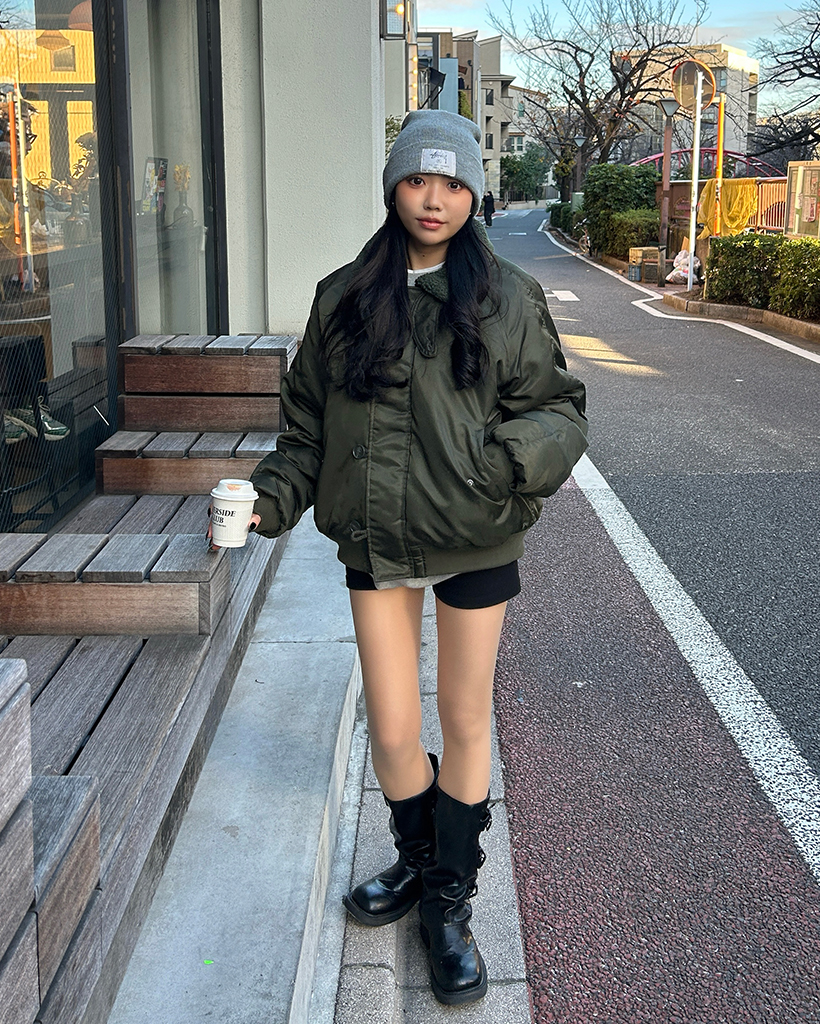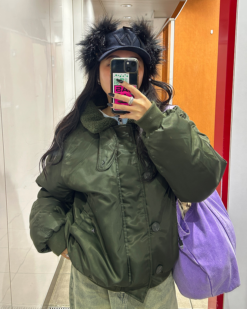(ユニセックス)ボアカラーループボタンフライトジャケット