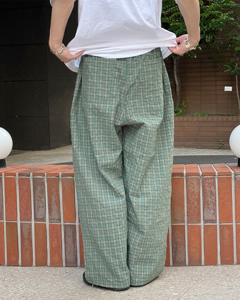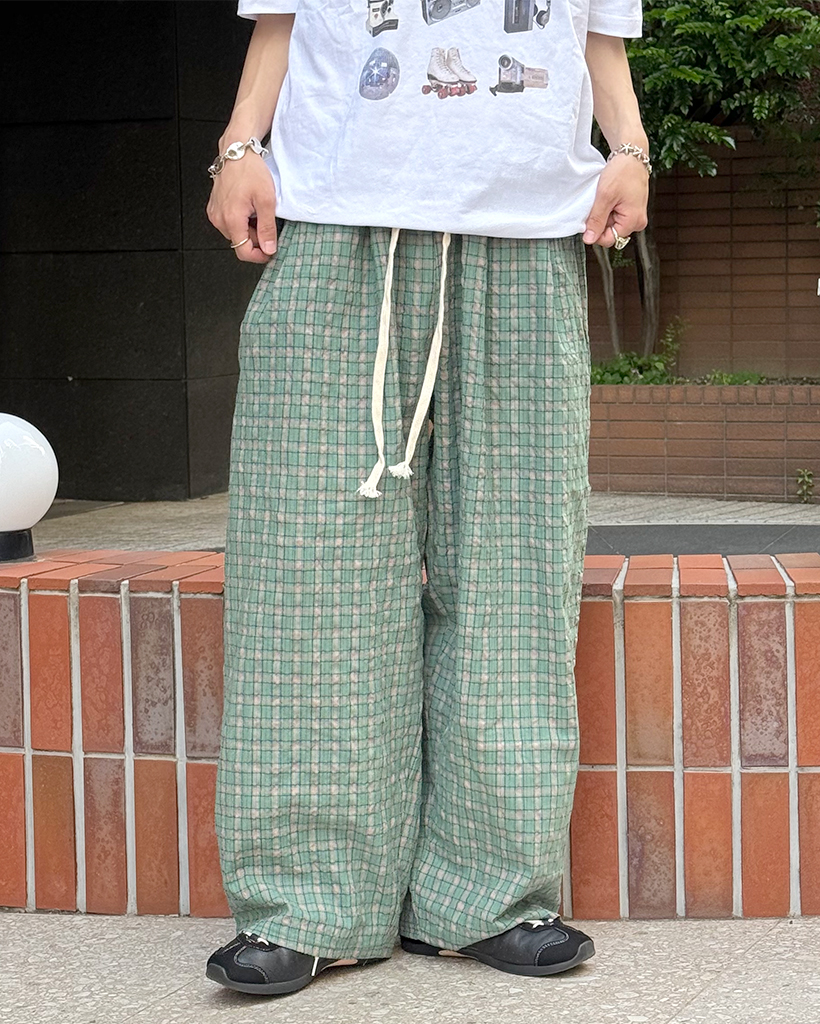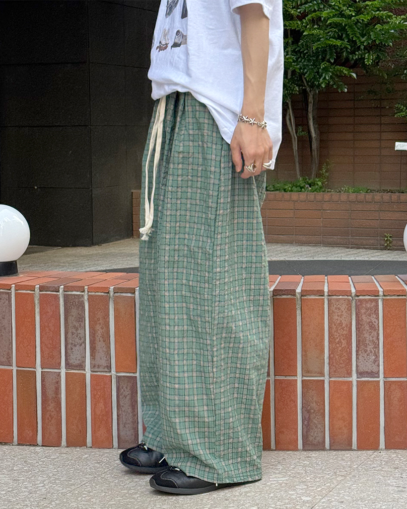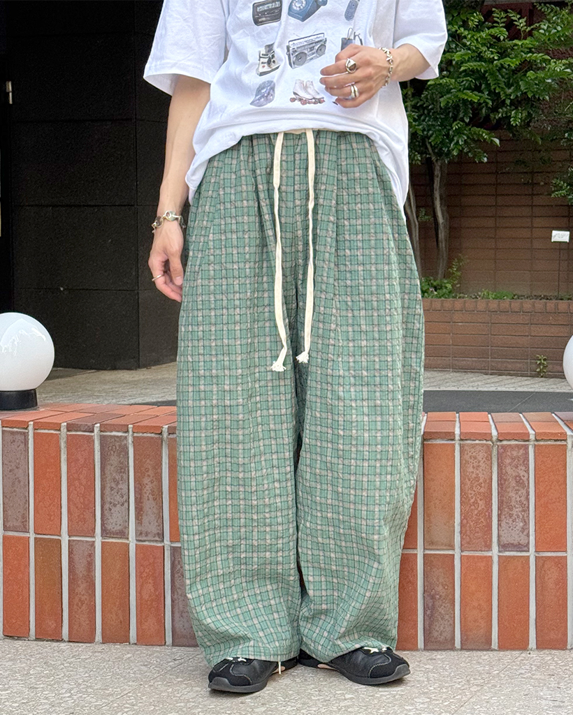 (ユニセックス)カラーチェックパターンワイドパンツ