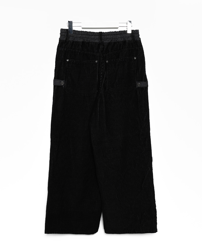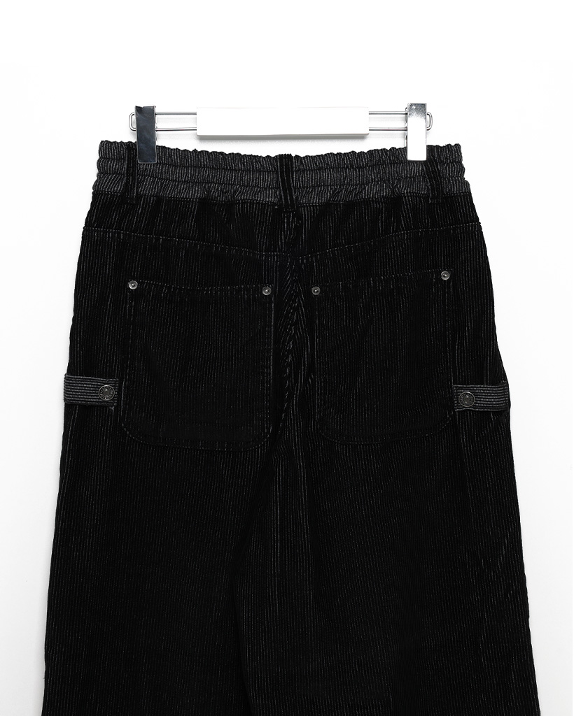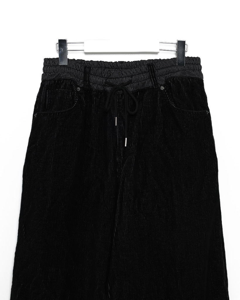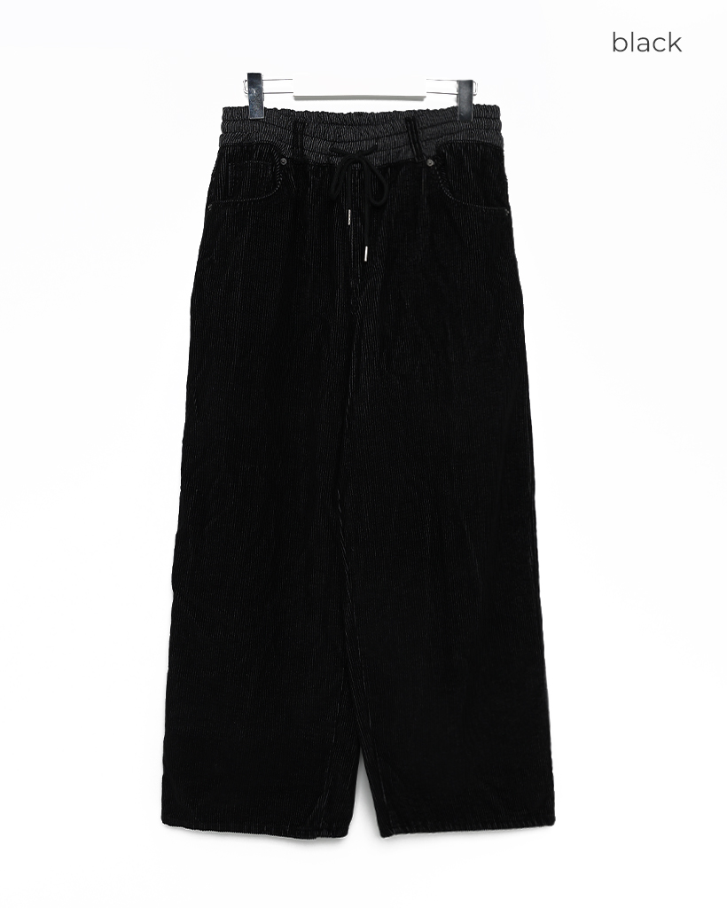 (ユニセックス)ウエストゴムストリング付きコーデュロイワイドパンツ