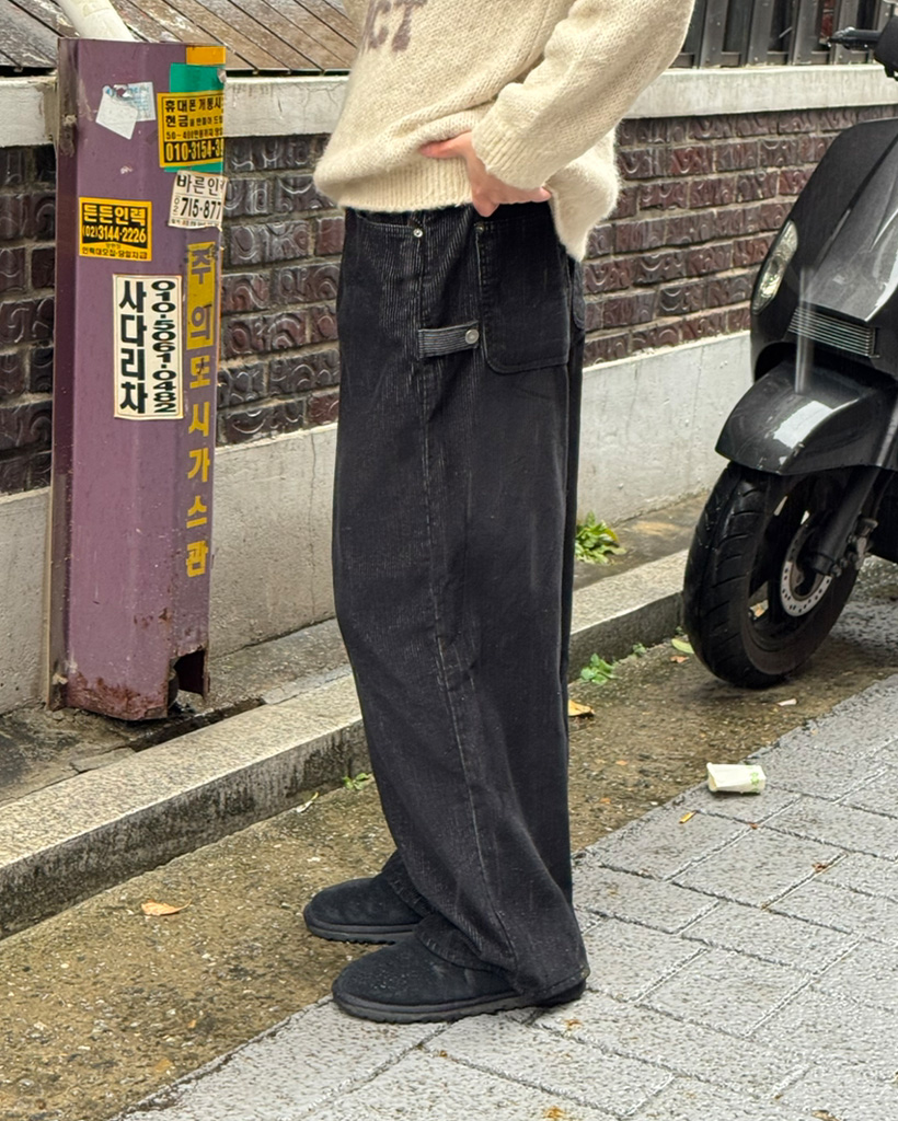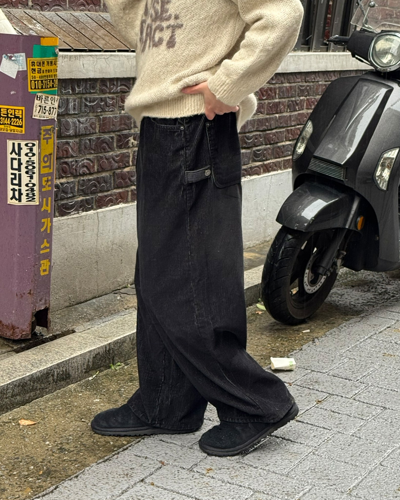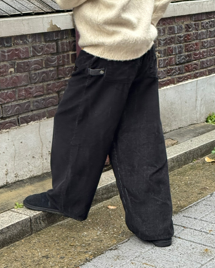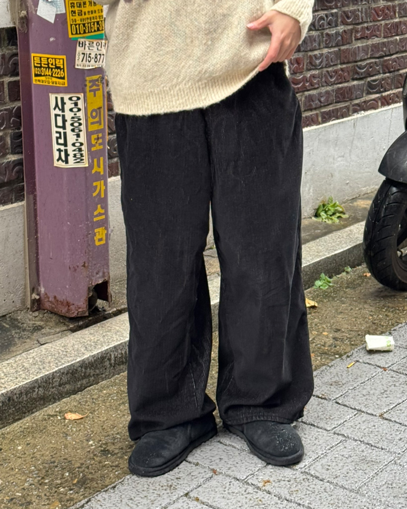(ユニセックス)ウエストゴムストリング付きコーデュロイワイドパンツ