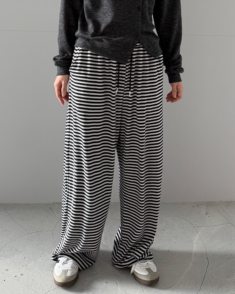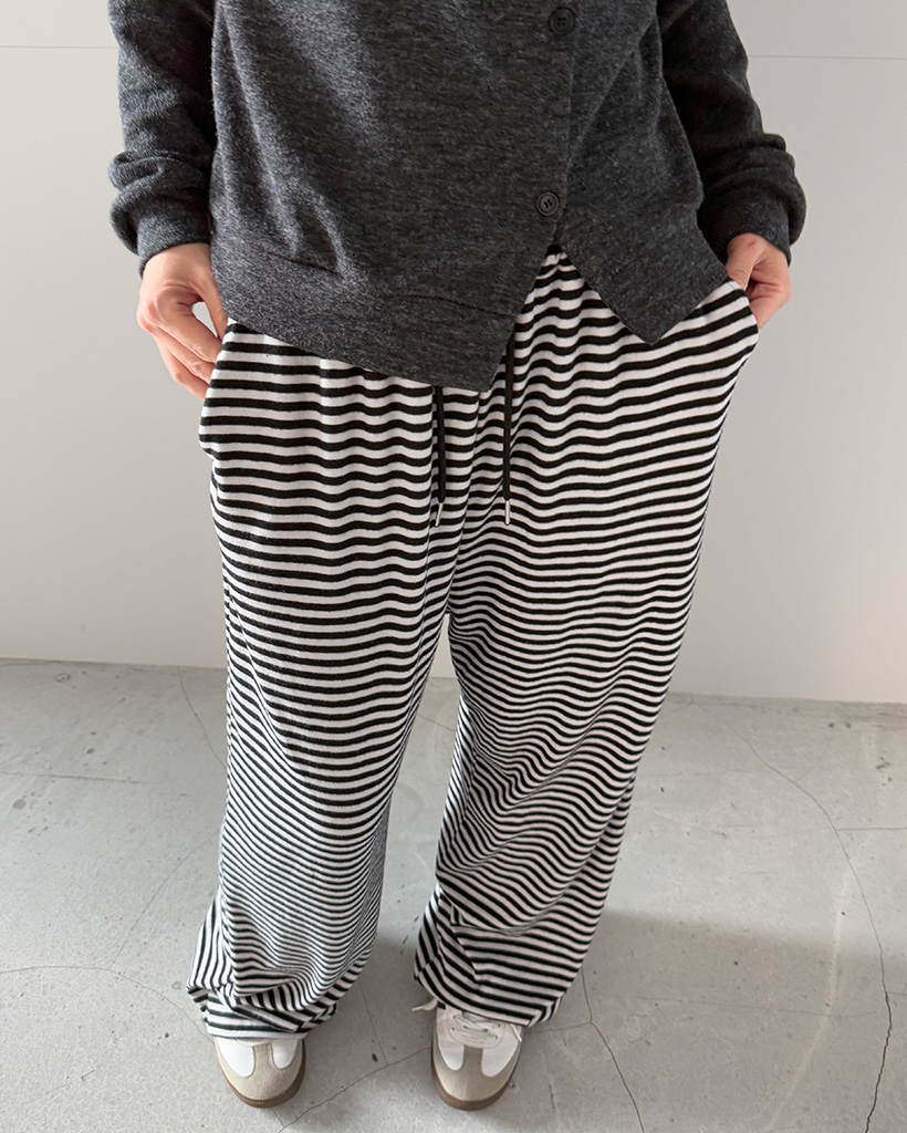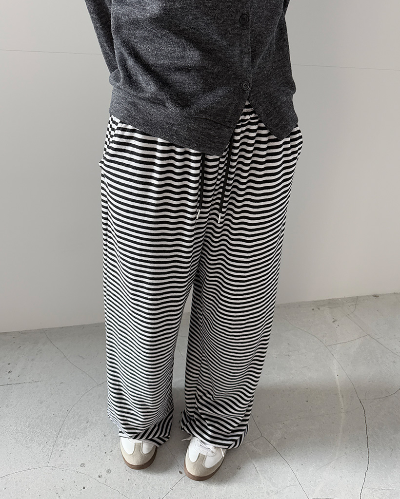 ウエストゴムワイドボーダーパンツ