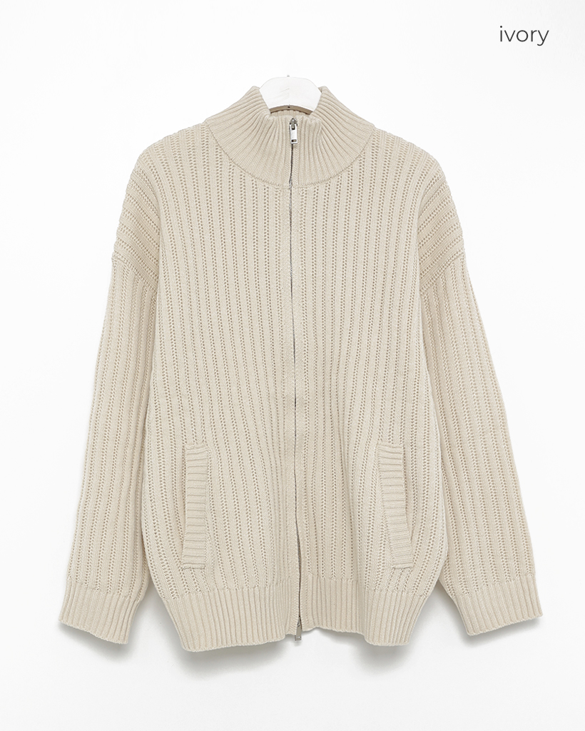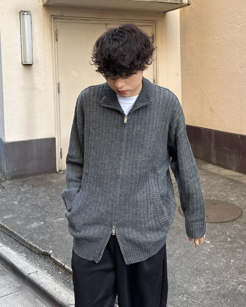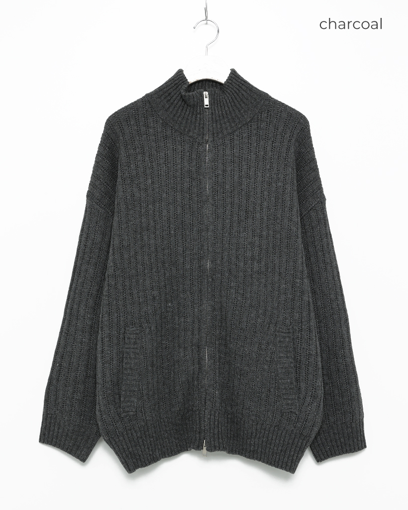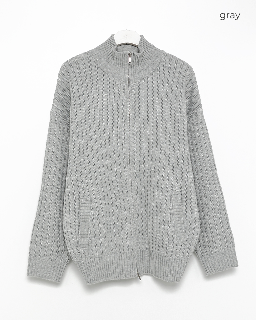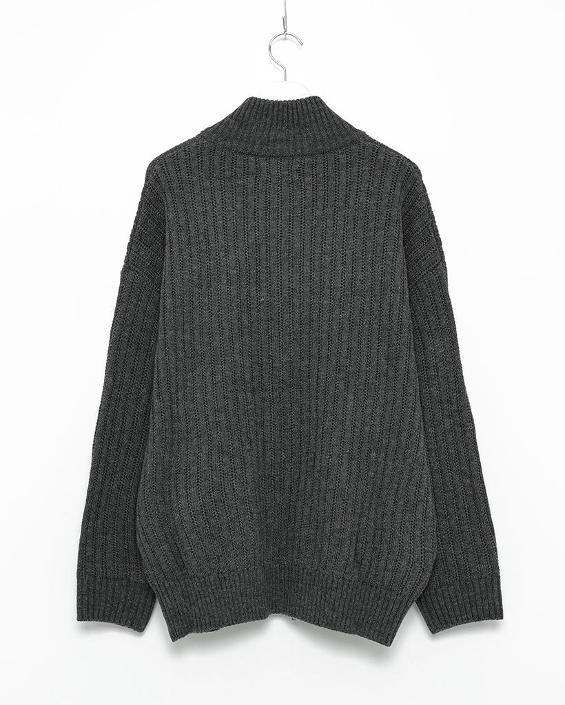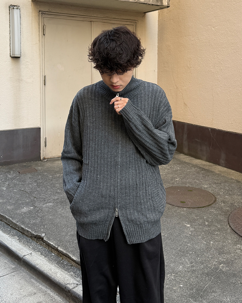 ハイネックユニークリブニットダブルジップカーディガン
