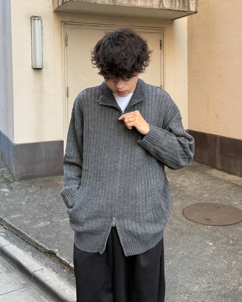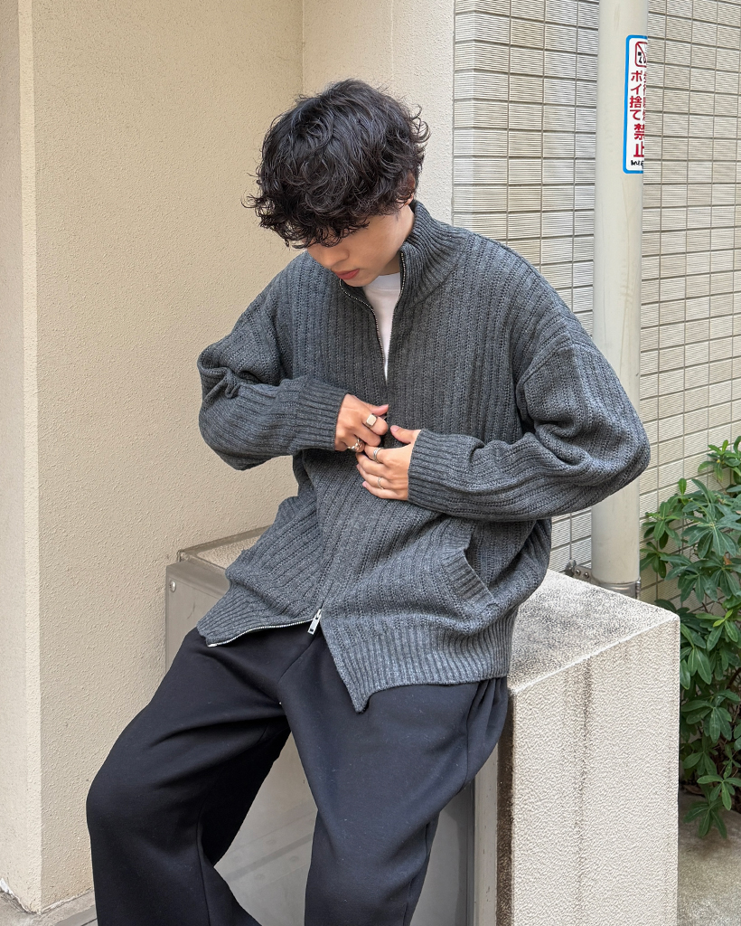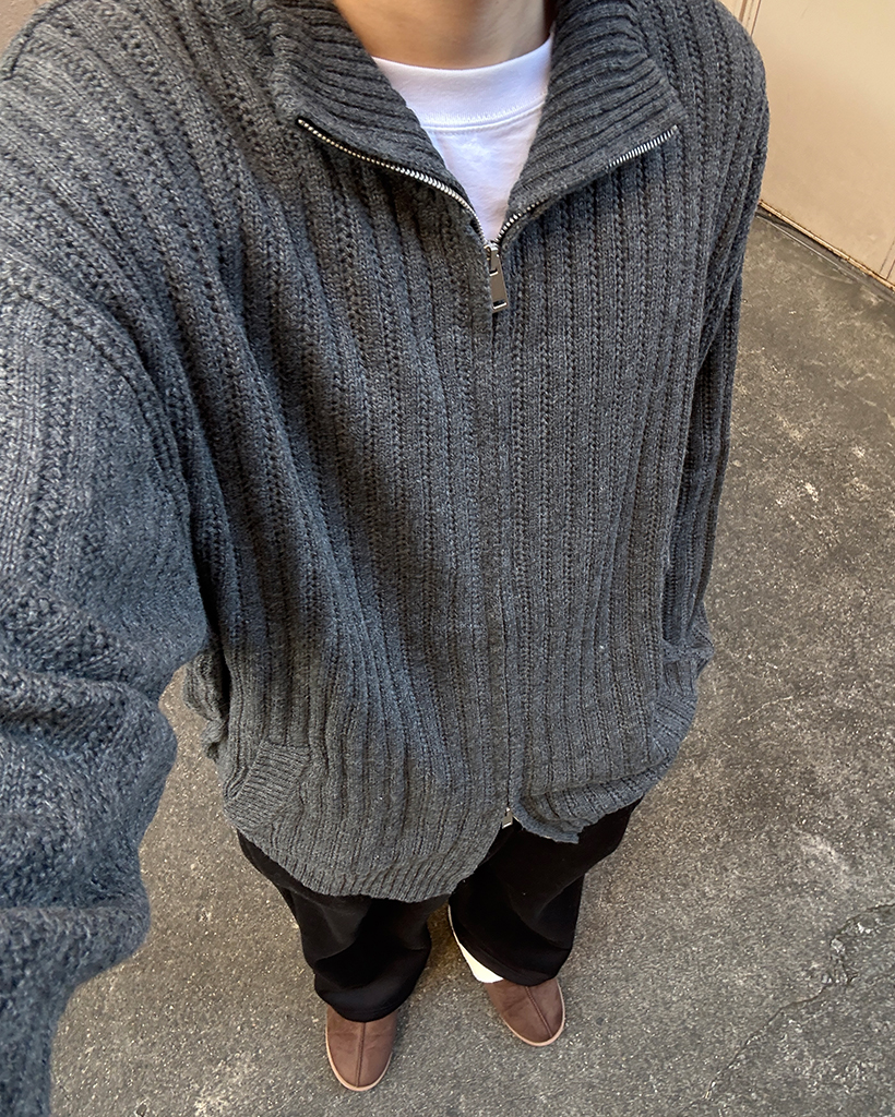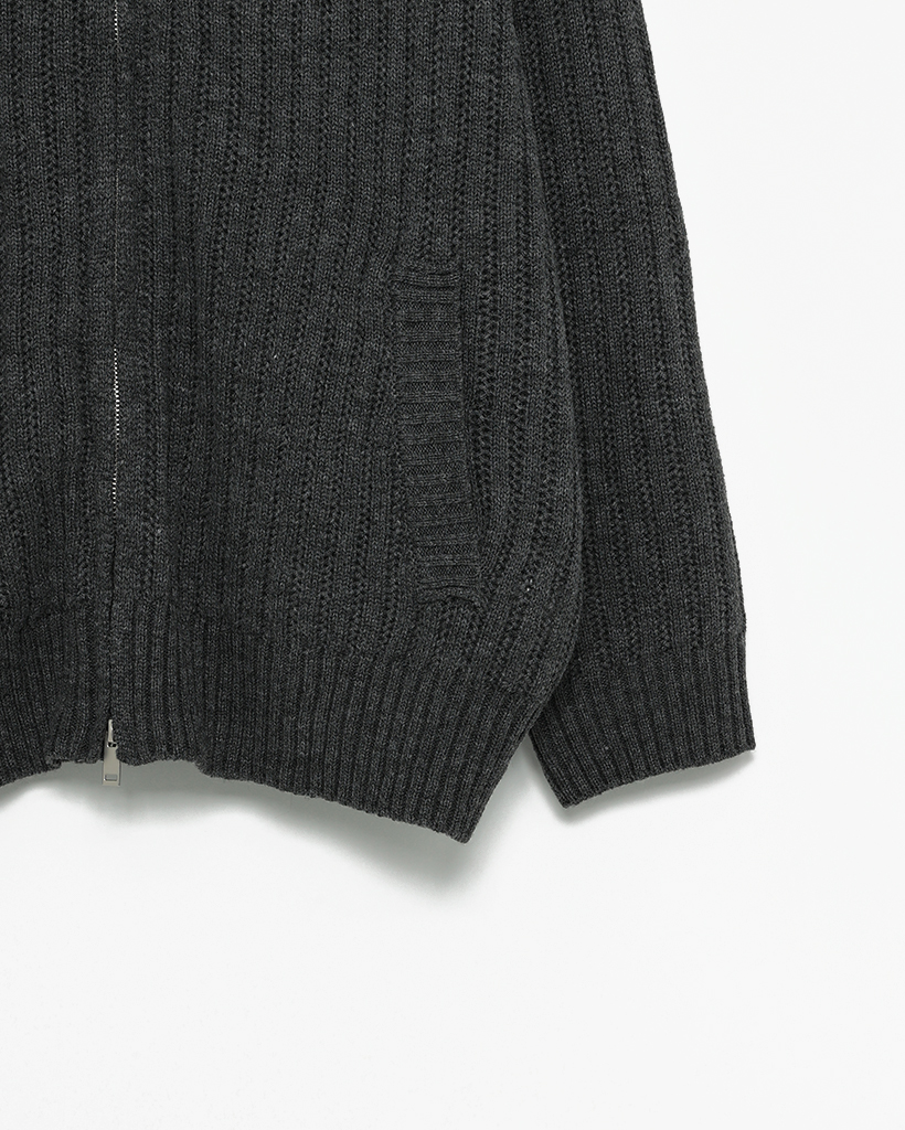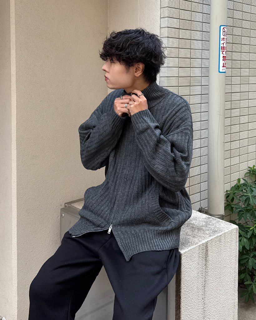 ハイネックユニークリブニットダブルジップカーディガン