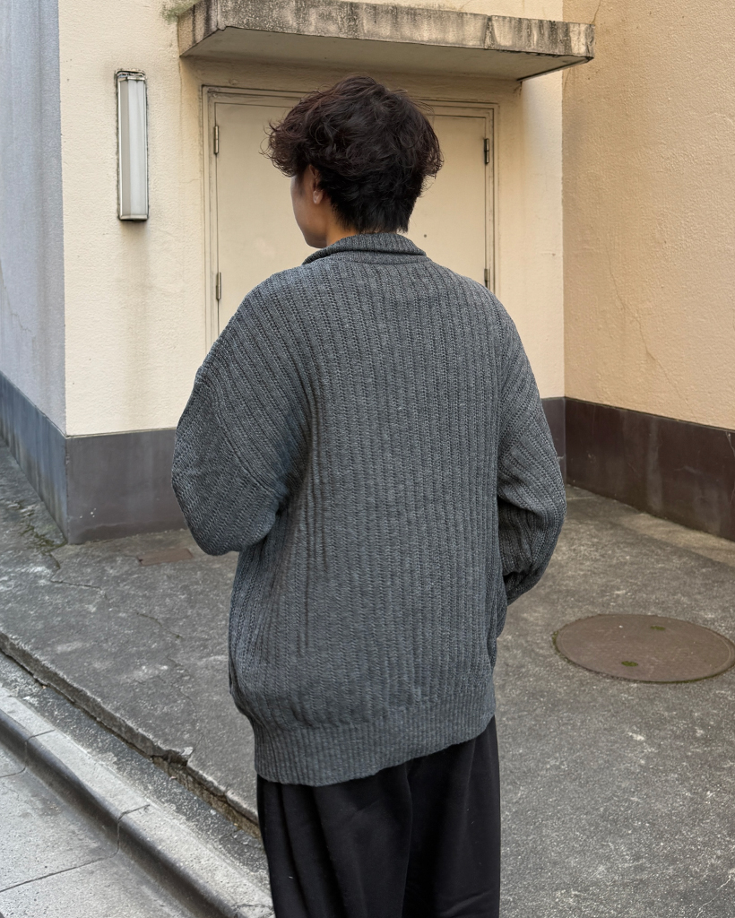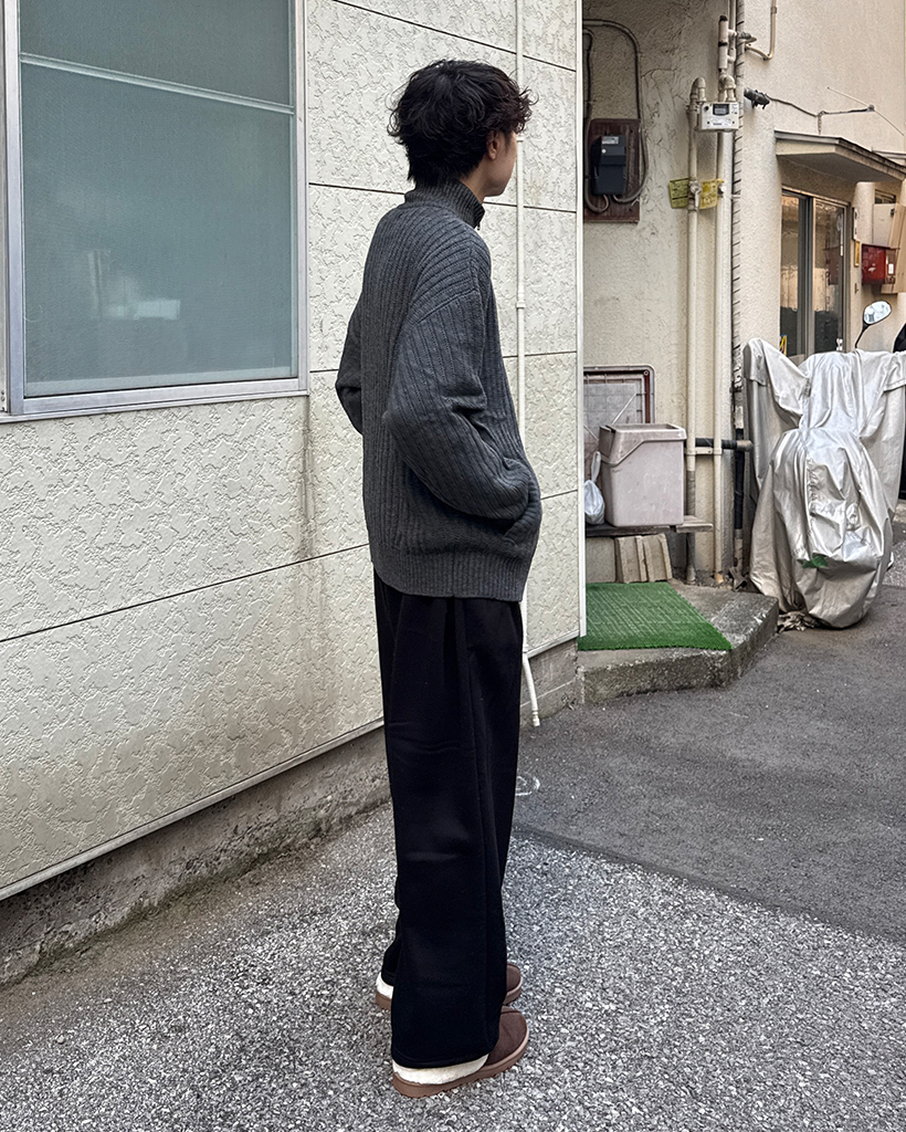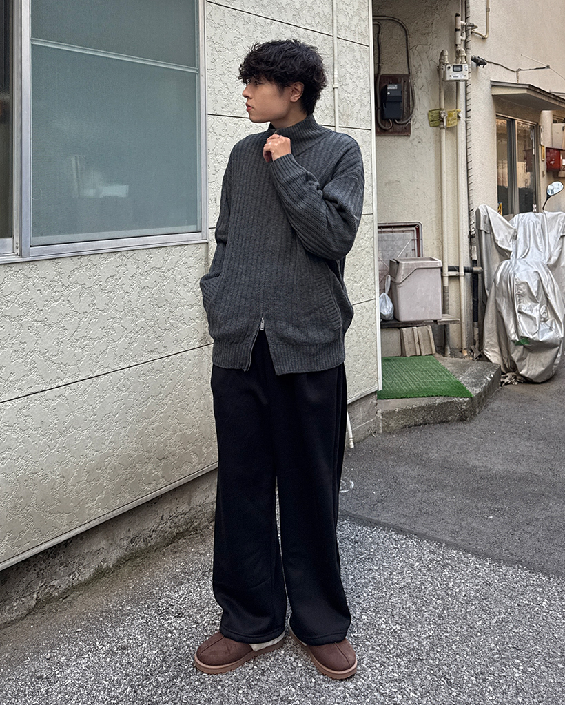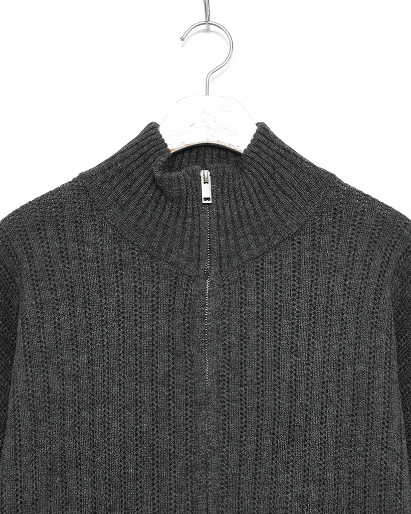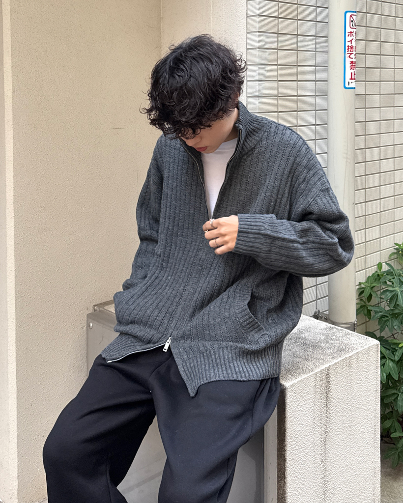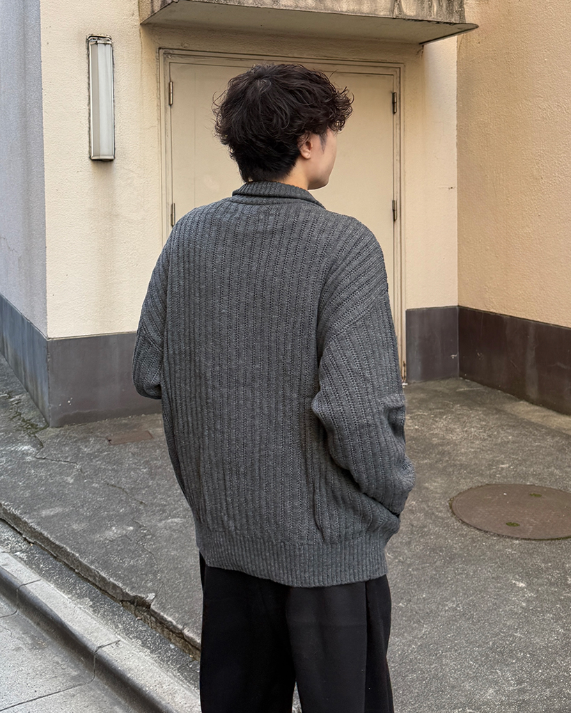 ハイネックユニークリブニットダブルジップカーディガン