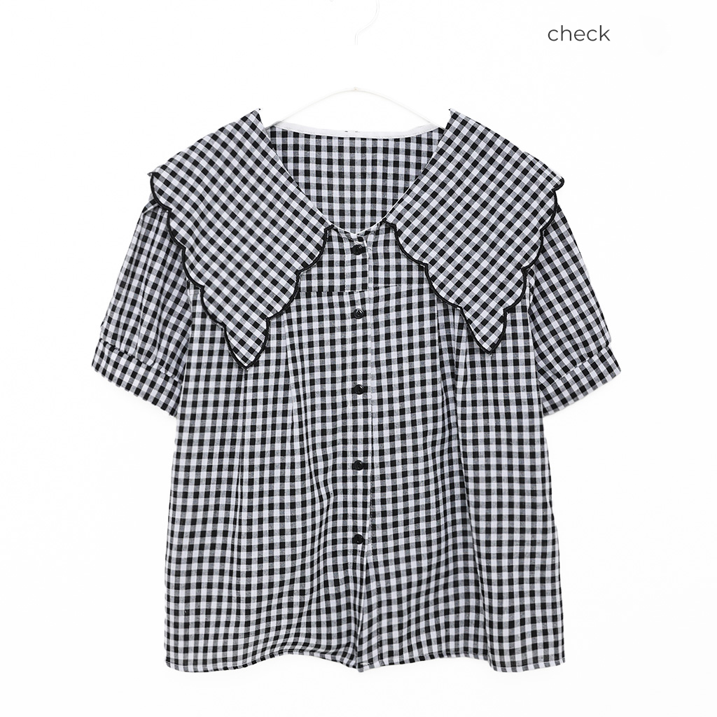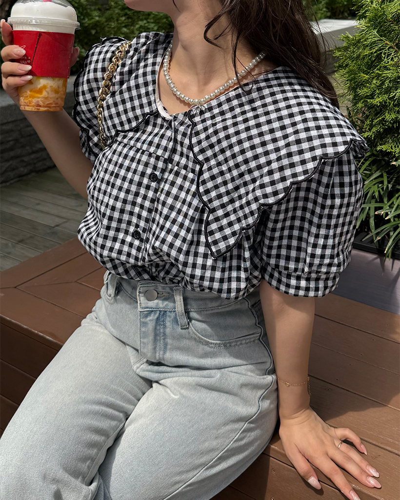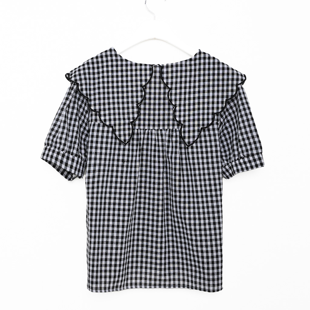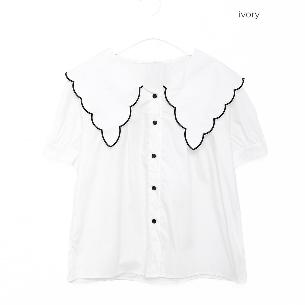 スカラップピルグリムカラーパフスリーブボタンブラウス