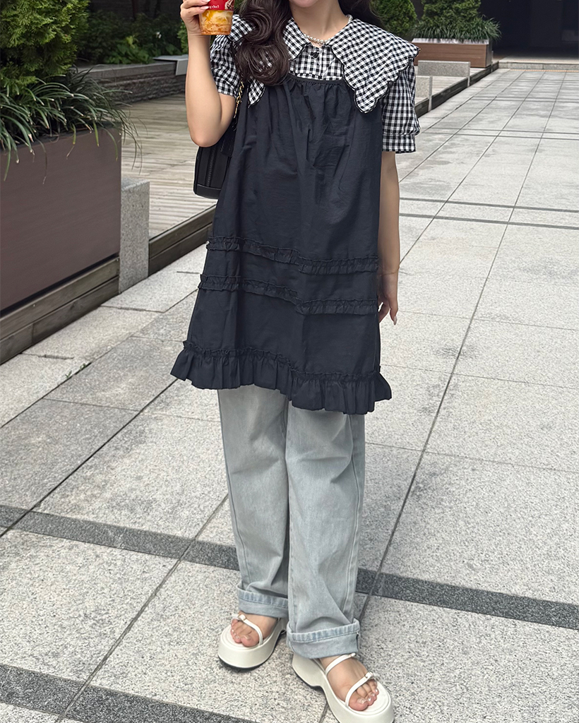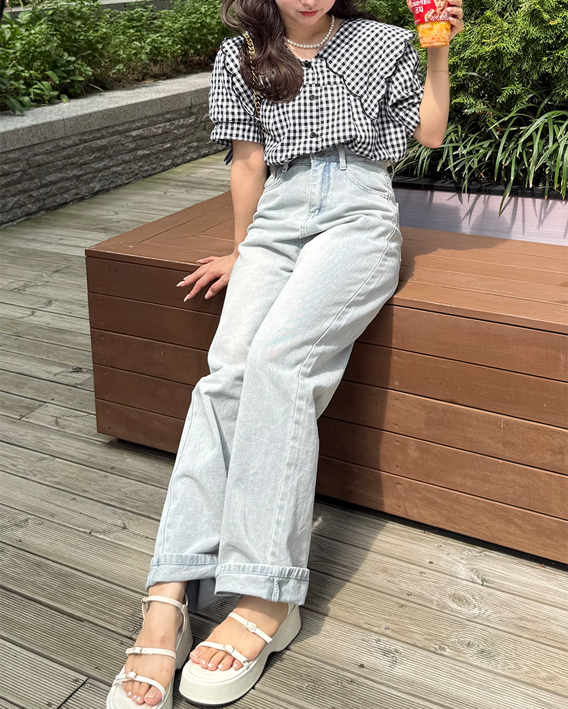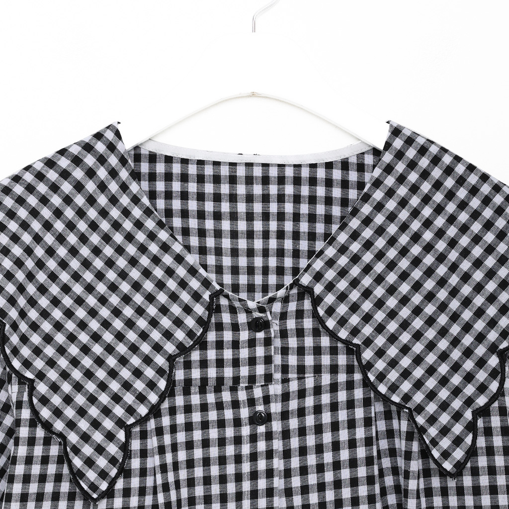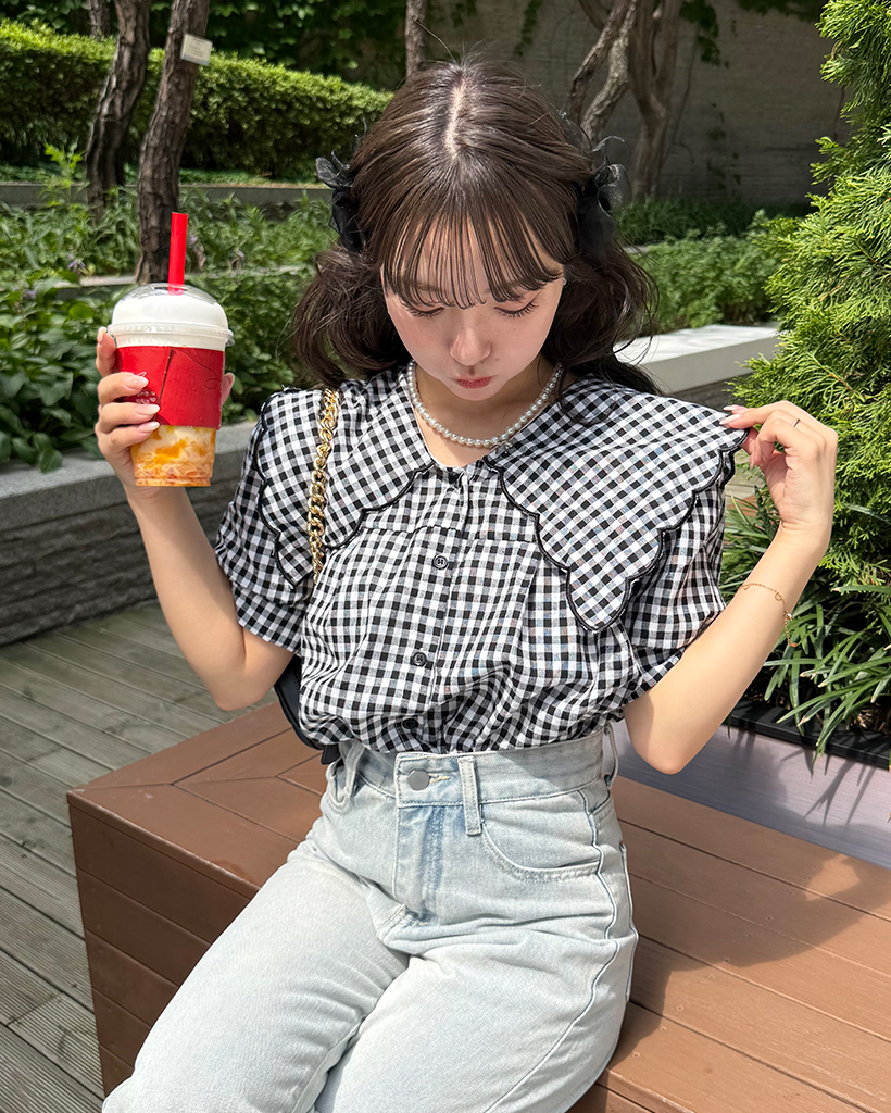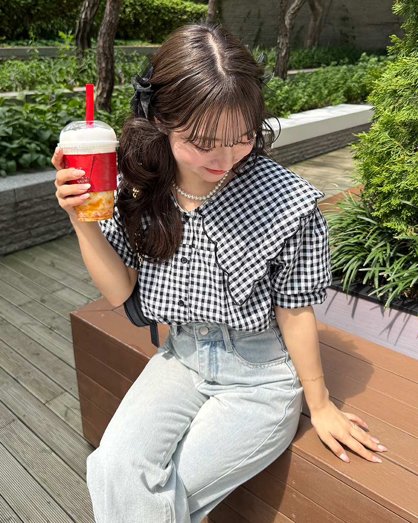 スカラップピルグリムカラーパフスリーブボタンブラウス