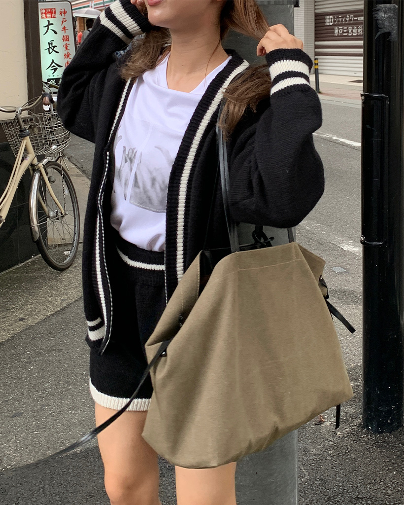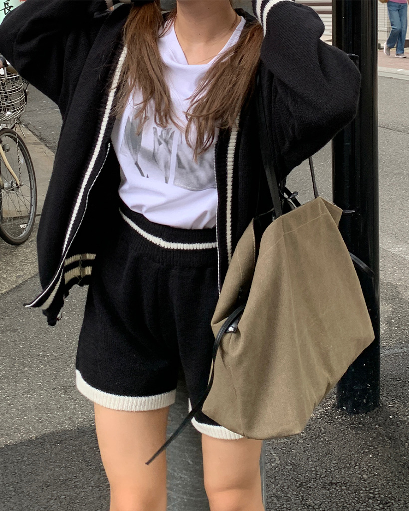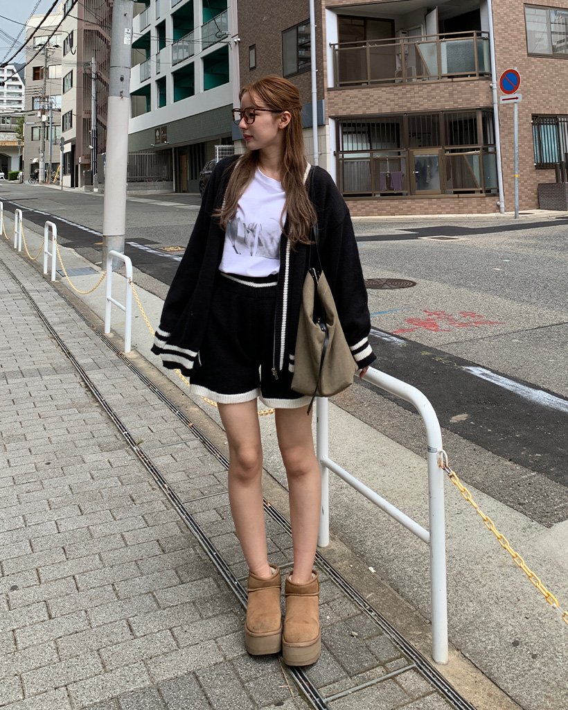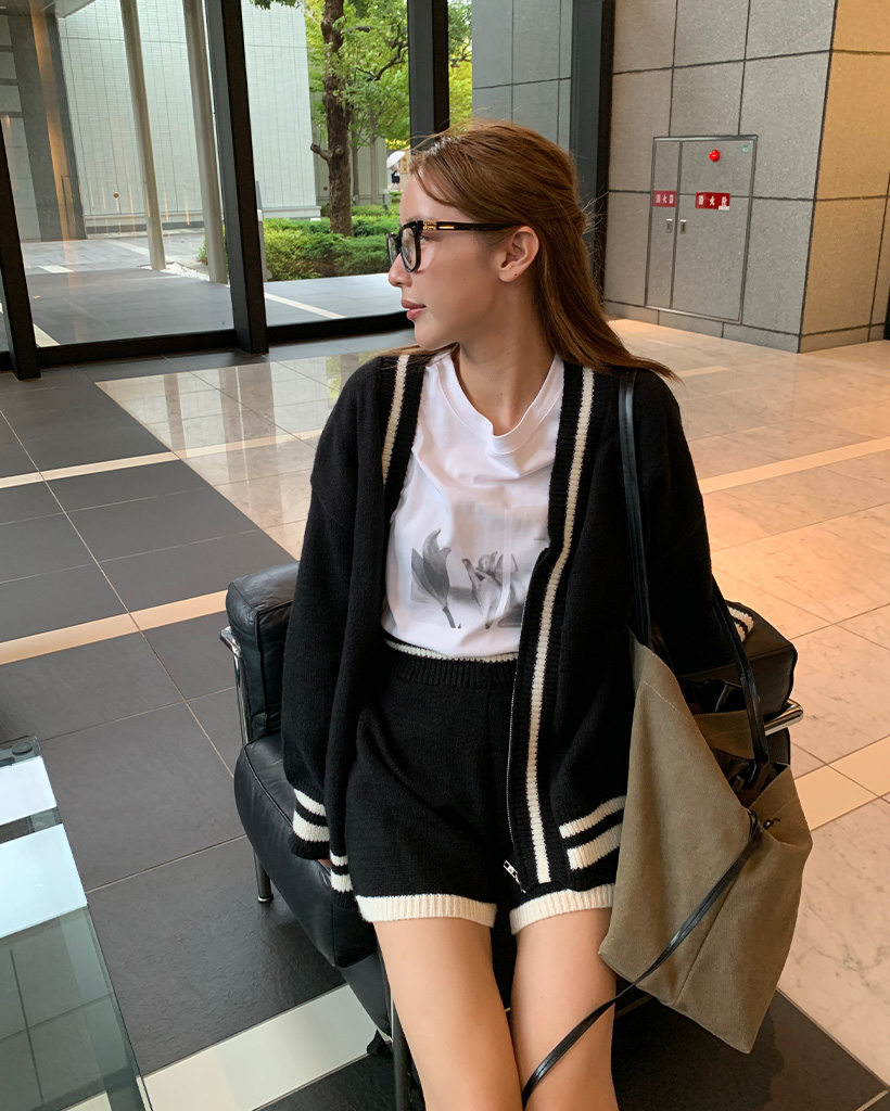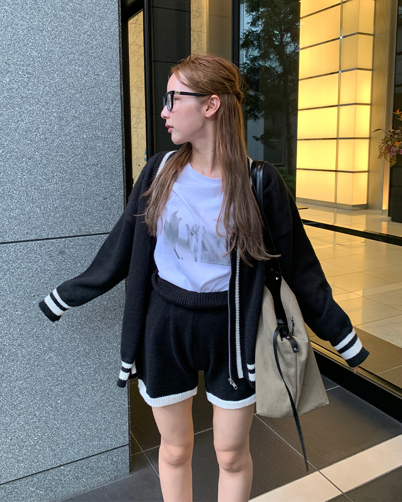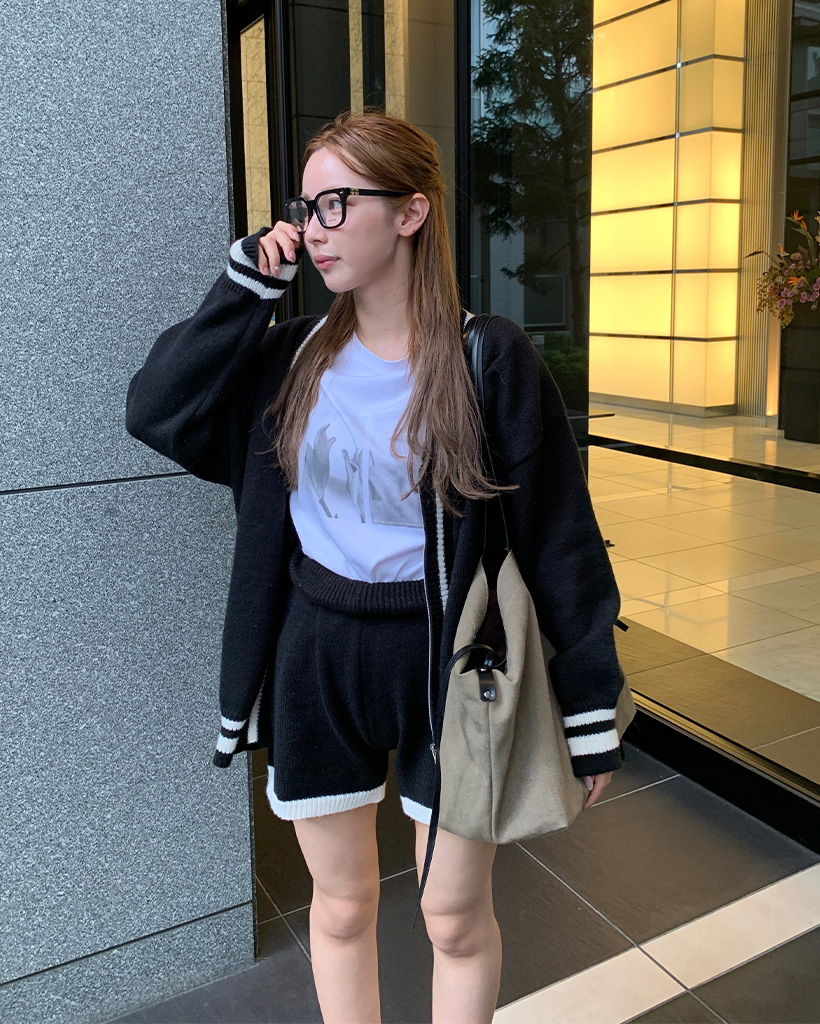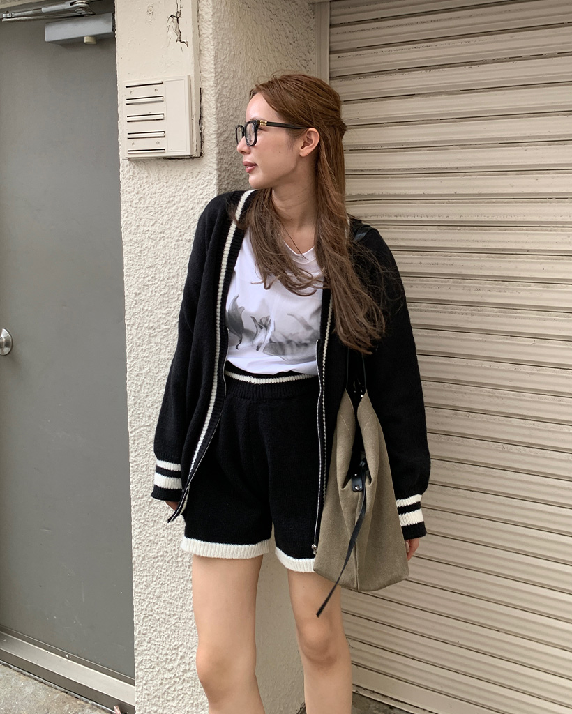 バイカラーカーディガンショートパンツセット