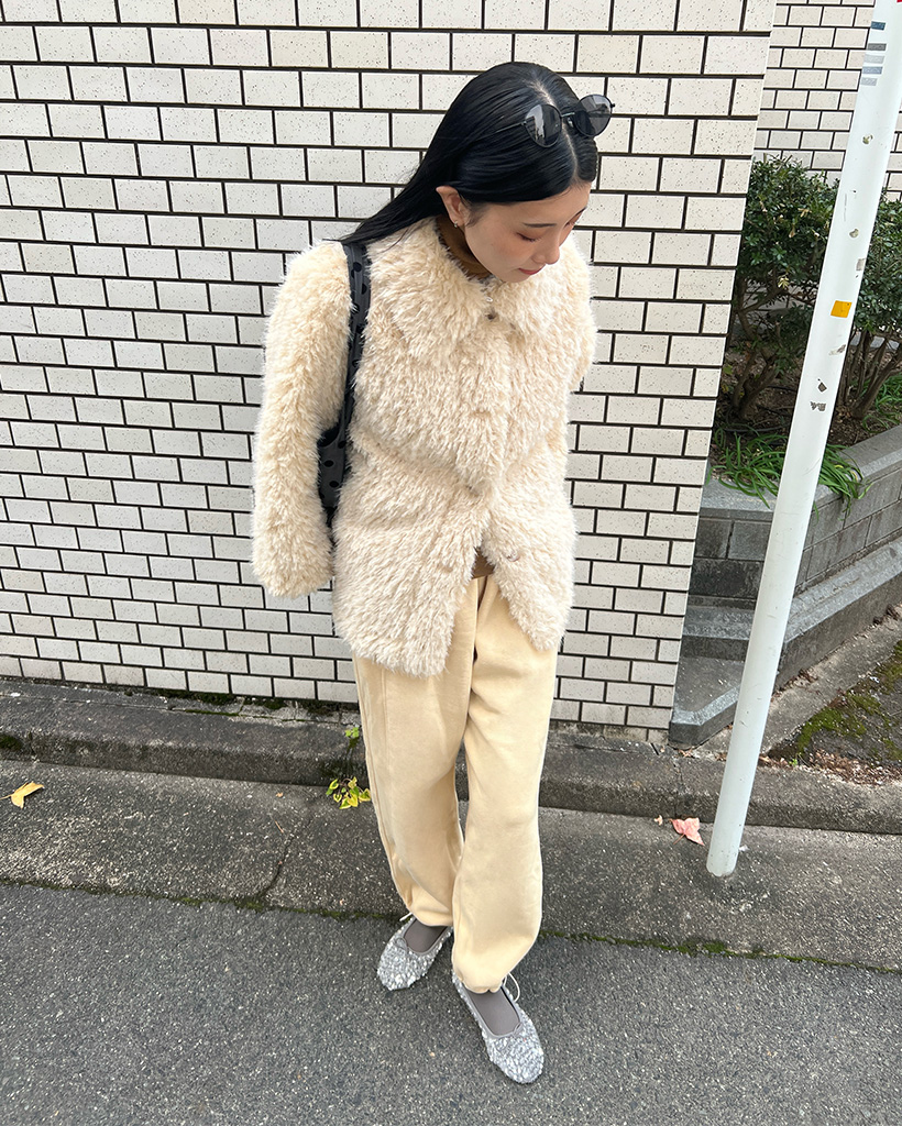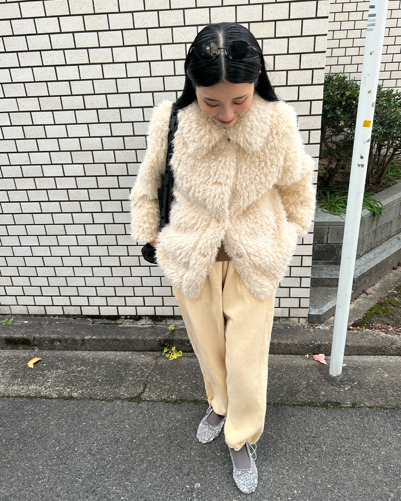 ボタンカラーファーハーフコート
