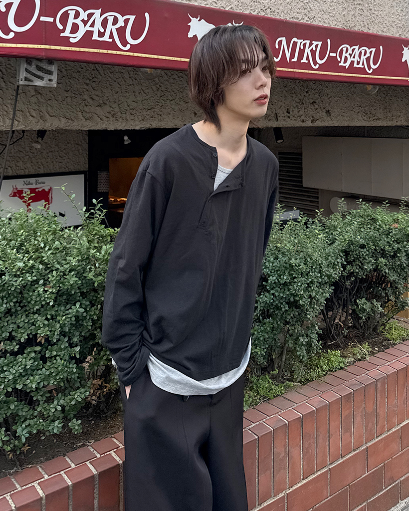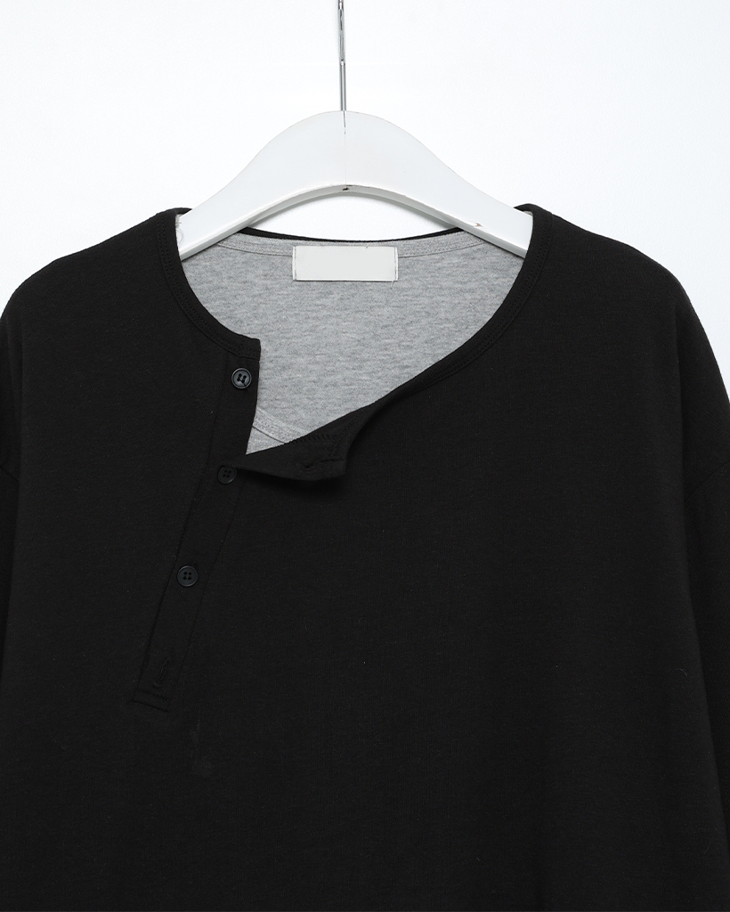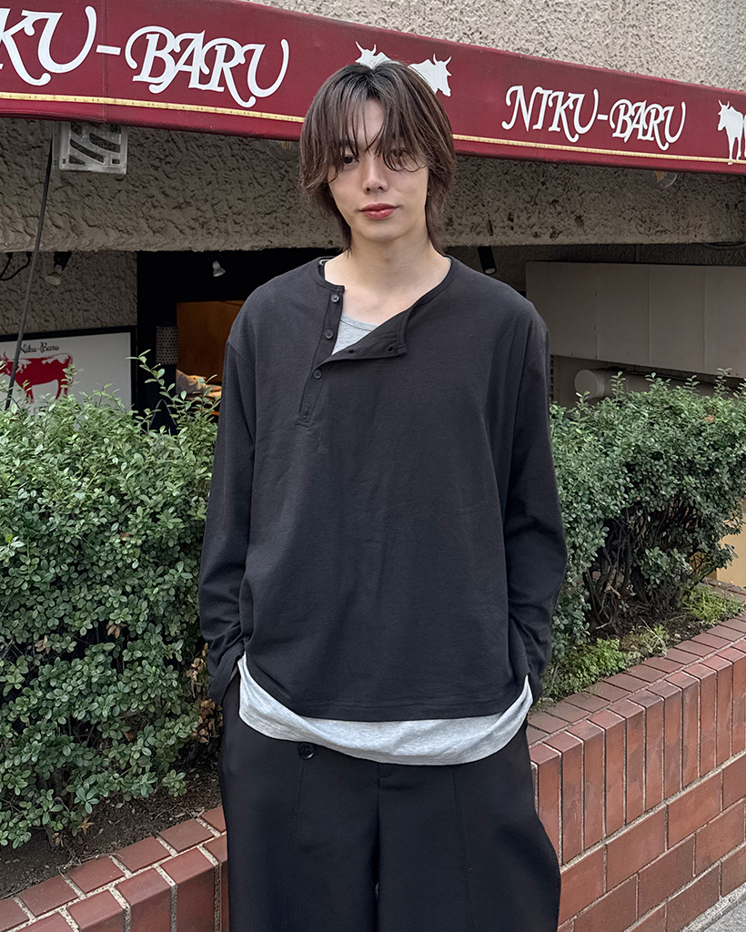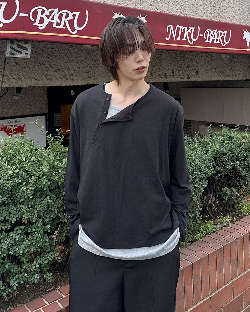 斜線ヘンリーネックポイントボタン長袖Tシャツ