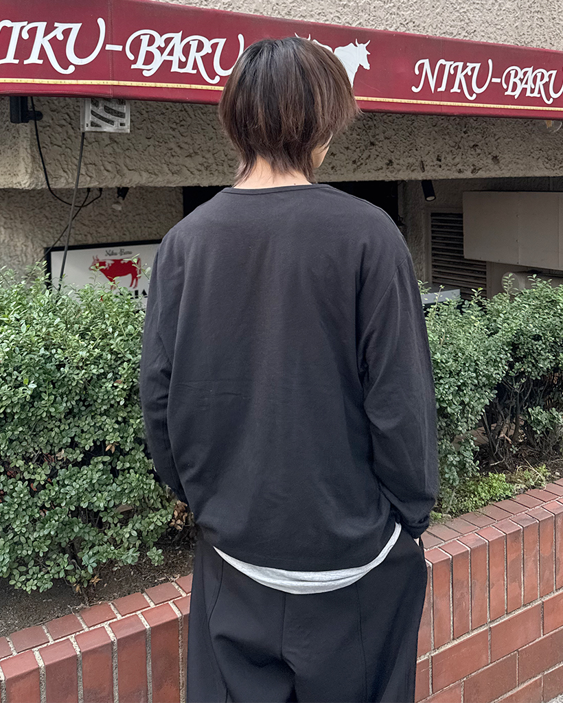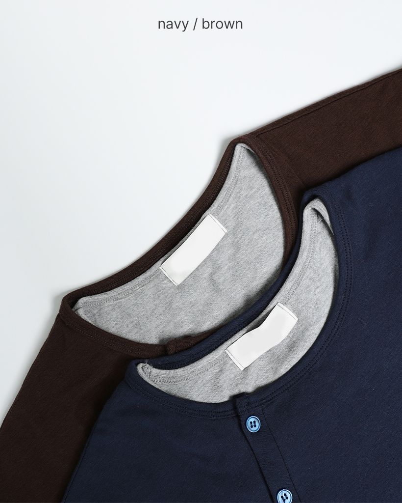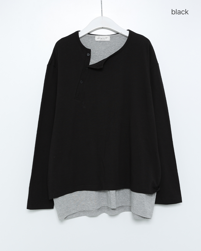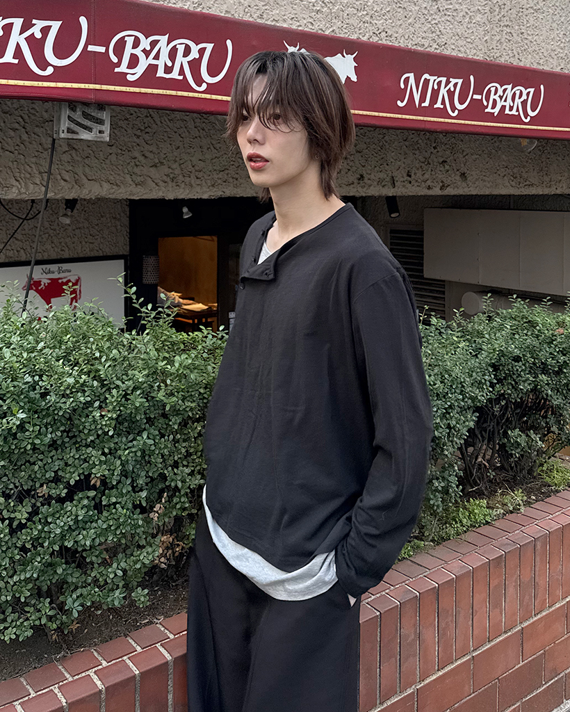 斜線ヘンリーネックポイントボタン長袖Tシャツ