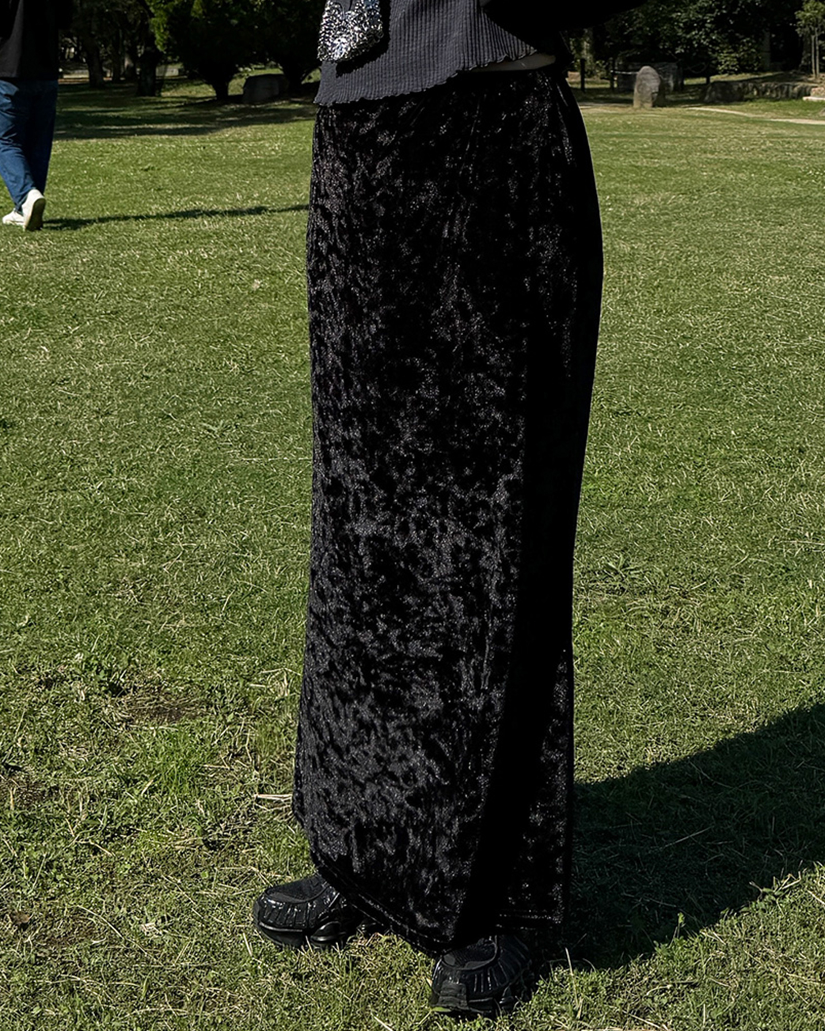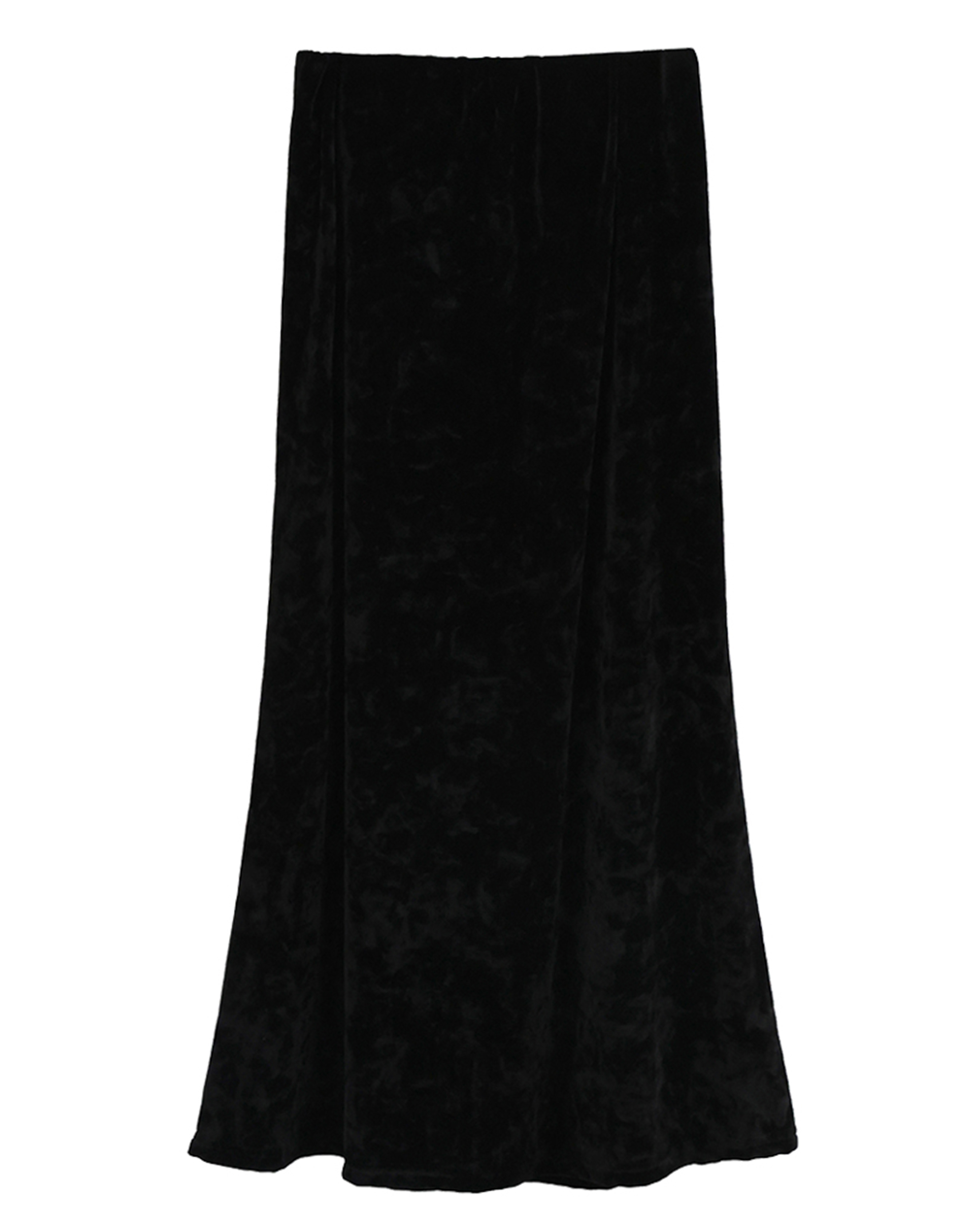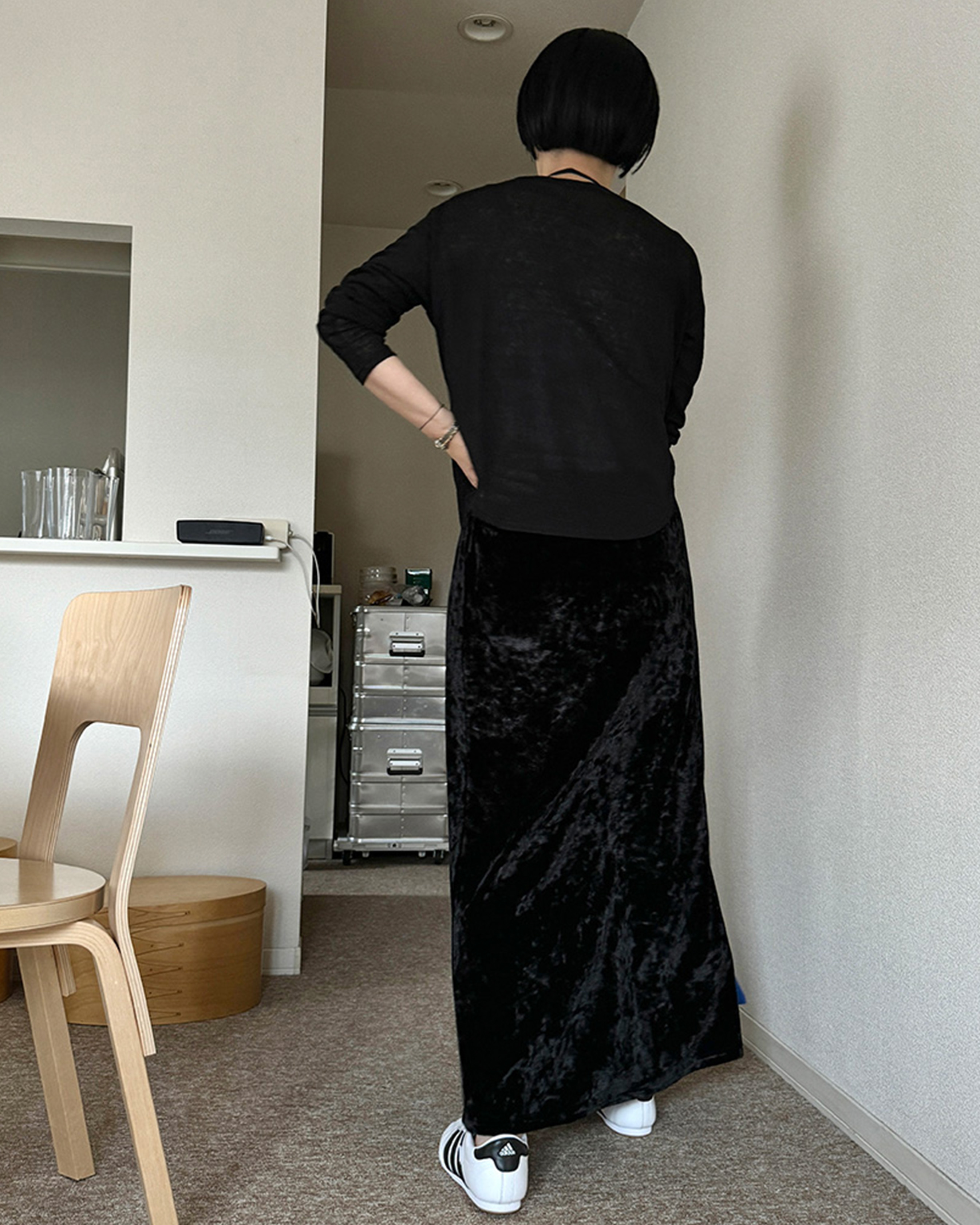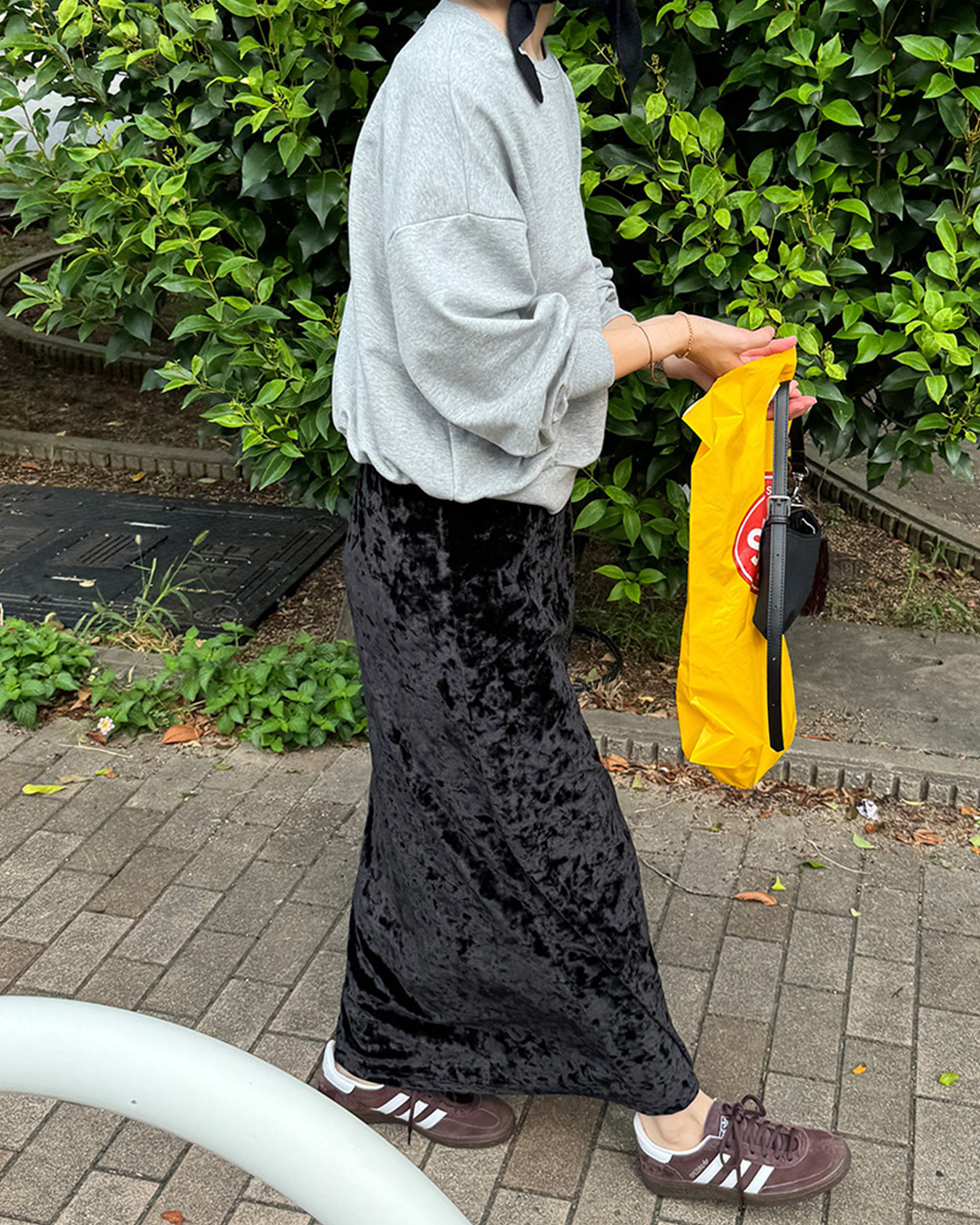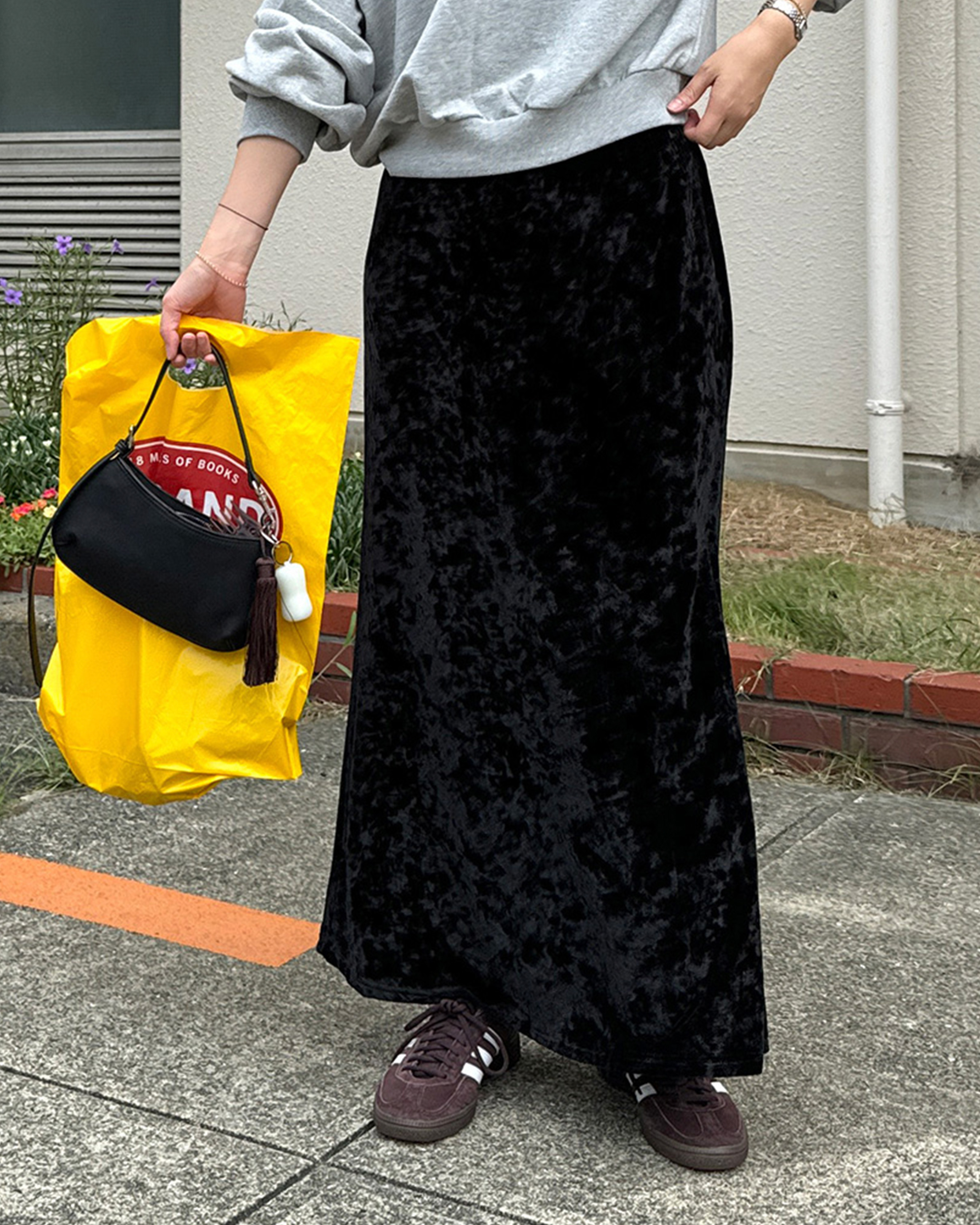 [6回再販](ORIGINAL) ベルベットバンディングロングスカート (black)