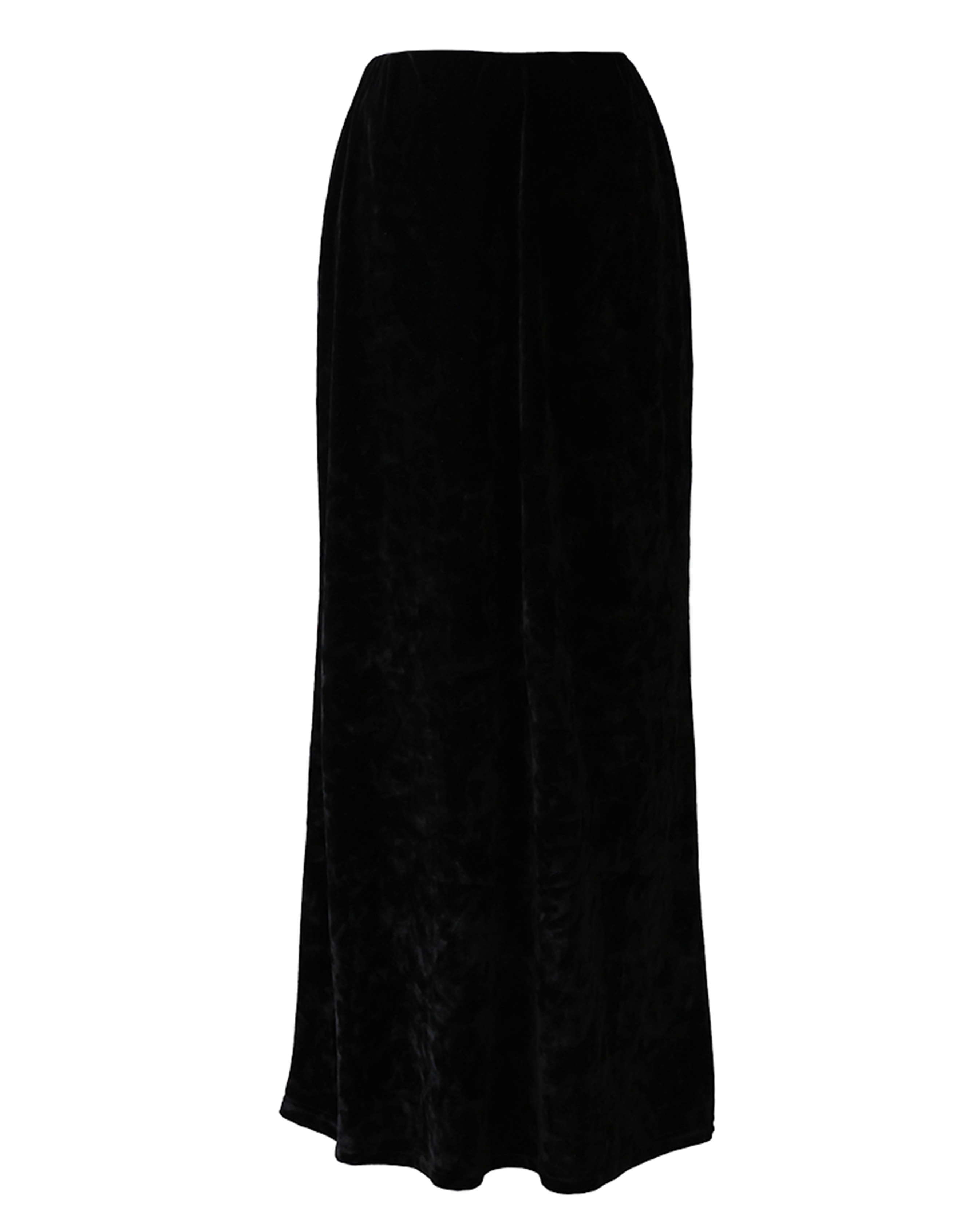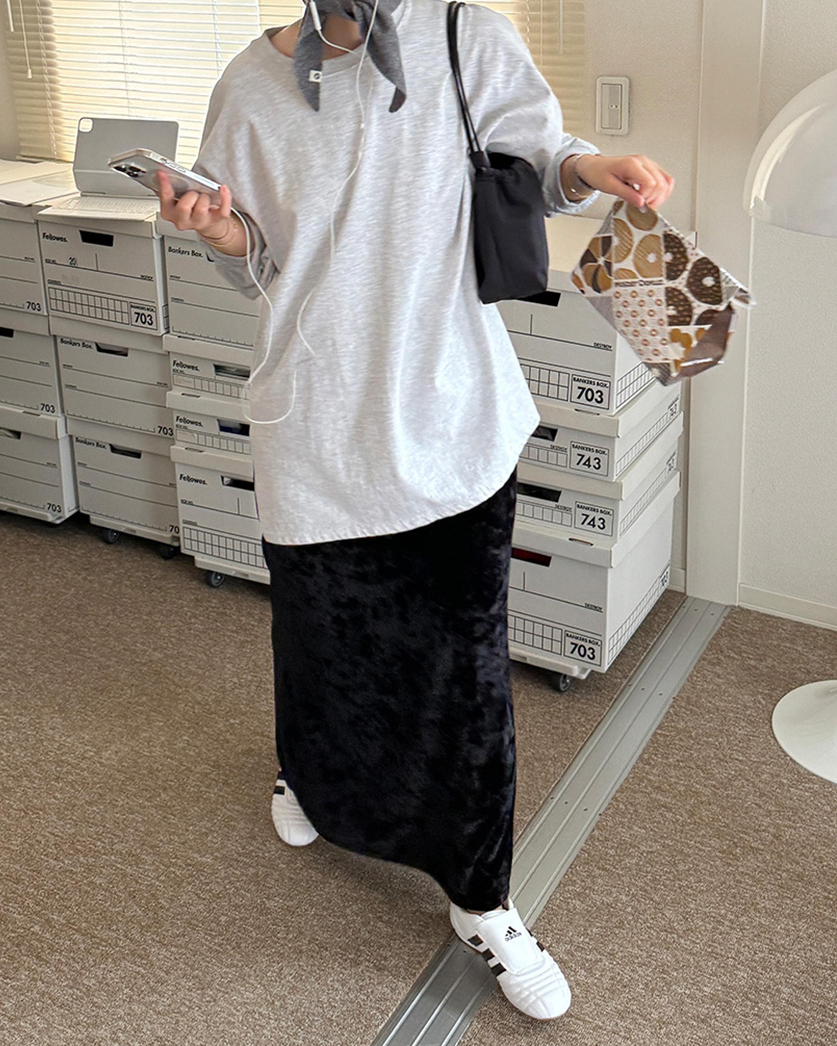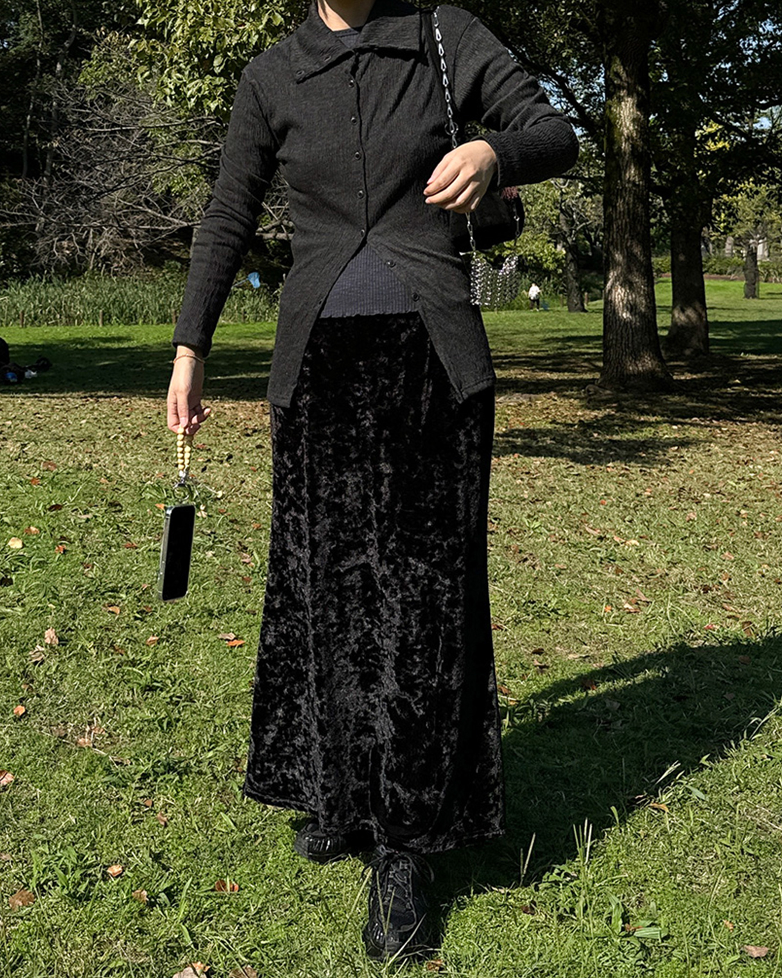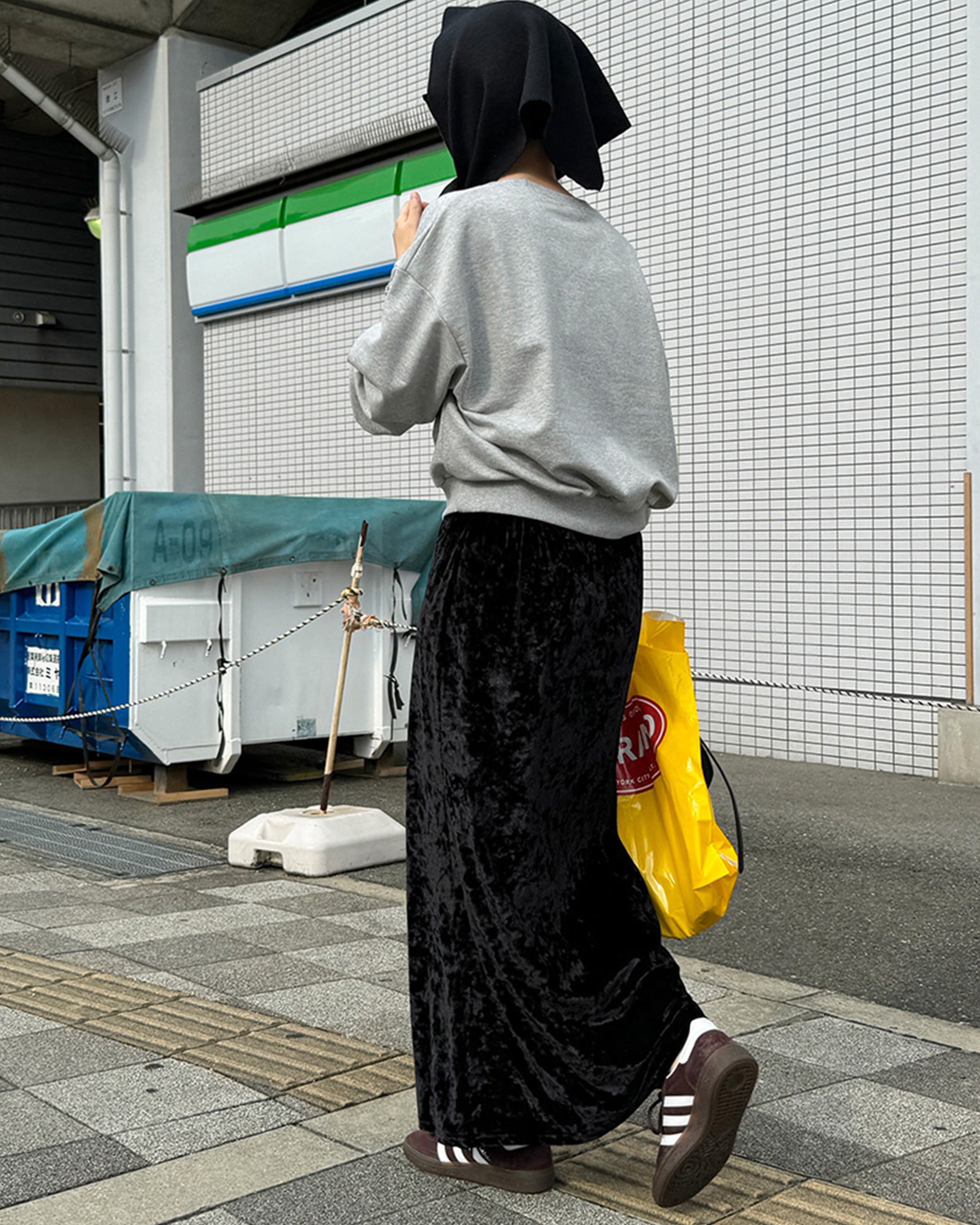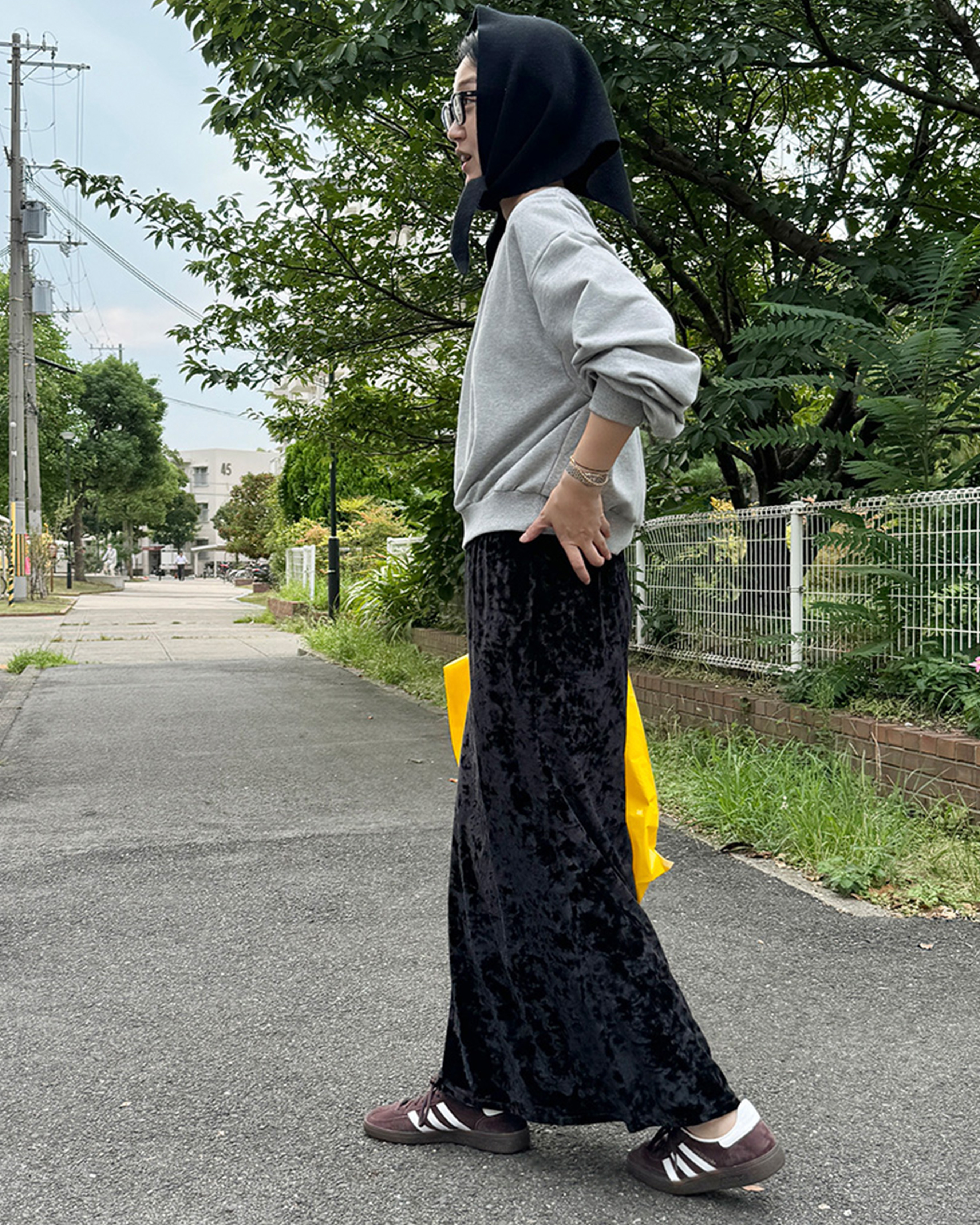 [6回再販](ORIGINAL) ベルベットバンディングロングスカート (black)
