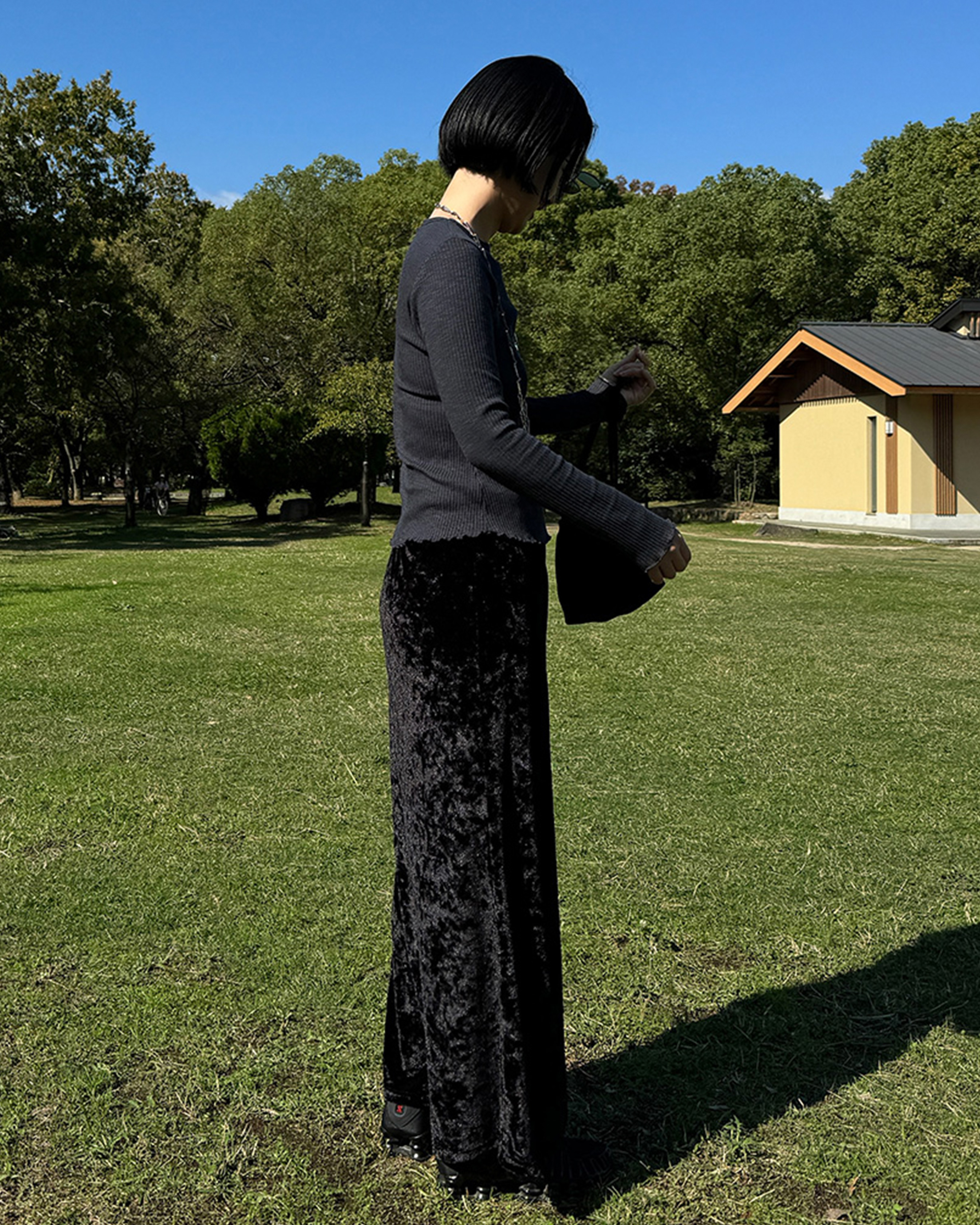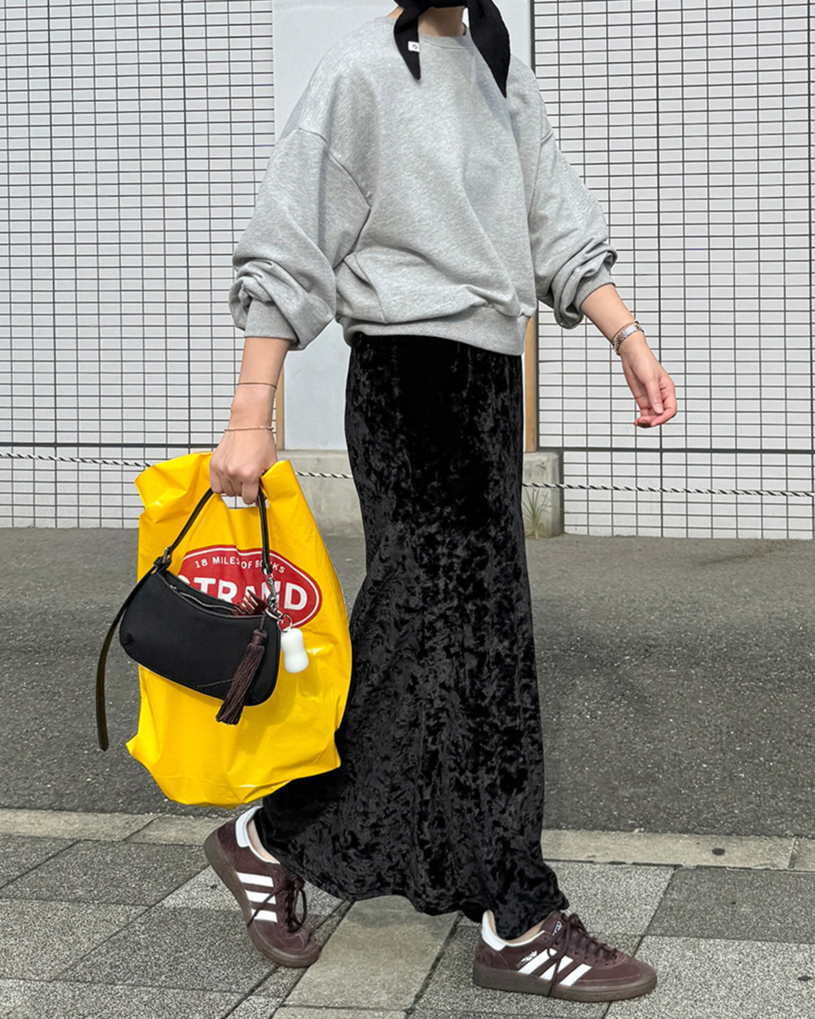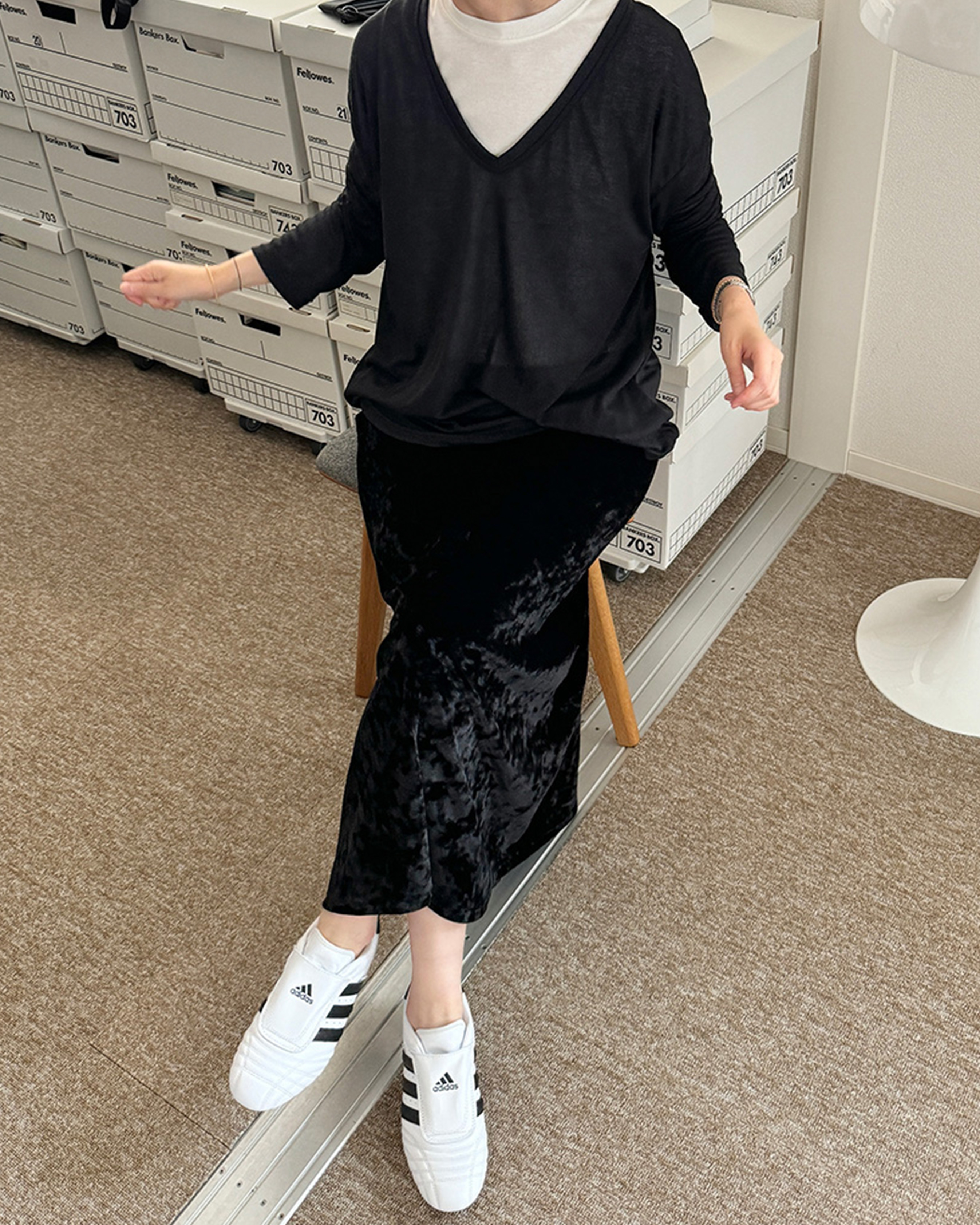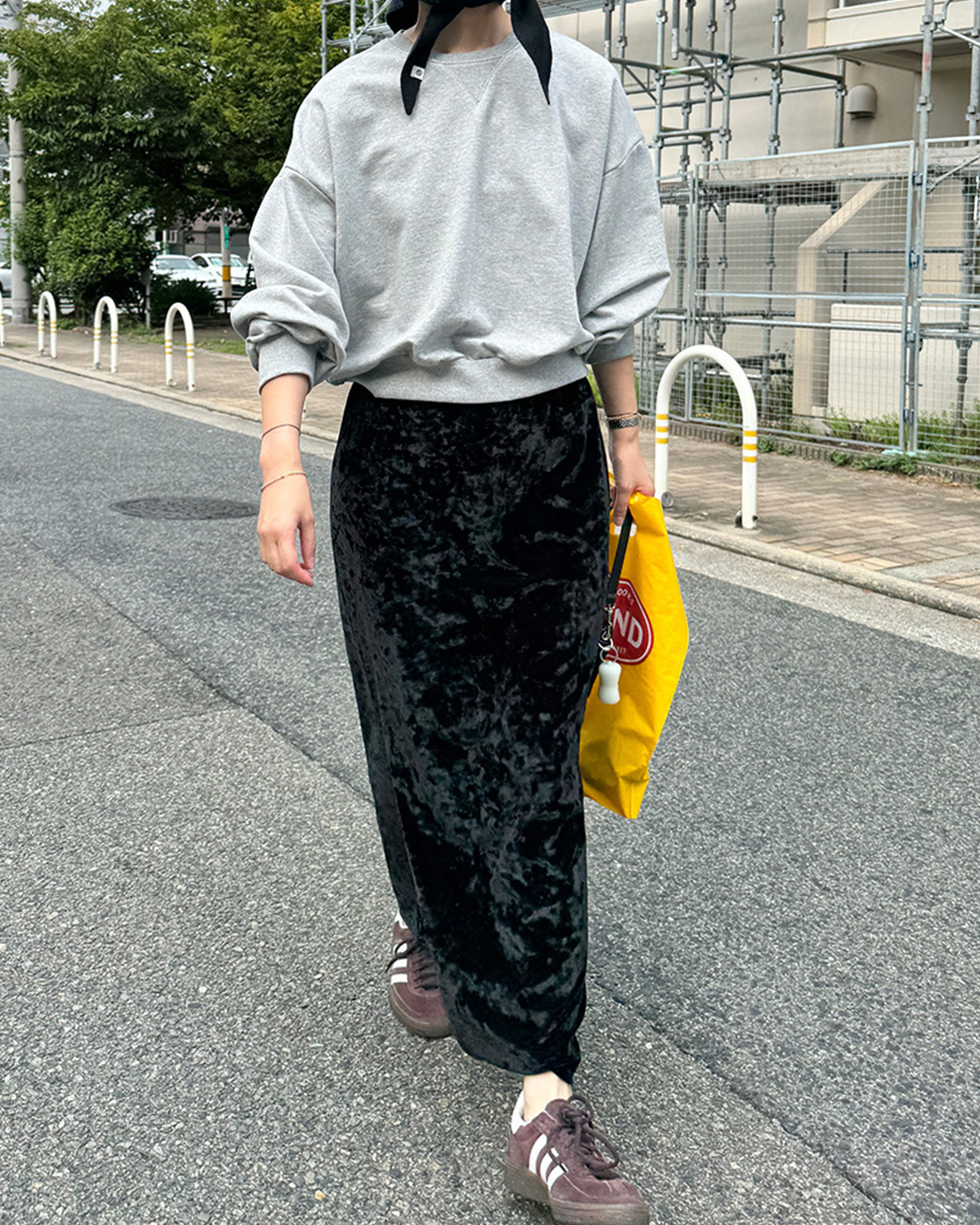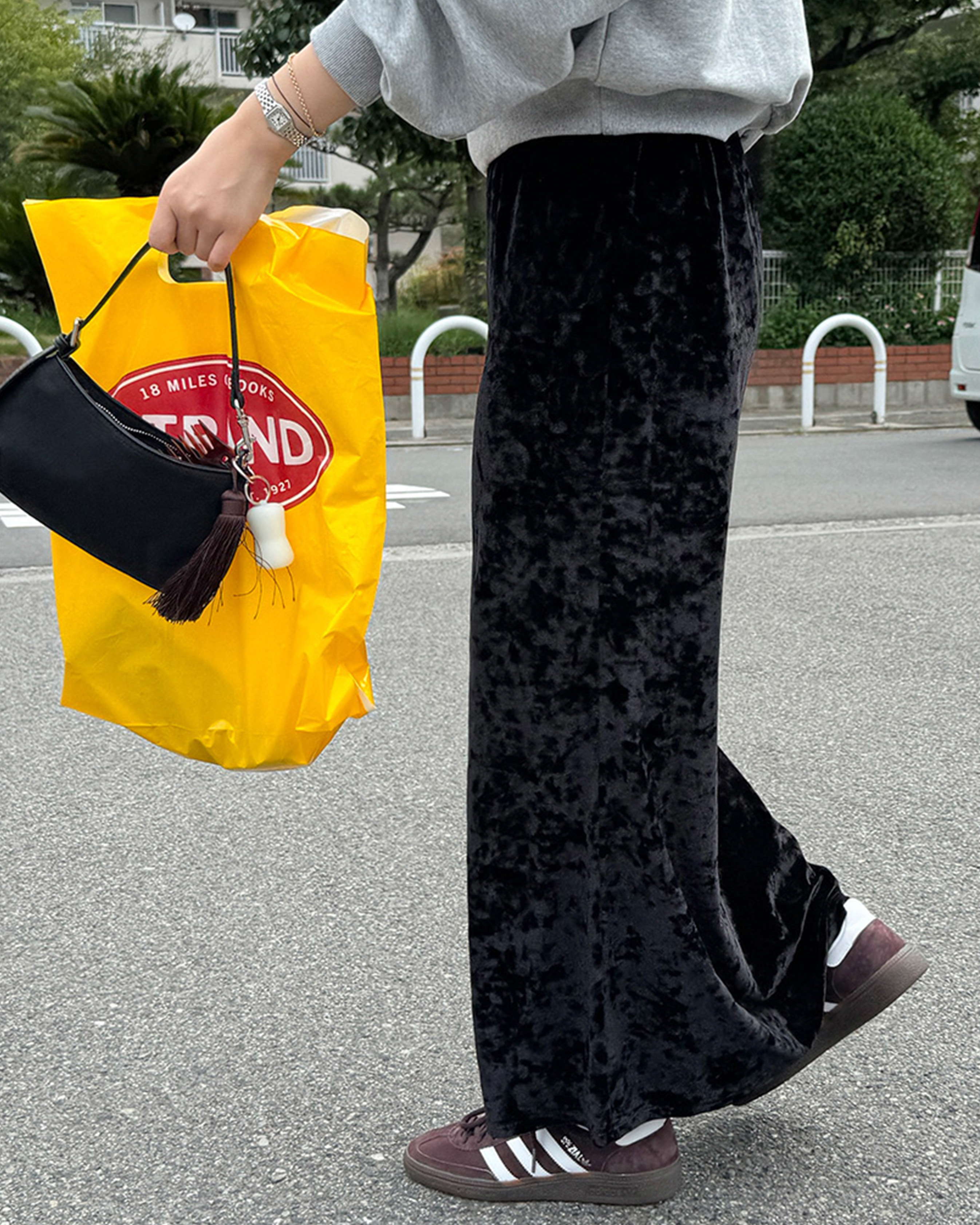 [6回再販](ORIGINAL) ベルベットバンディングロングスカート (black)