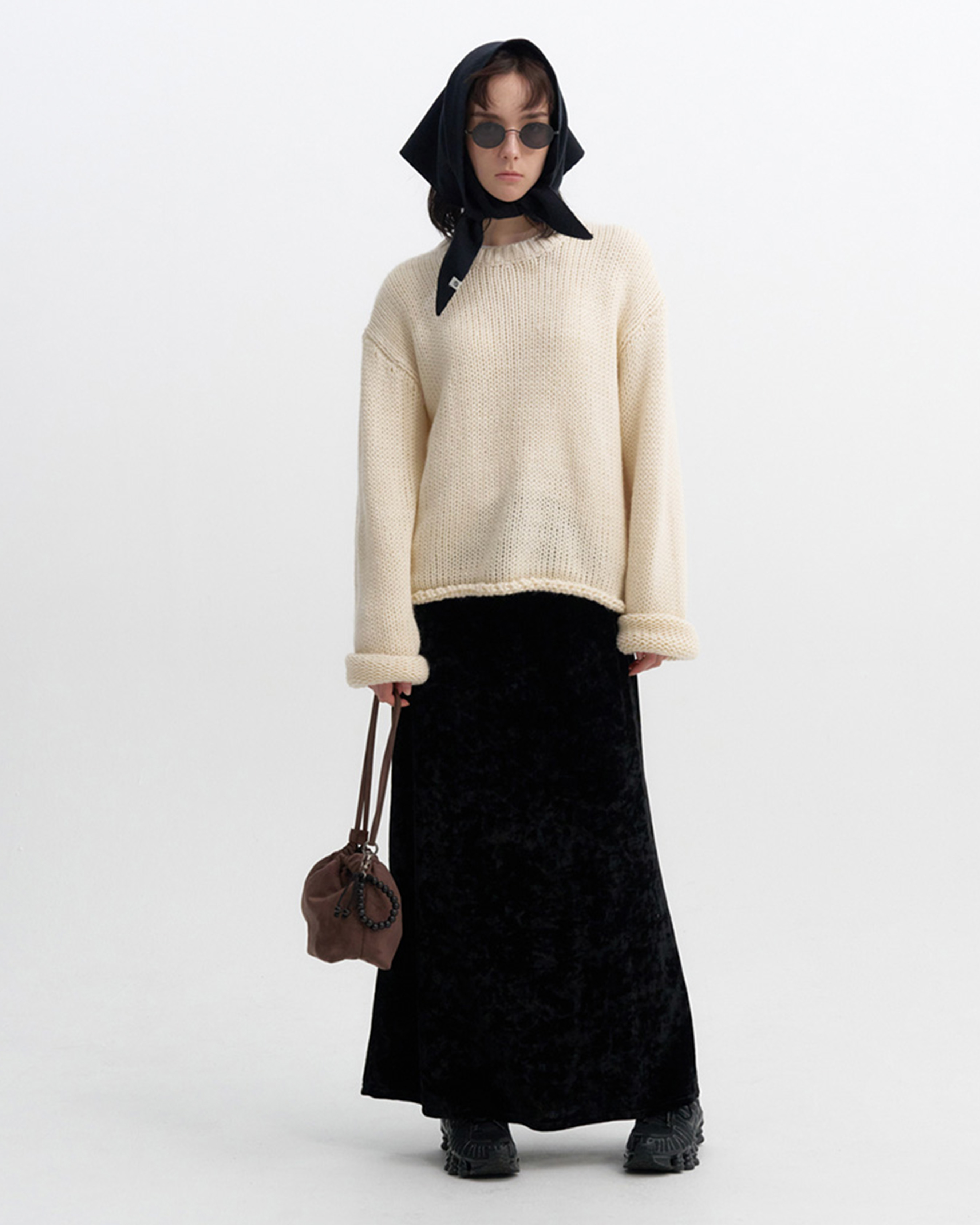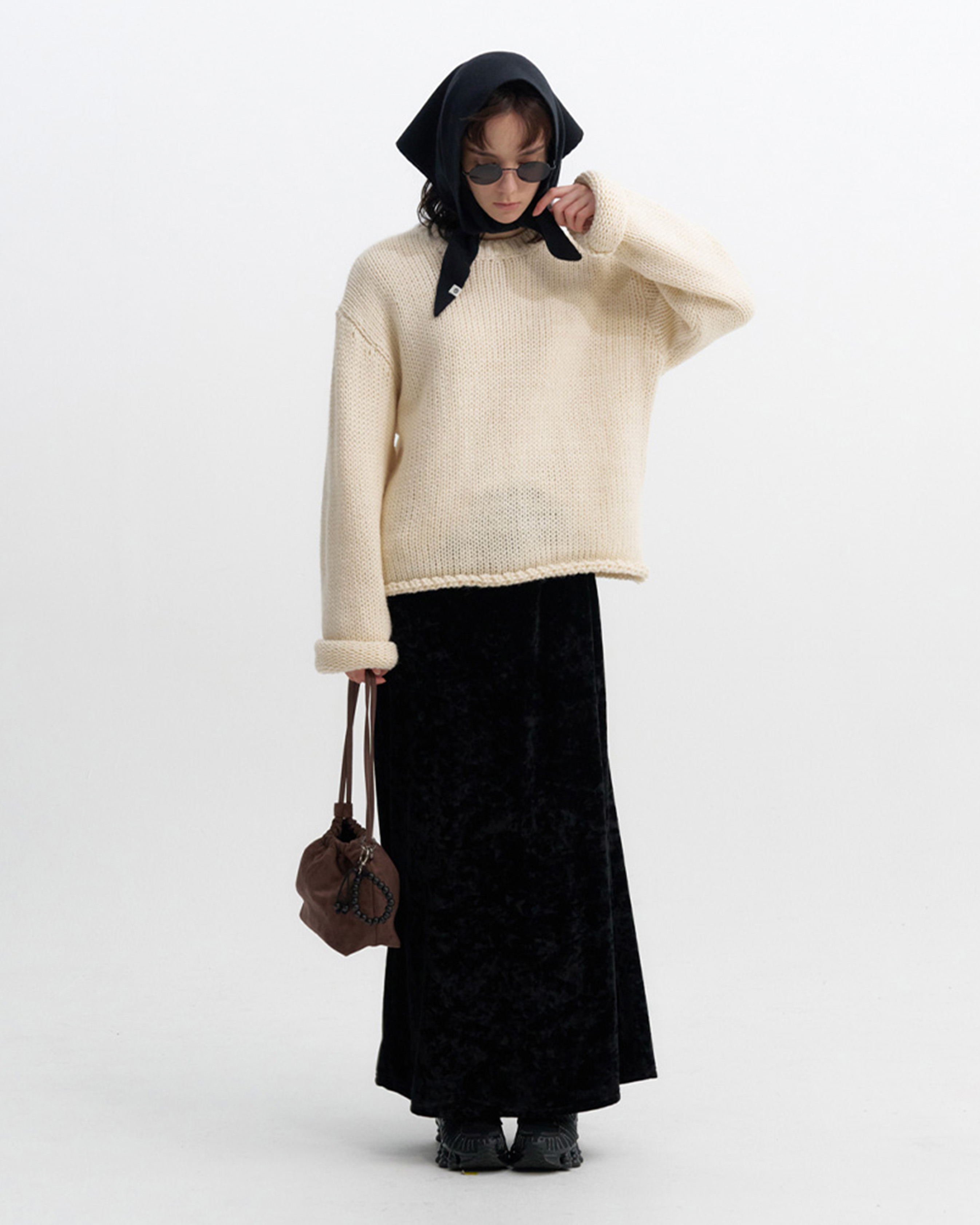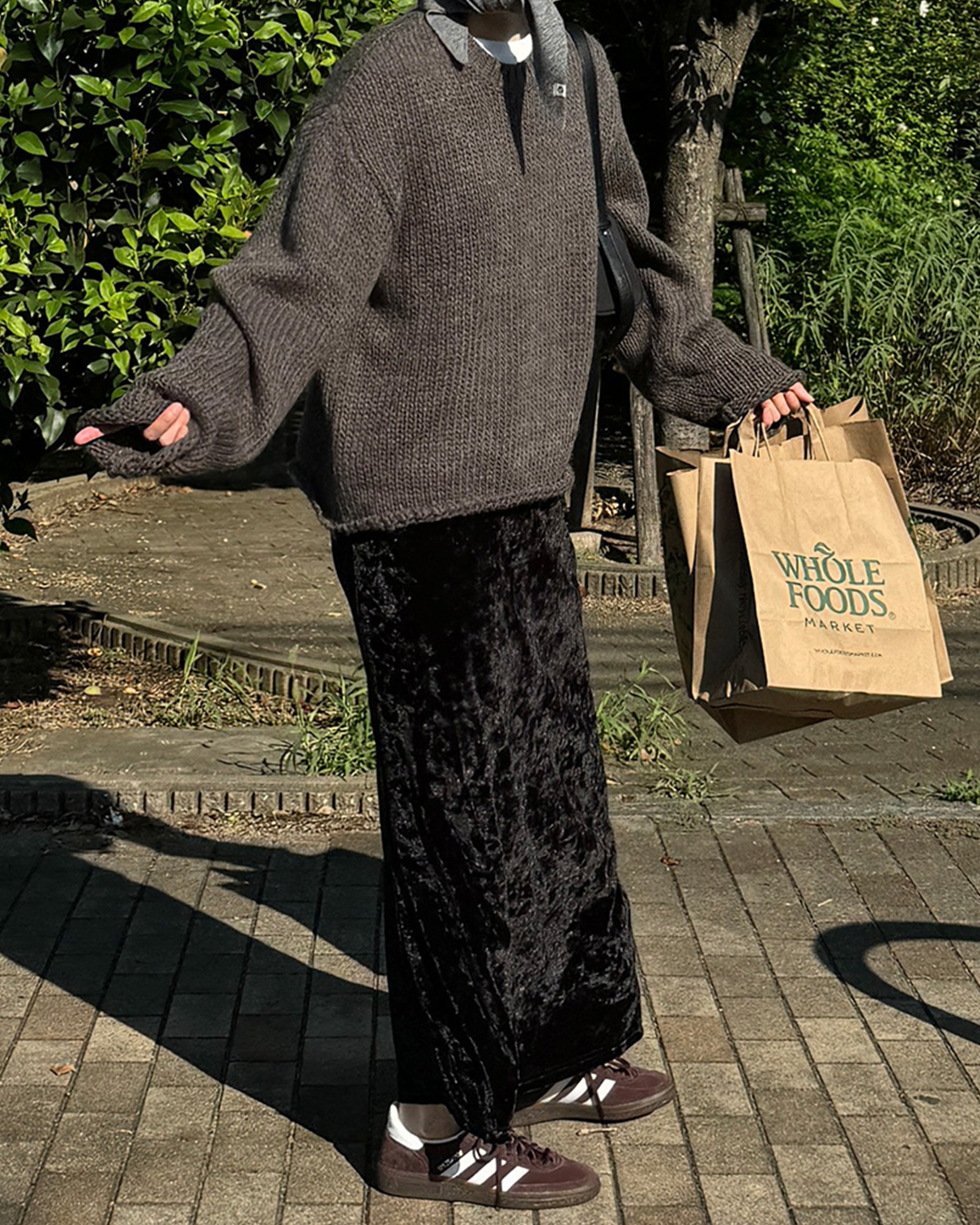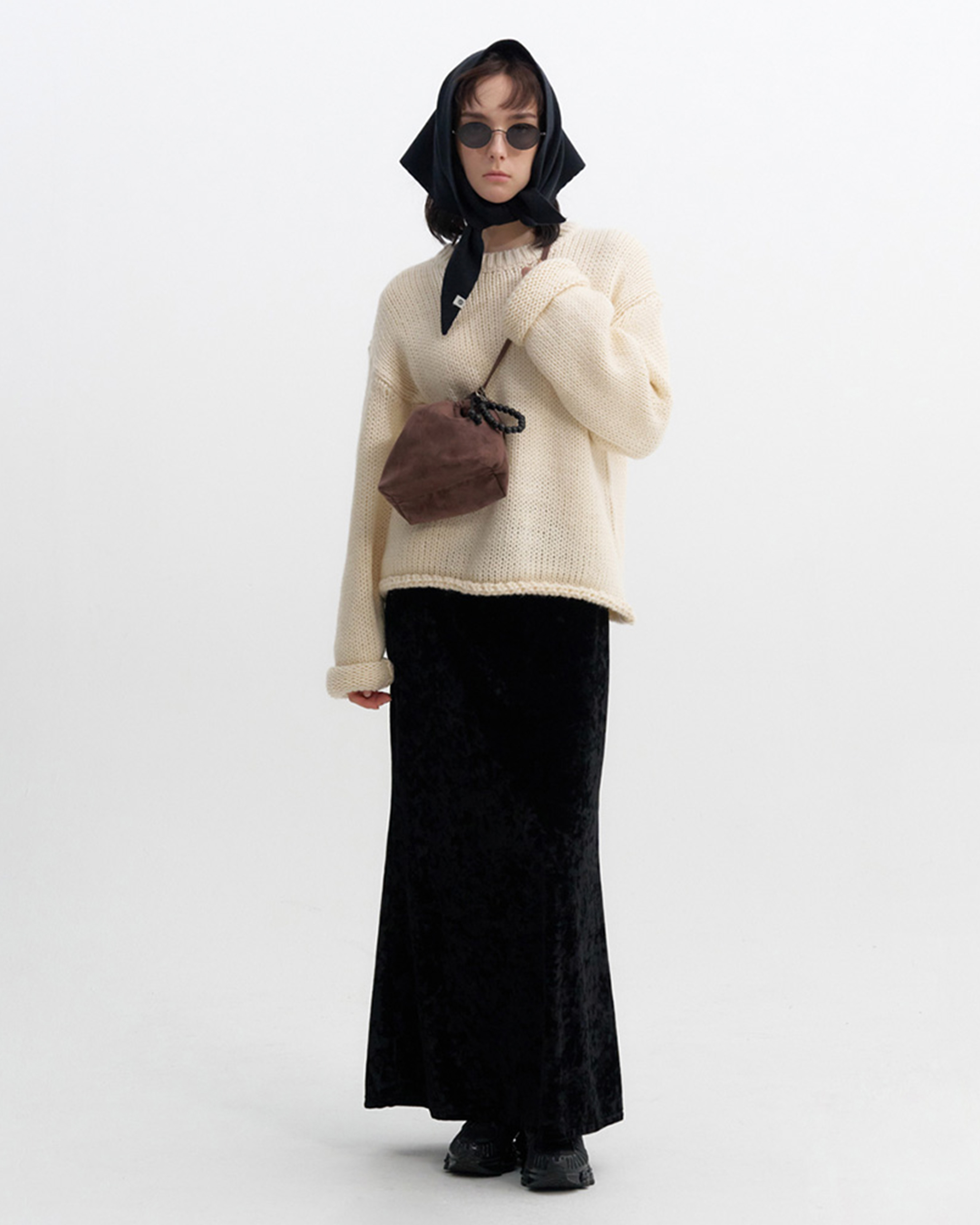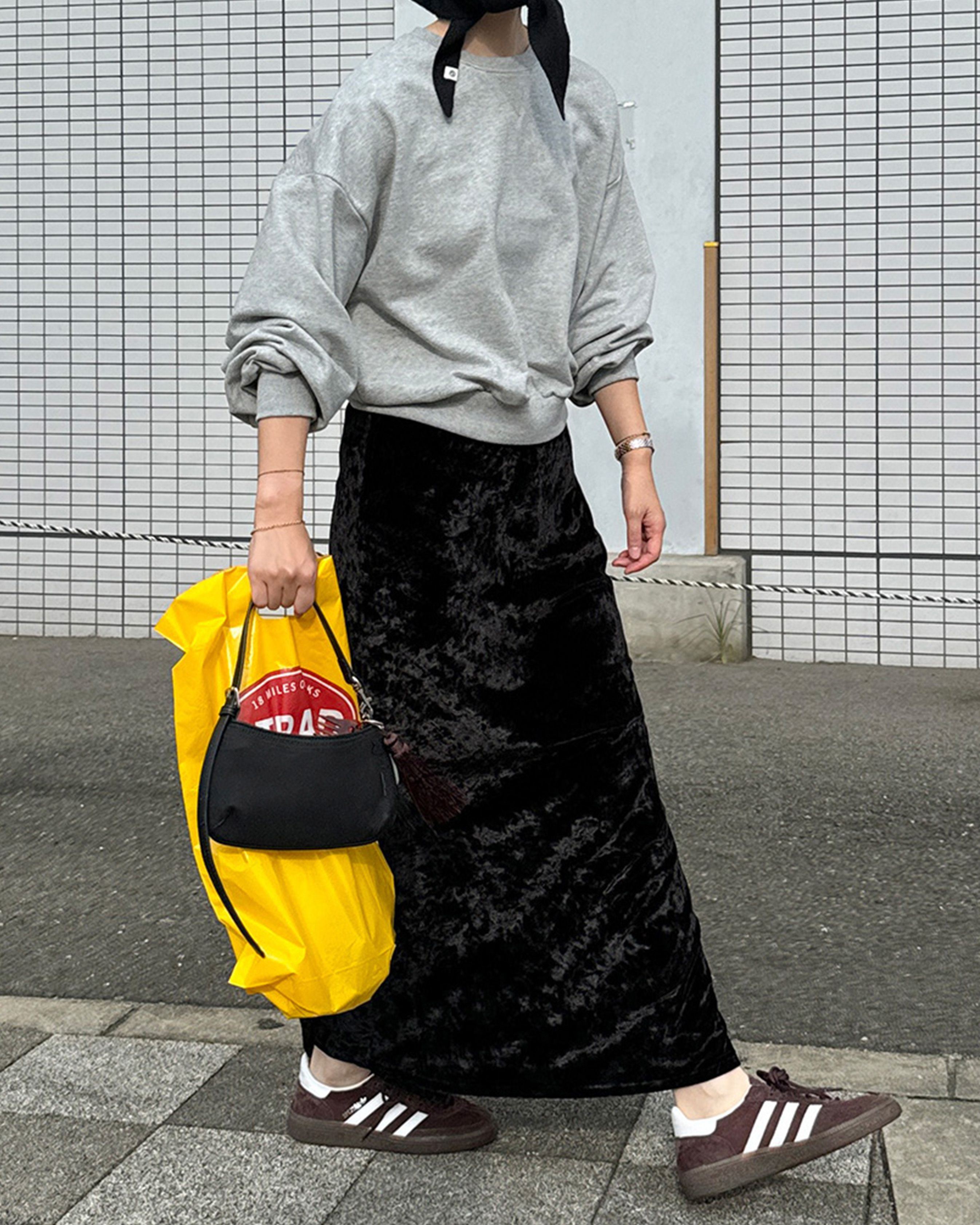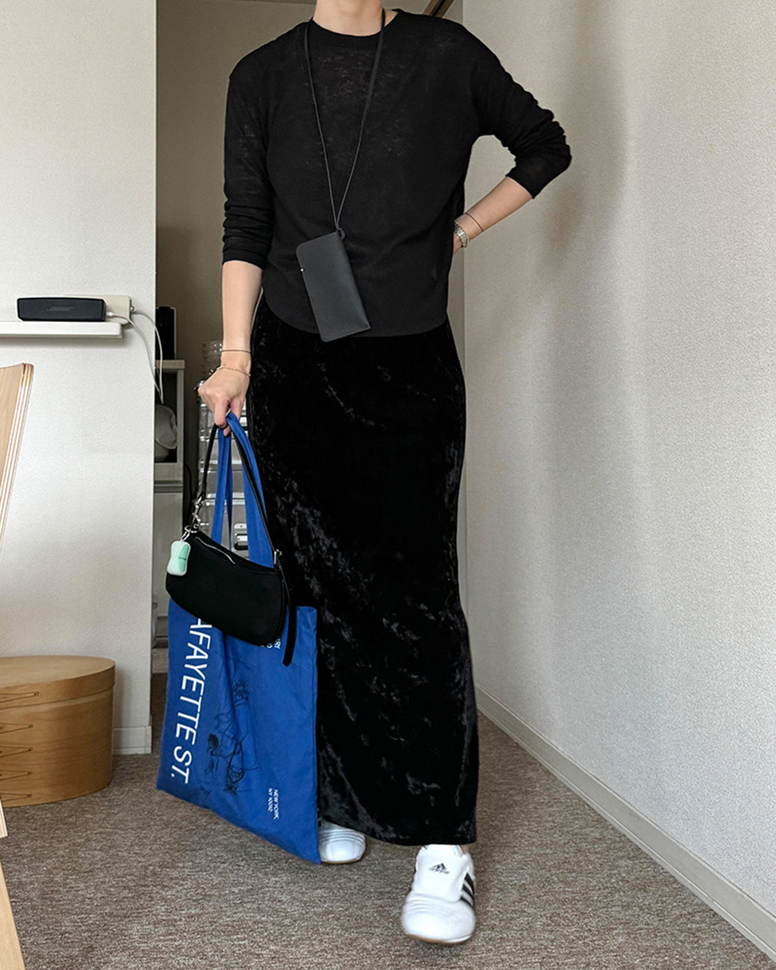 [6回再販](ORIGINAL) ベルベットバンディングロングスカート (black)
