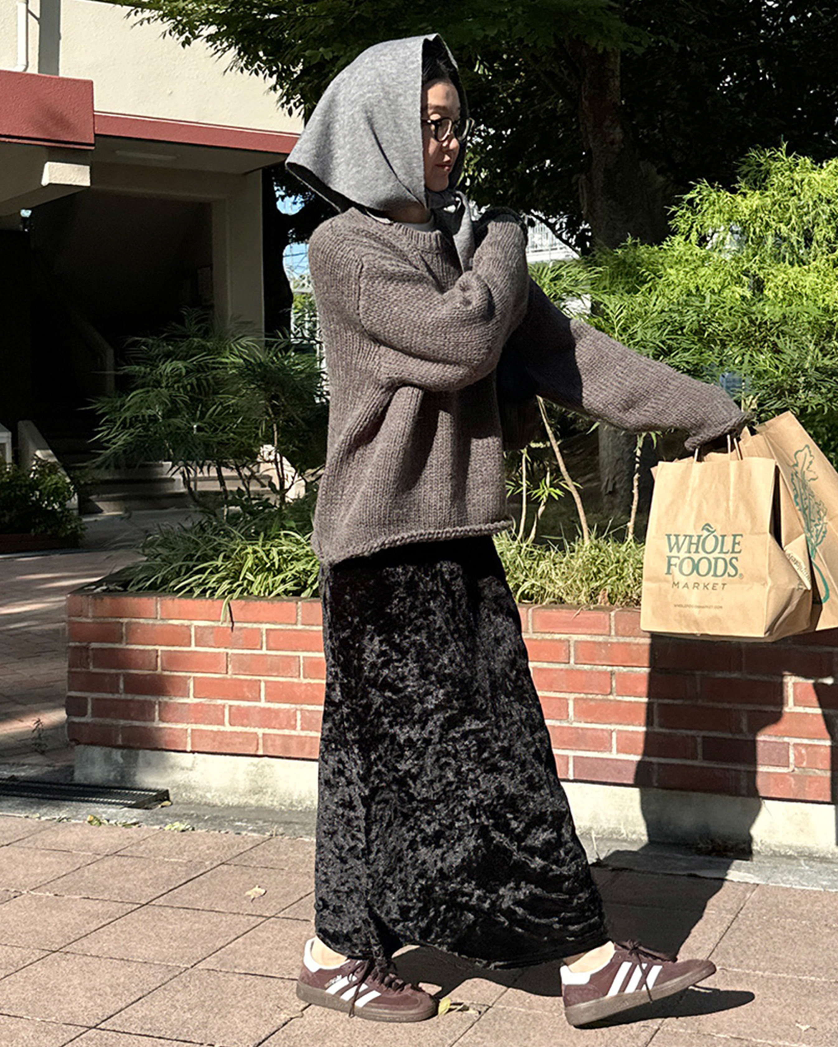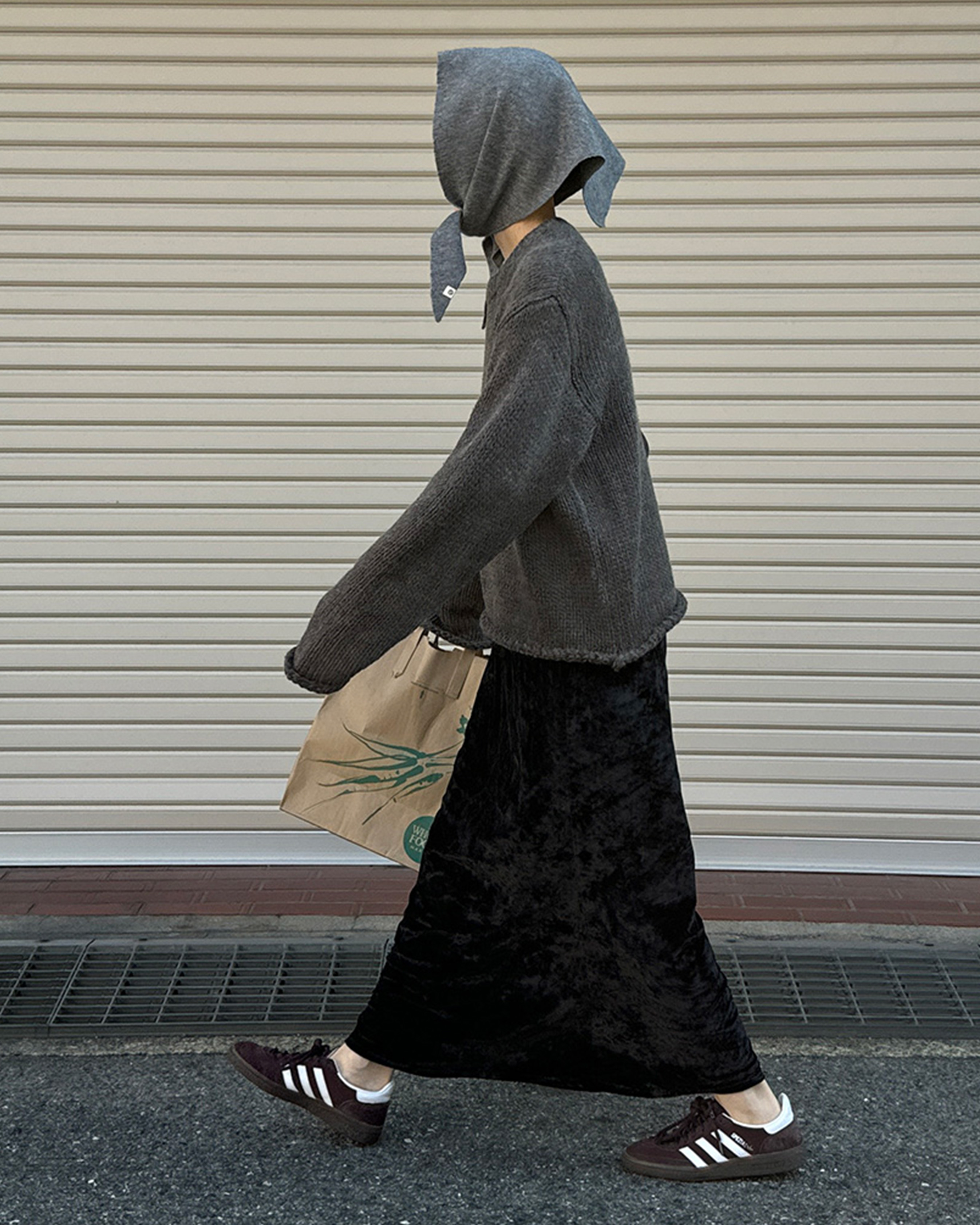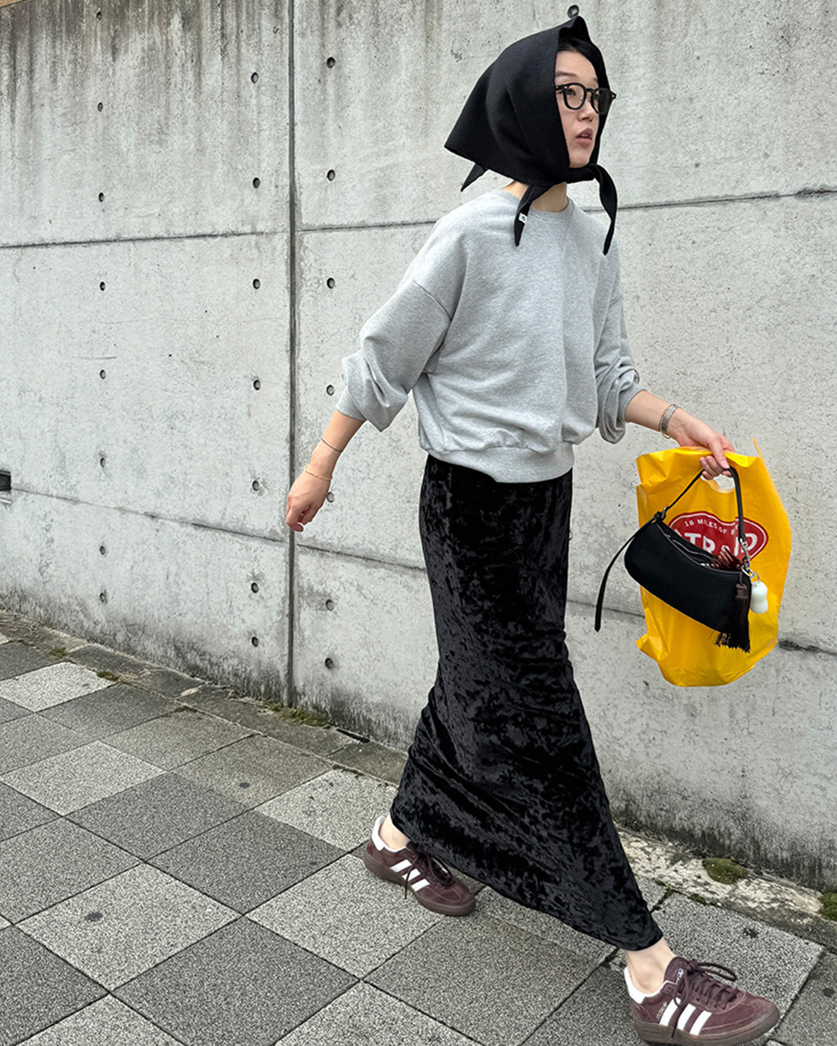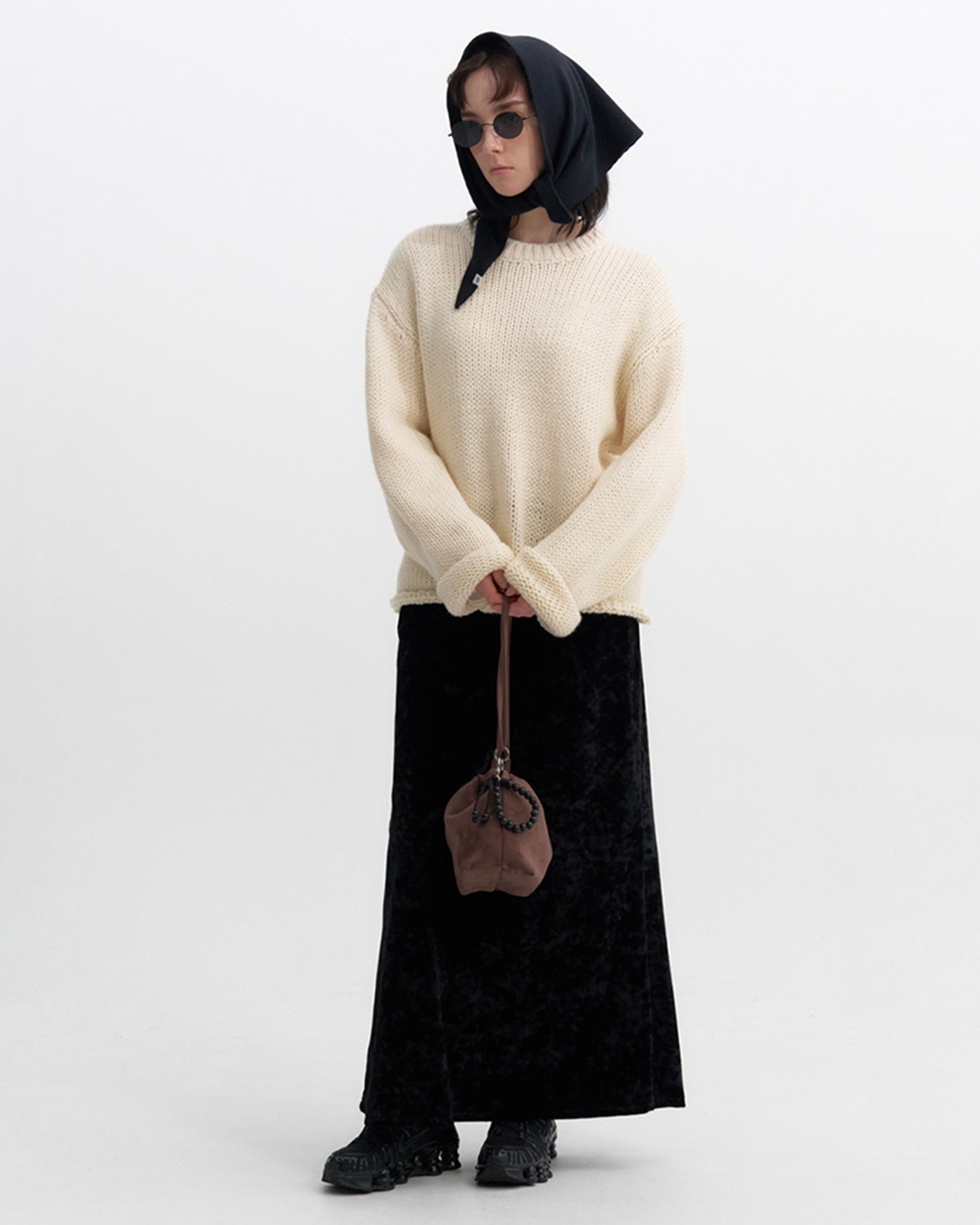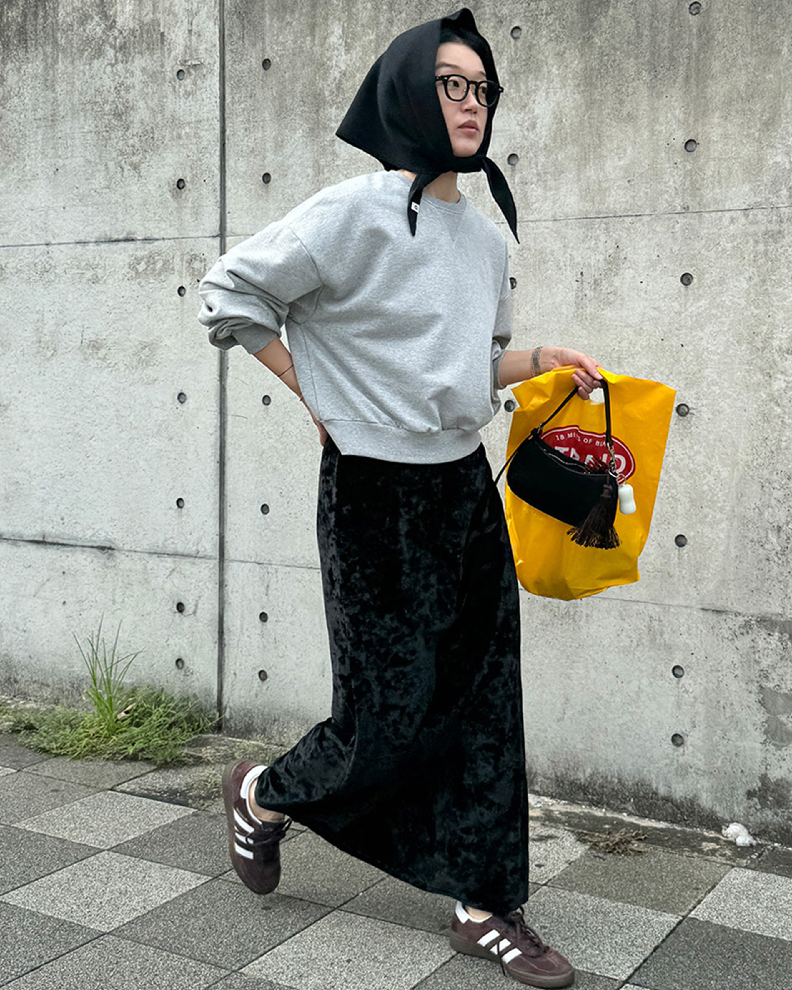 [6回再販](ORIGINAL) ベルベットバンディングロングスカート (black)