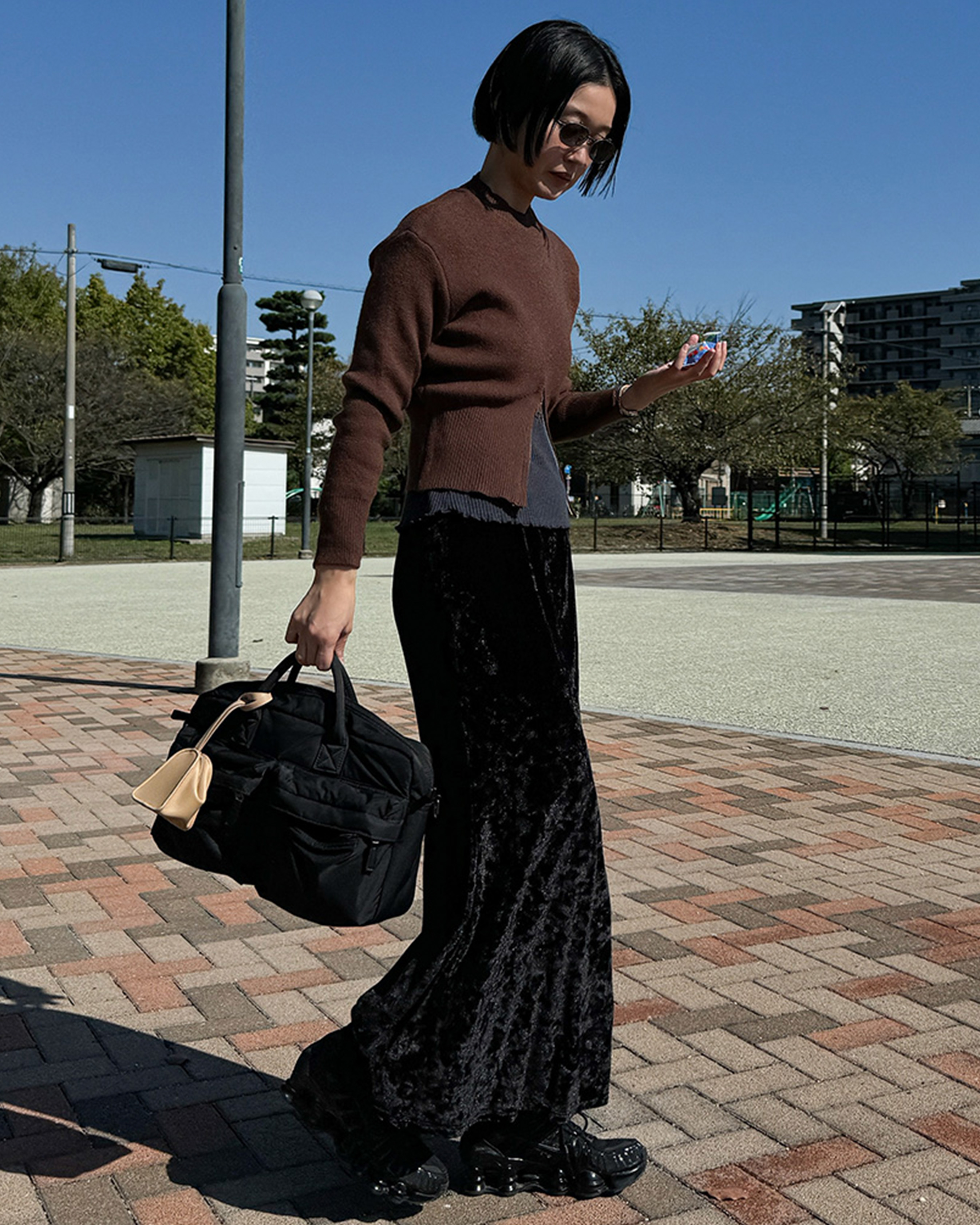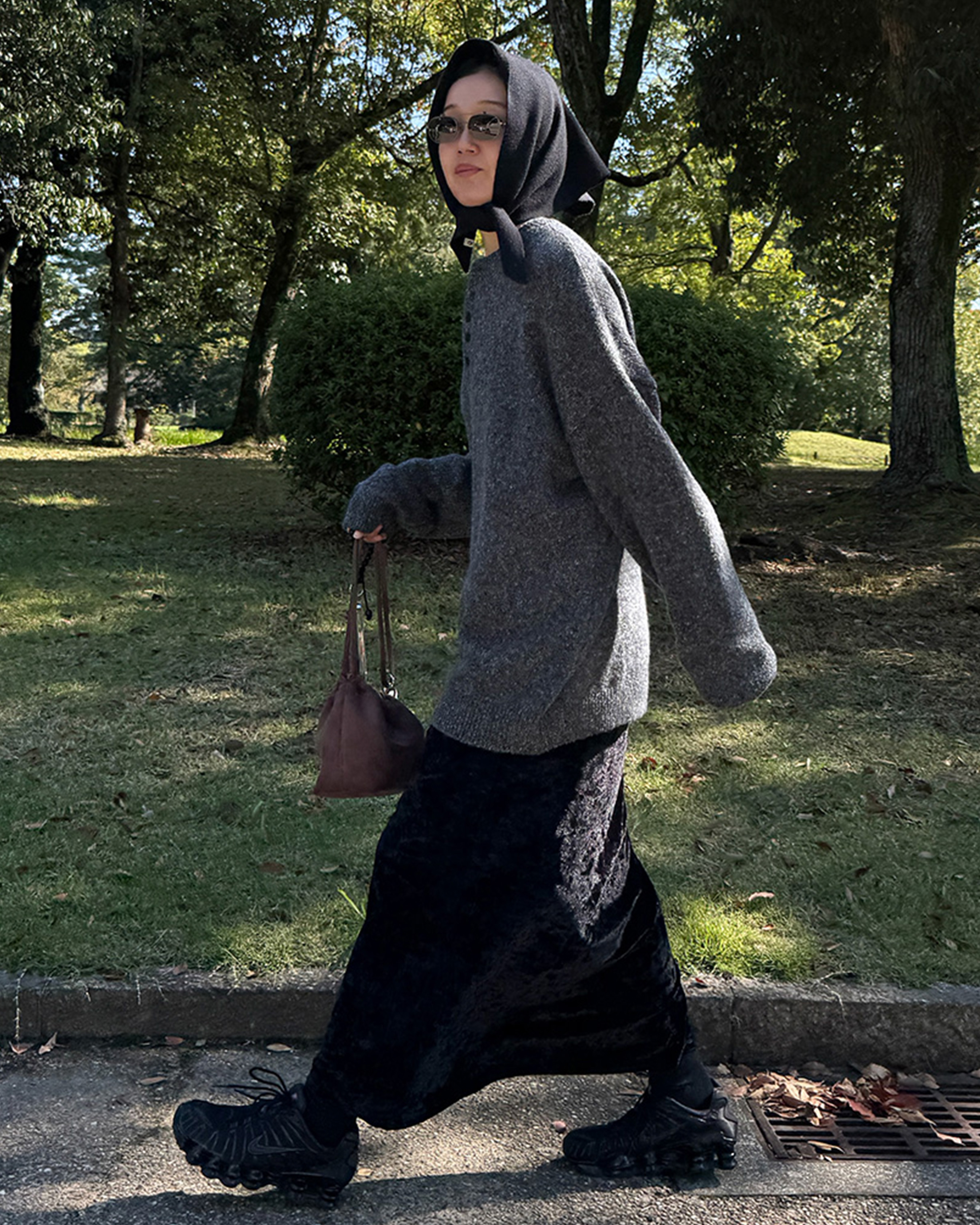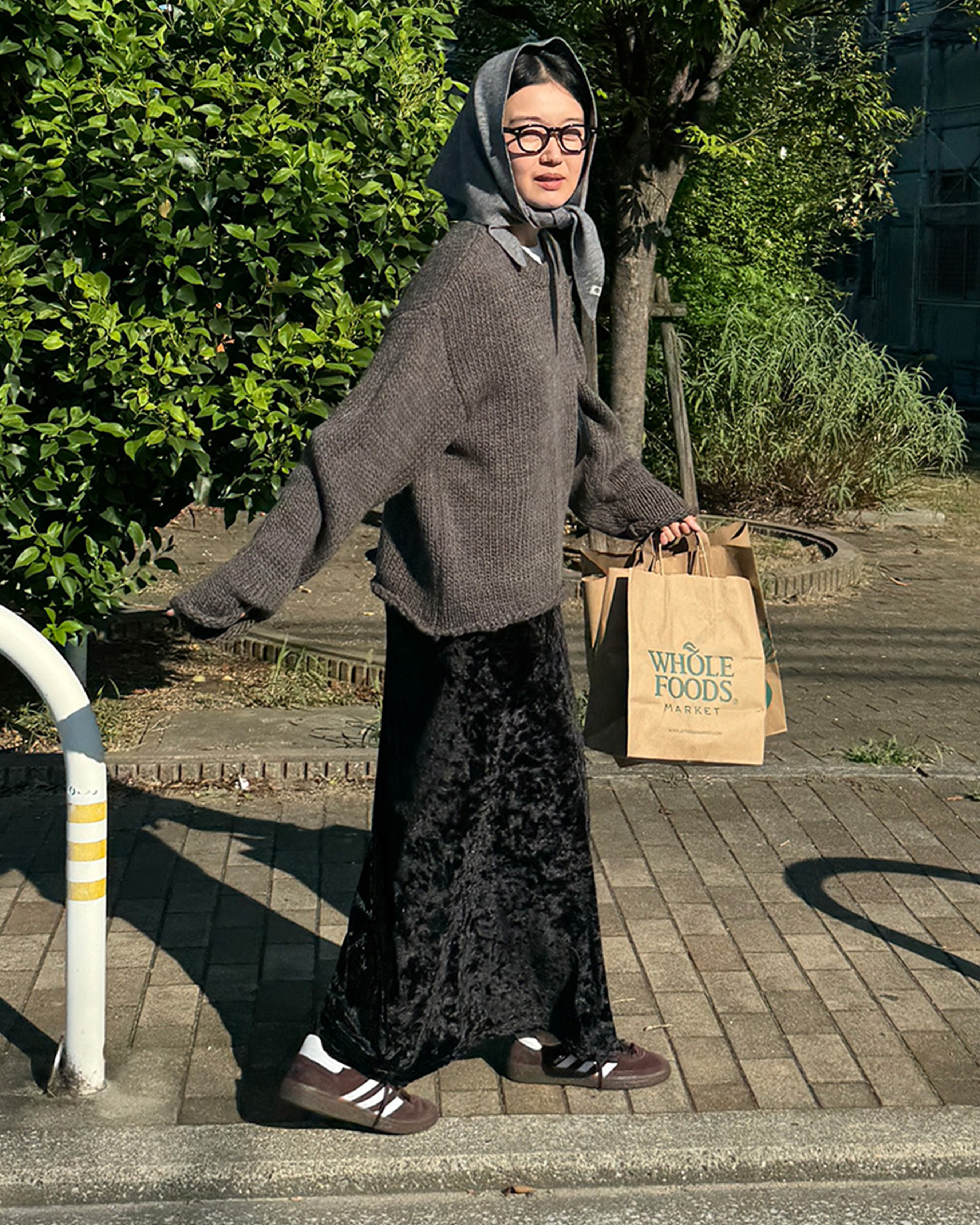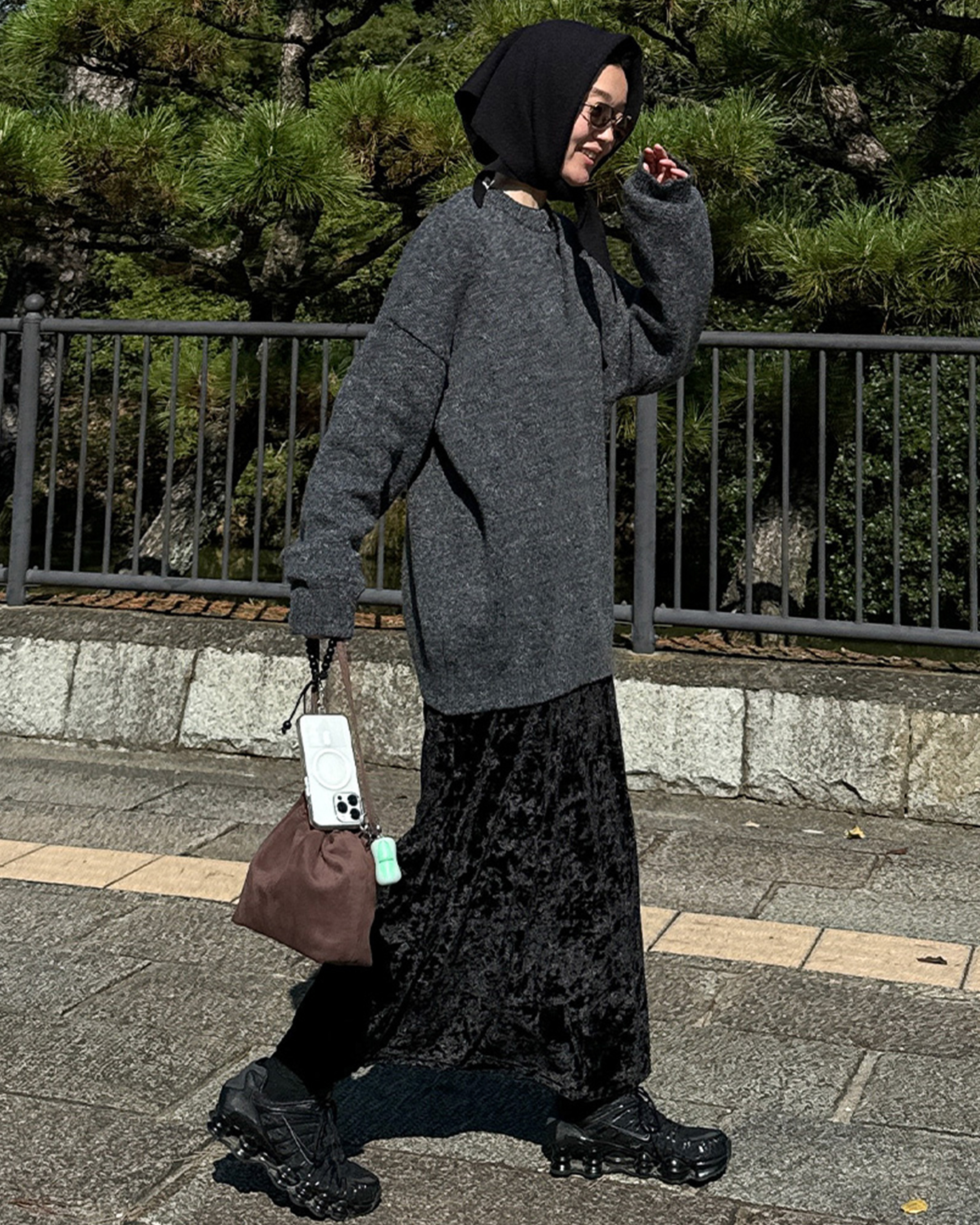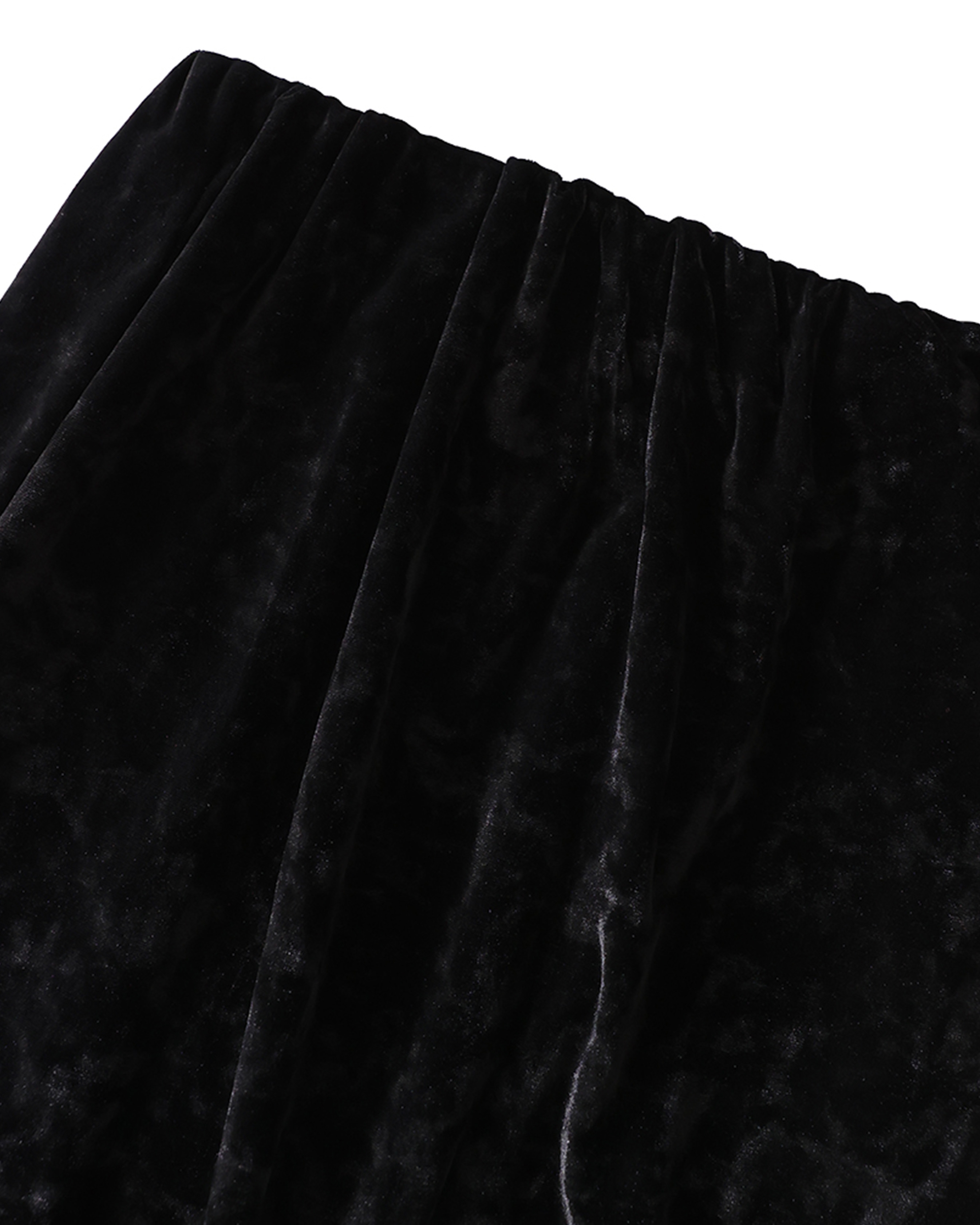 [6回再販](ORIGINAL) ベルベットバンディングロングスカート (black)