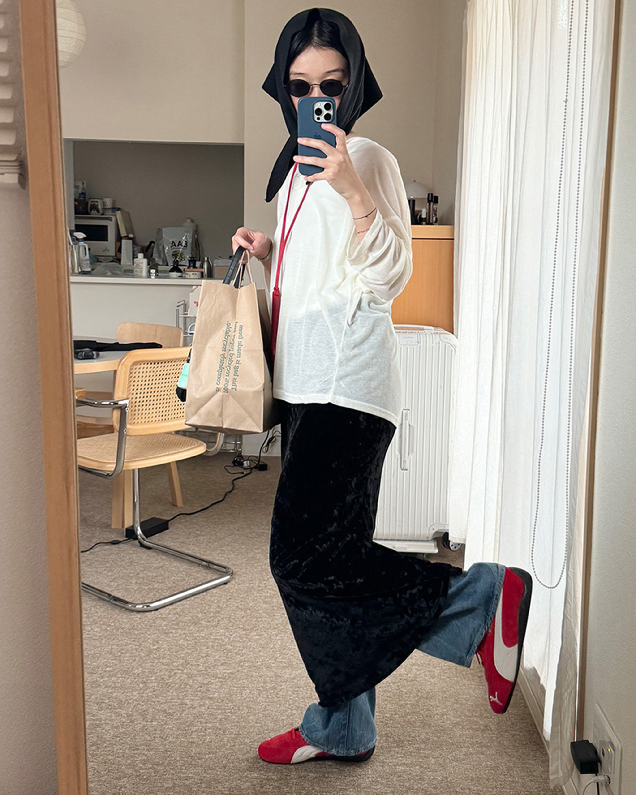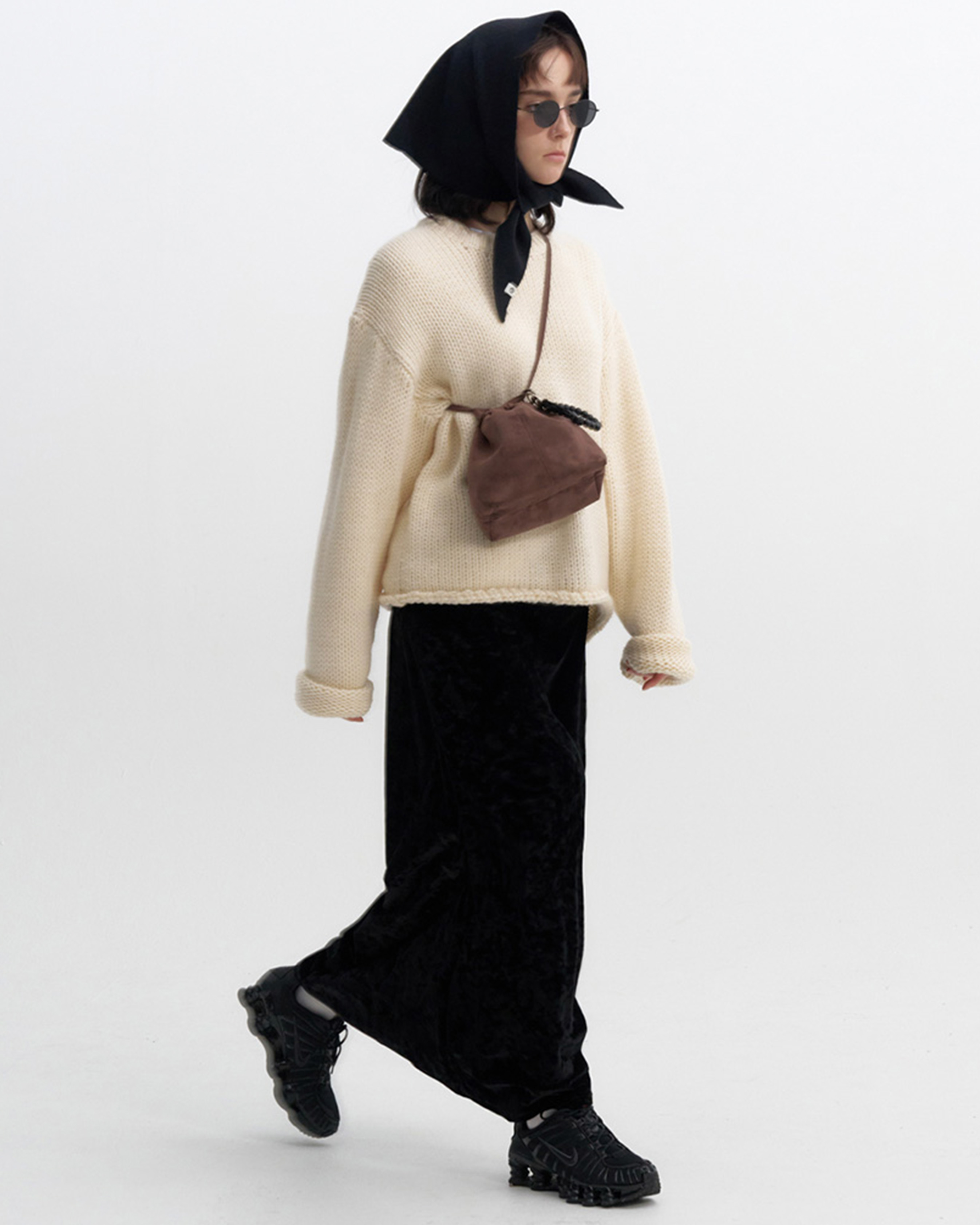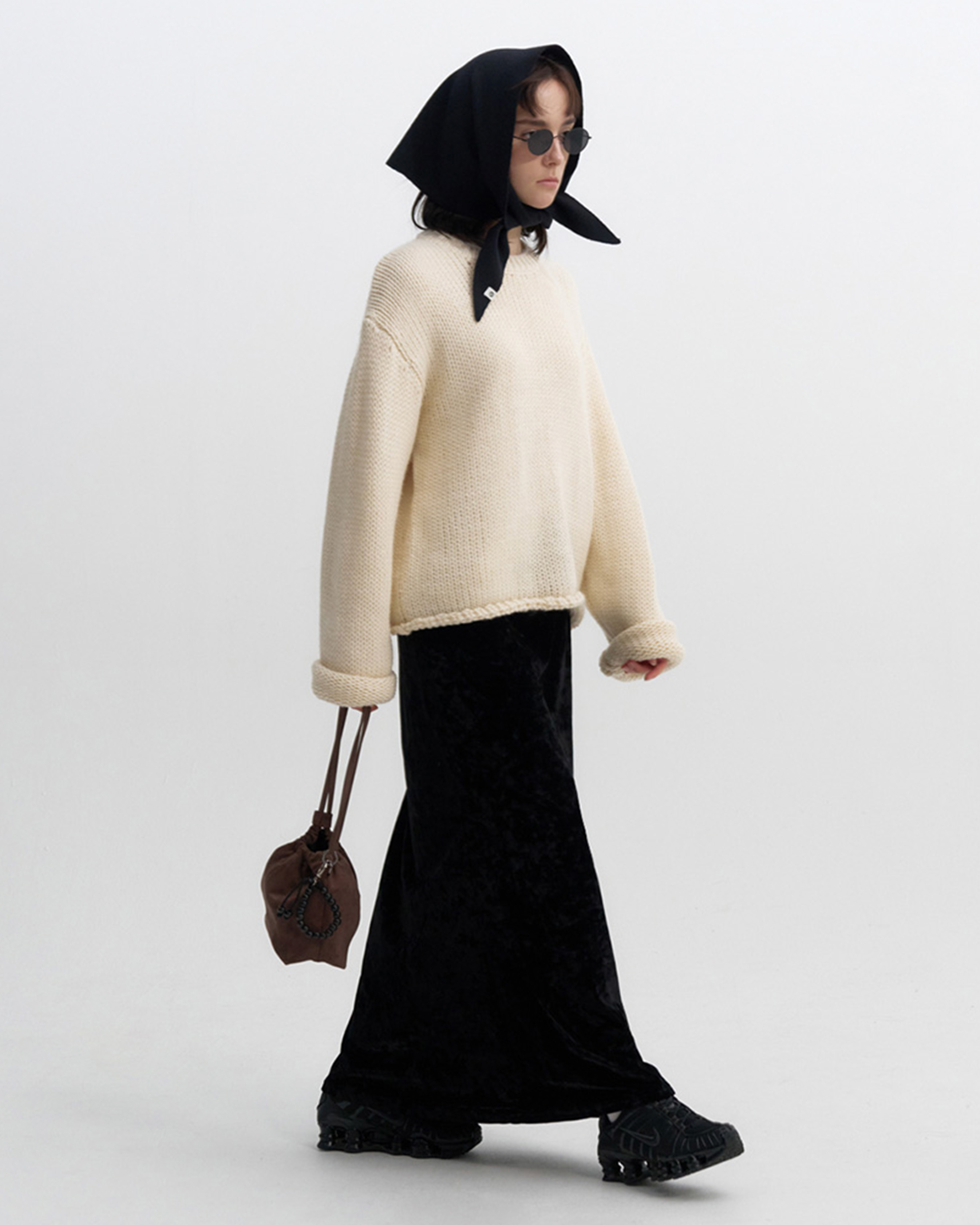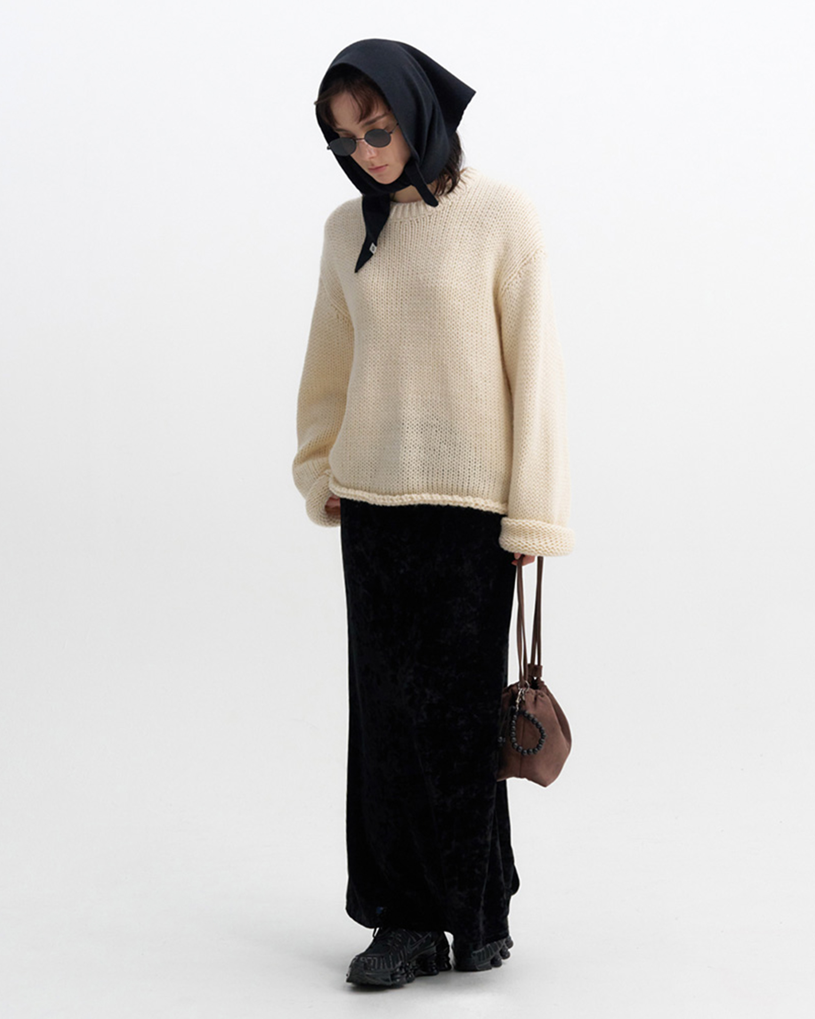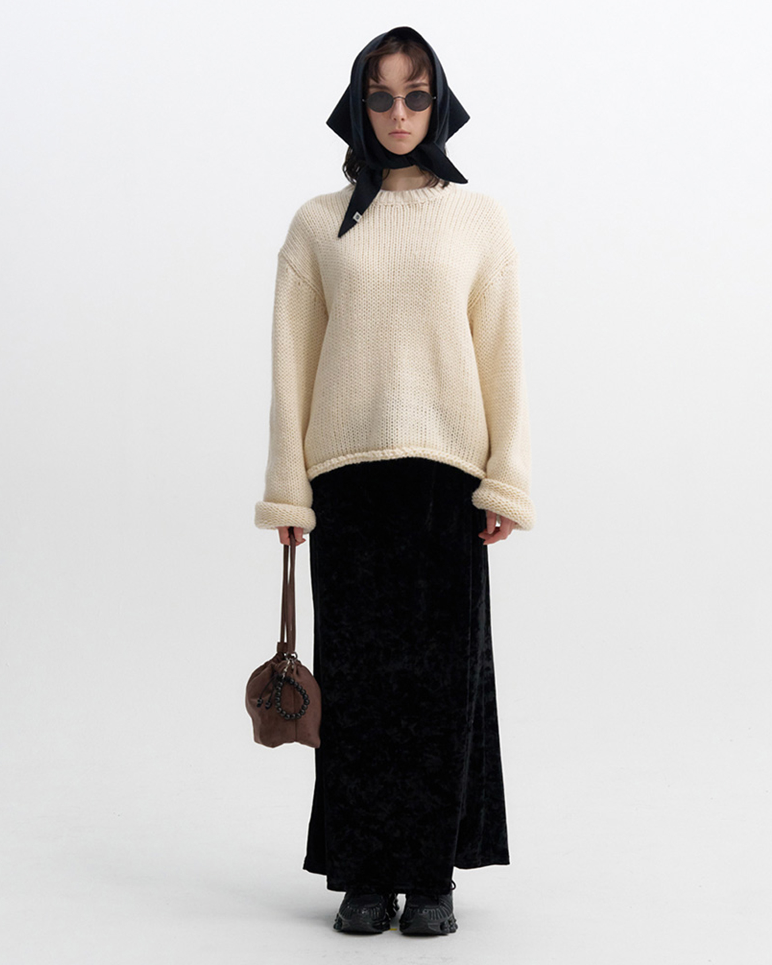 [6回再販](ORIGINAL) ベルベットバンディングロングスカート (black)