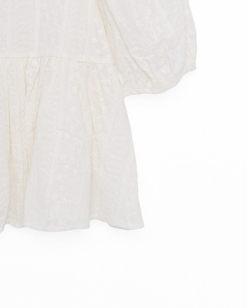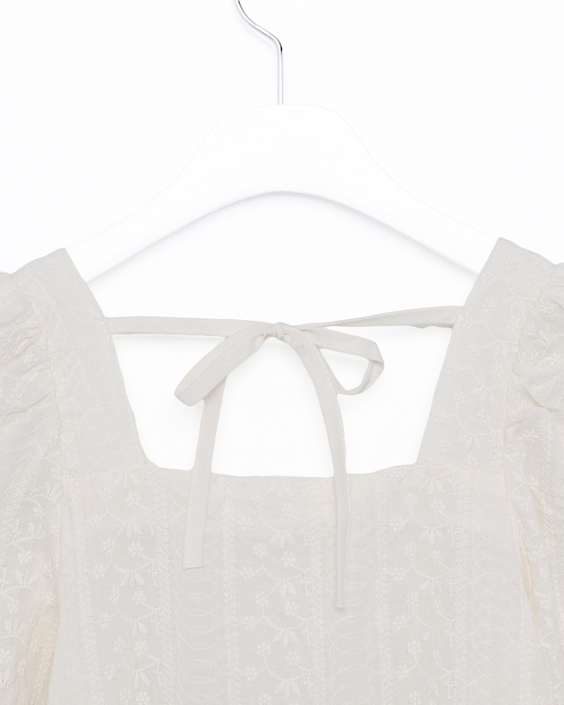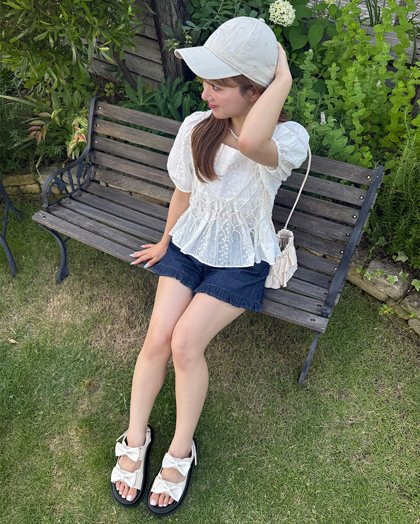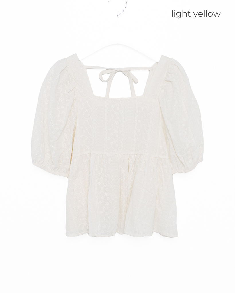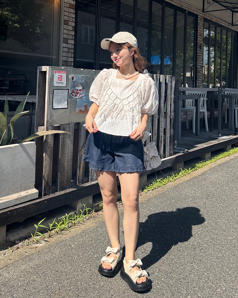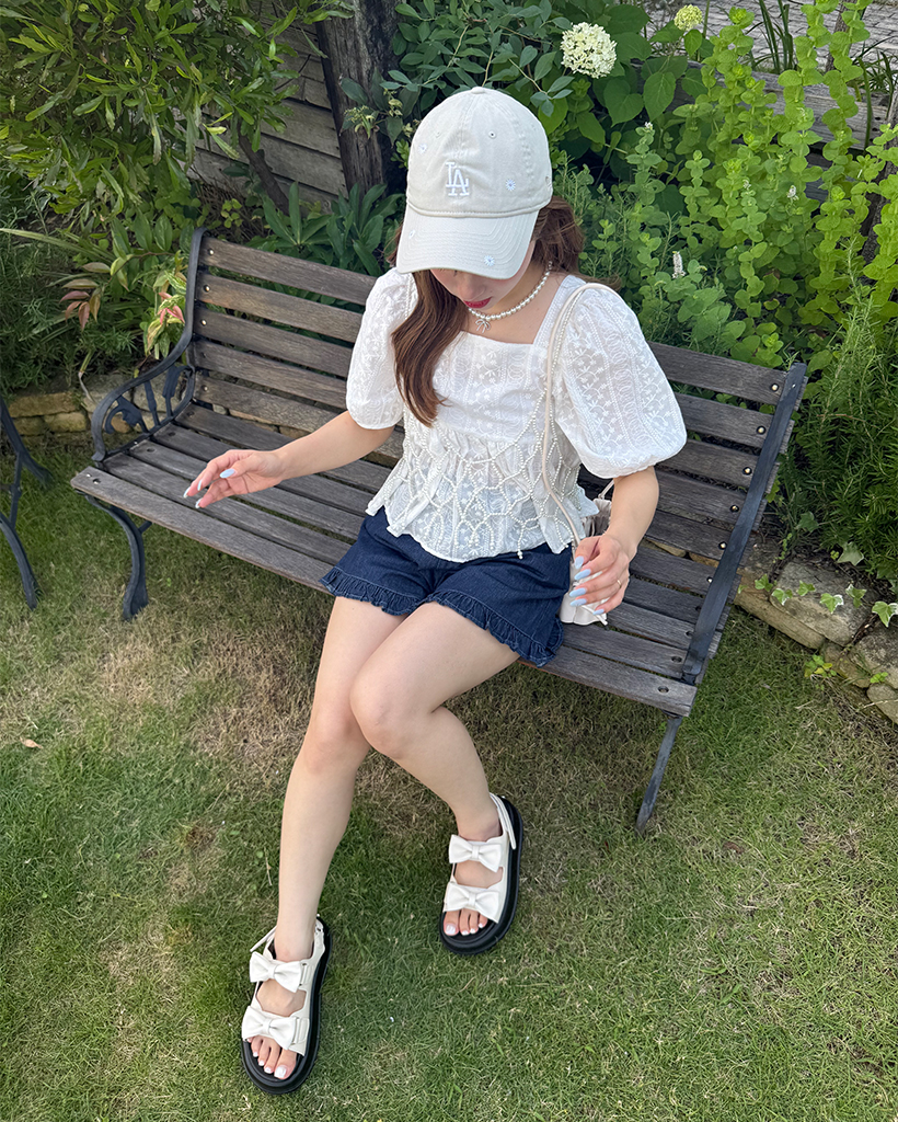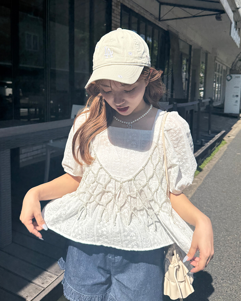 フラワーレースパフスリーブペプラムブラウス