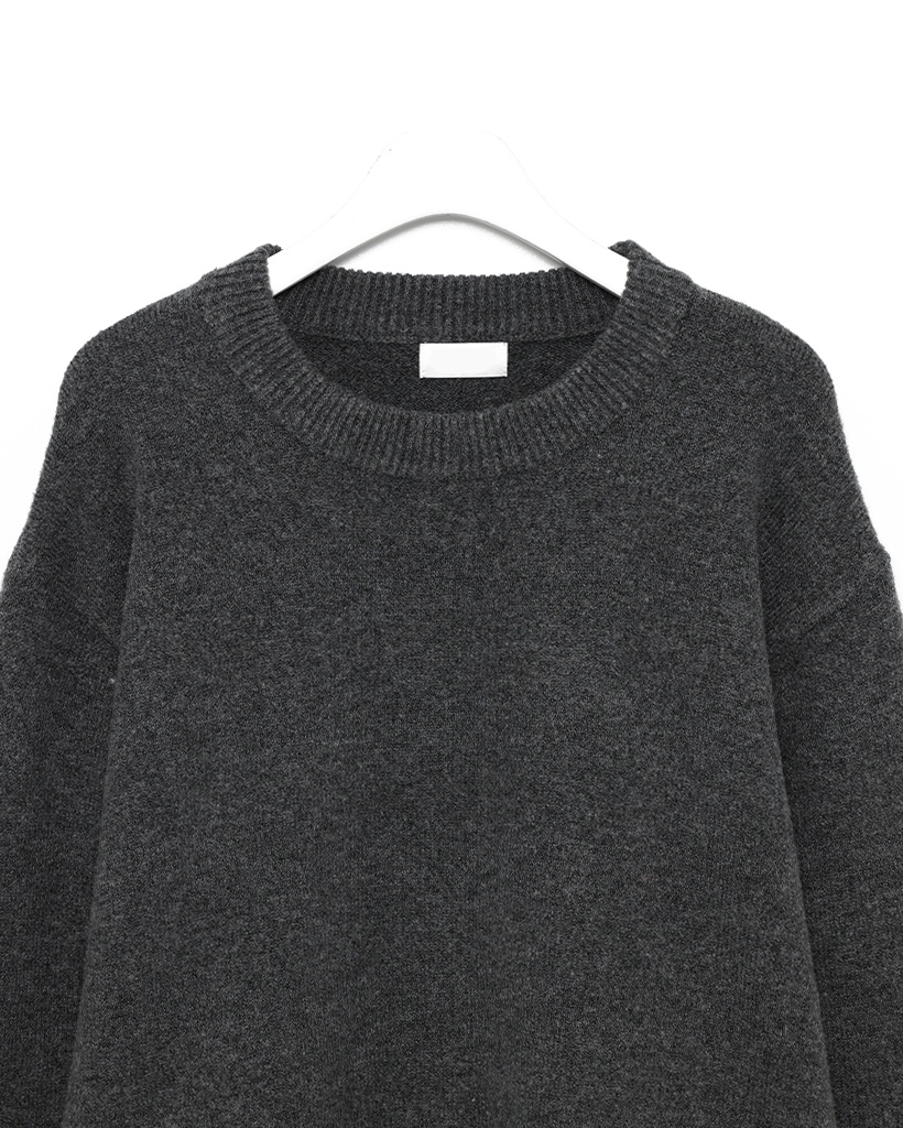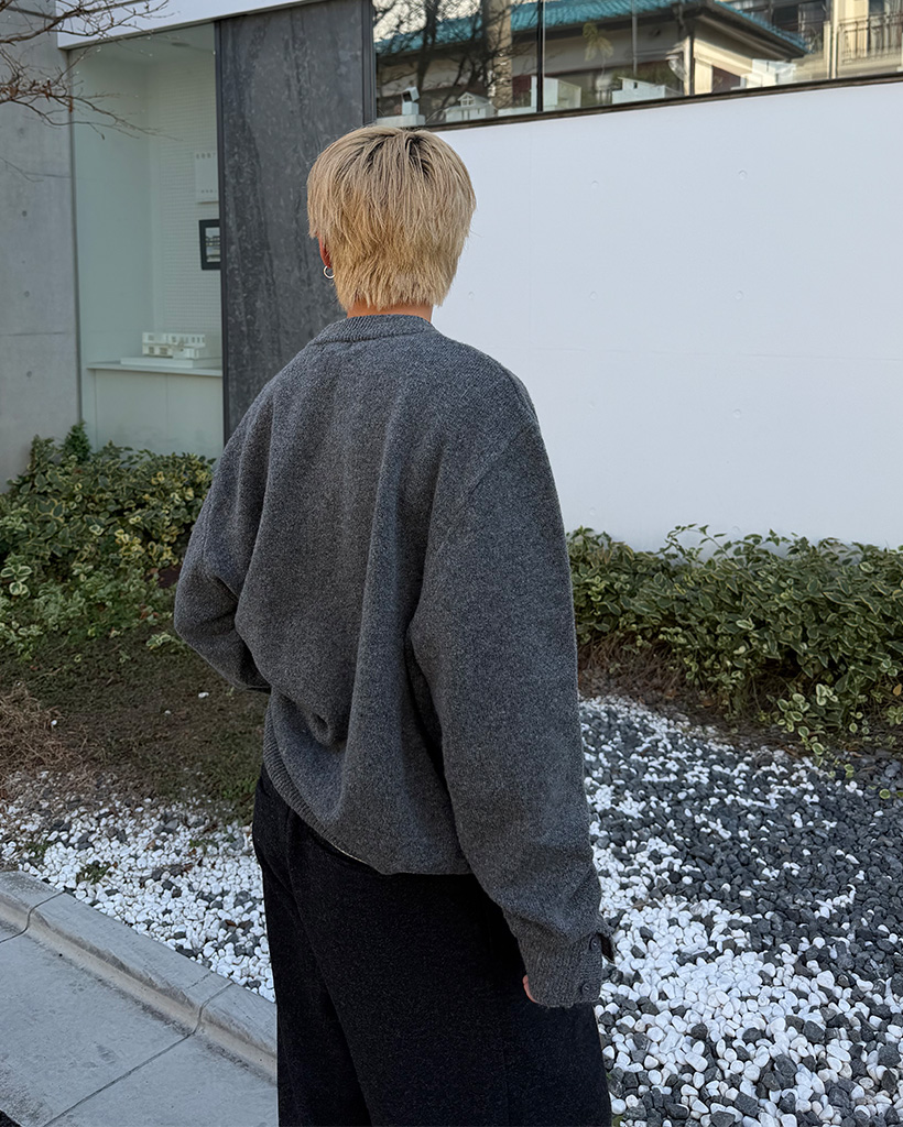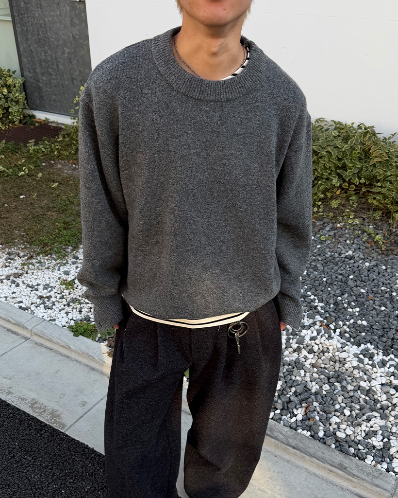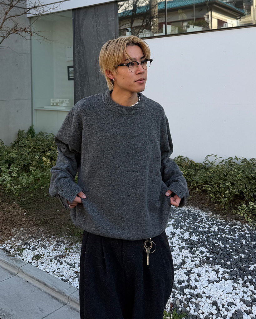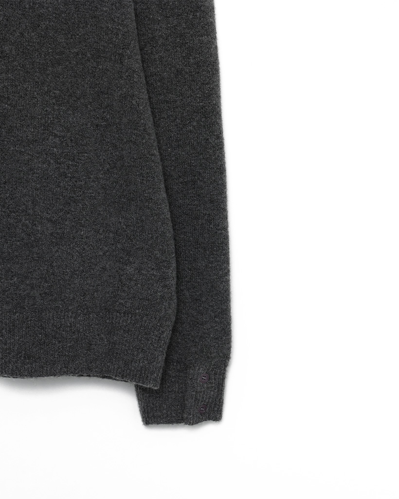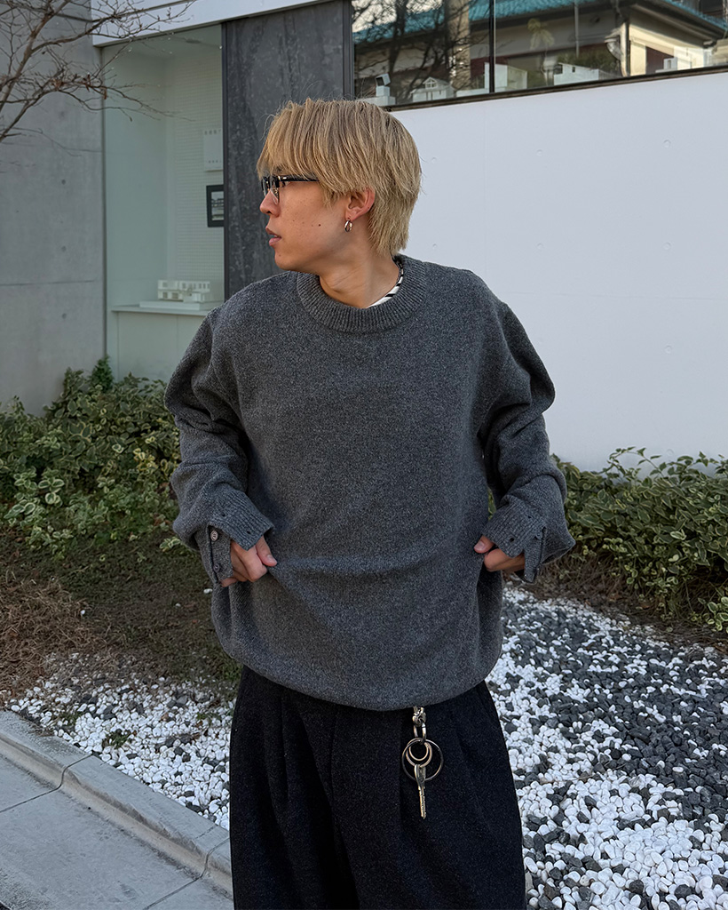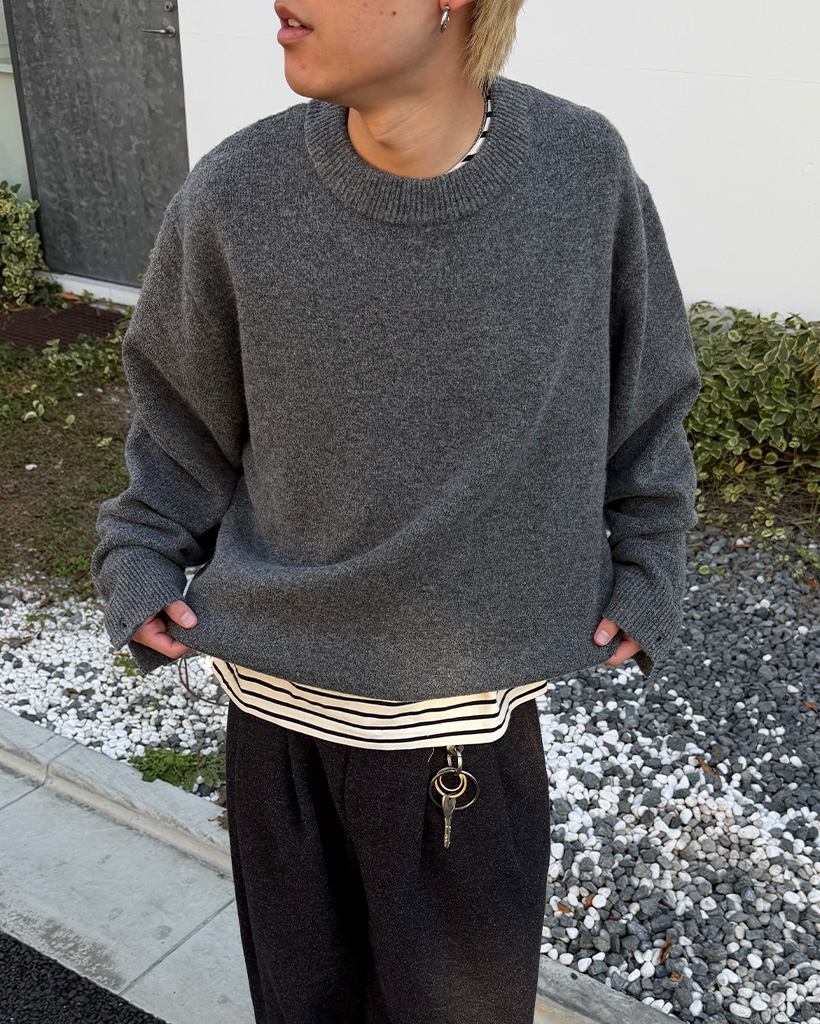 袖ボタンポイントラウンド長袖ニット