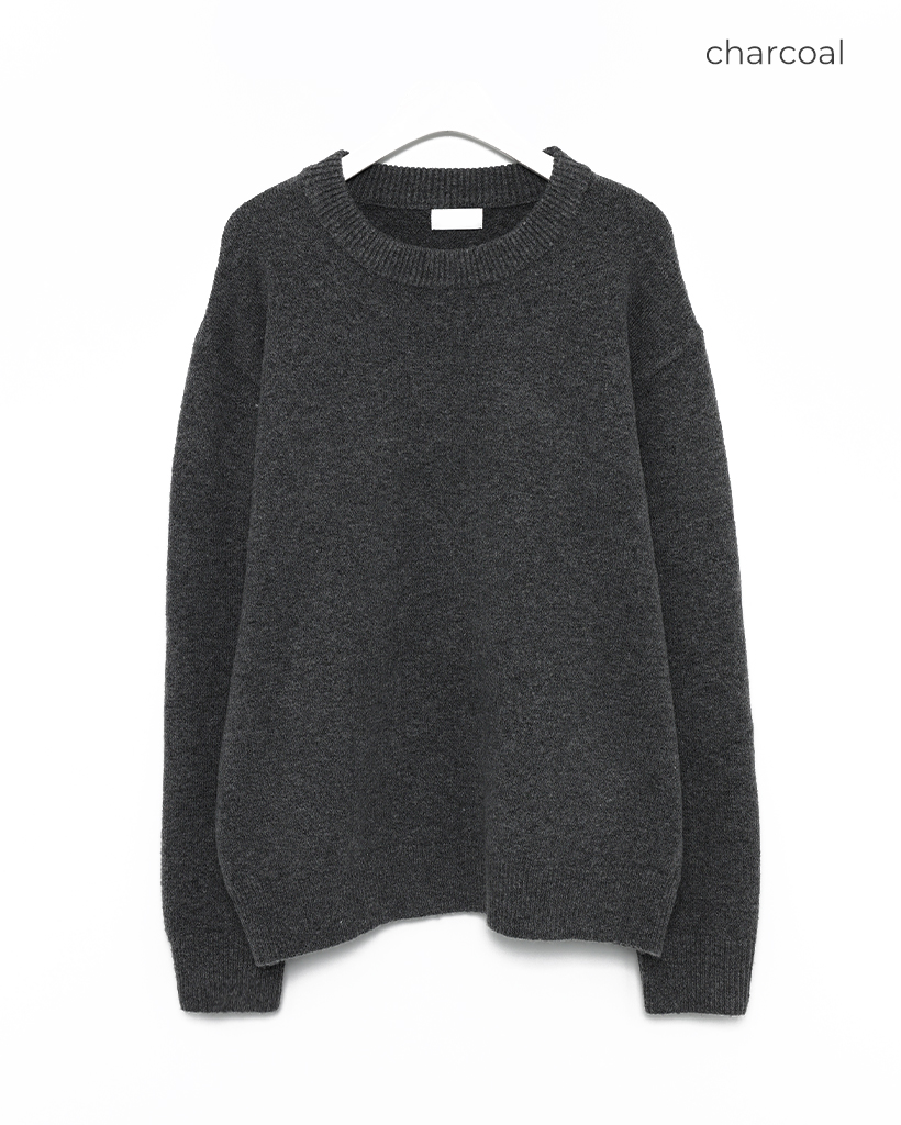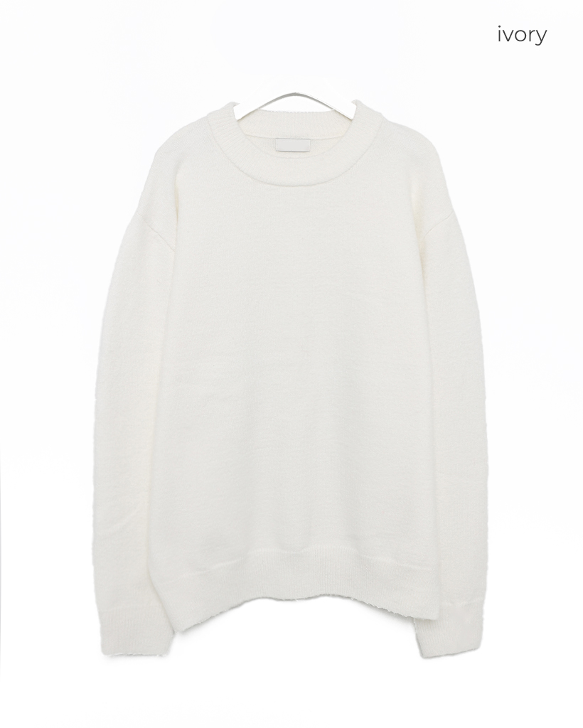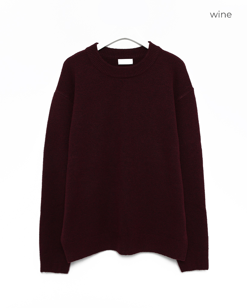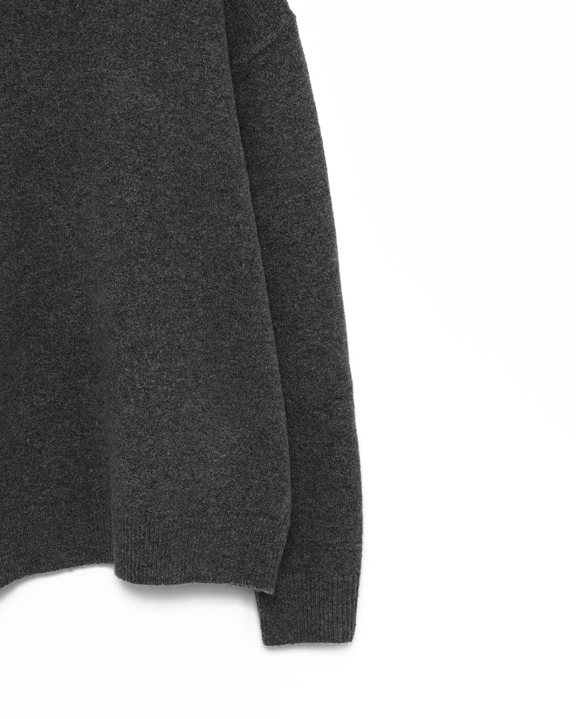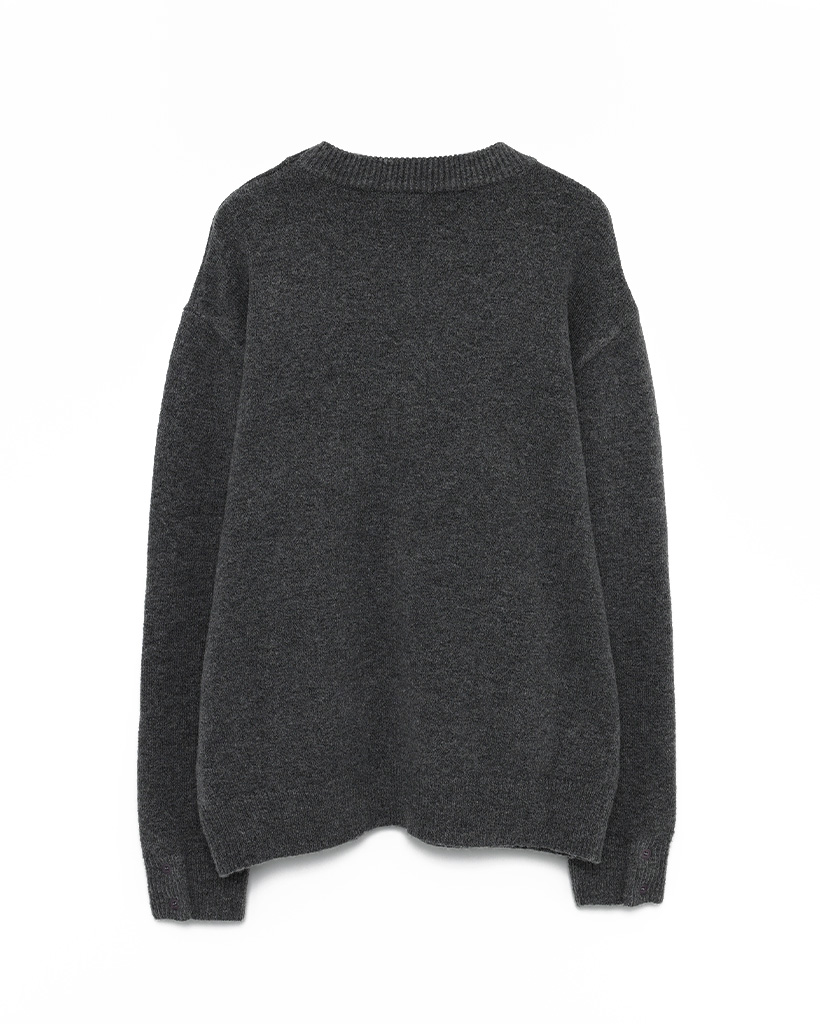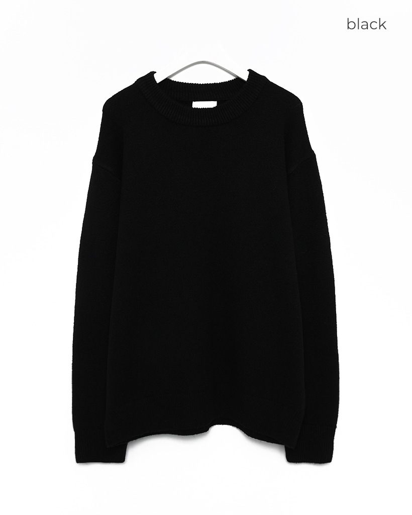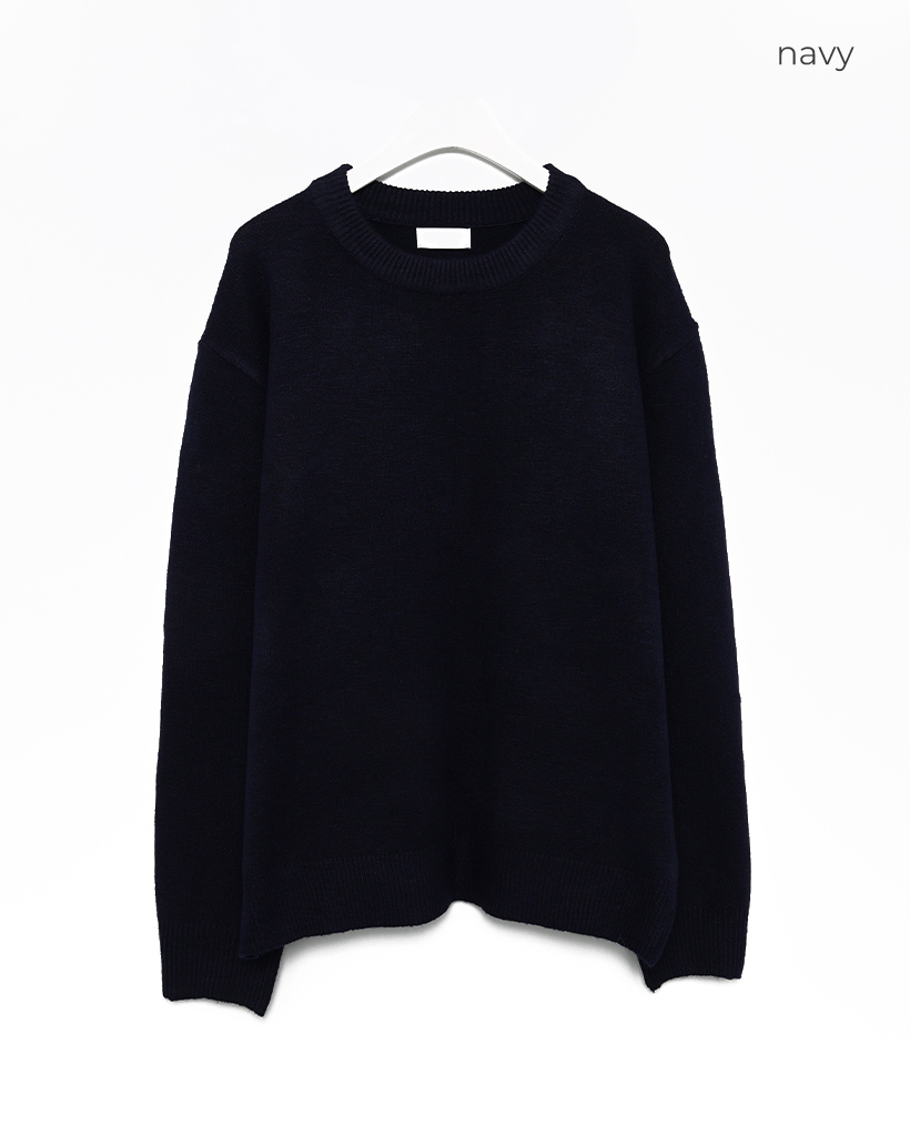 袖ボタンポイントラウンド長袖ニット