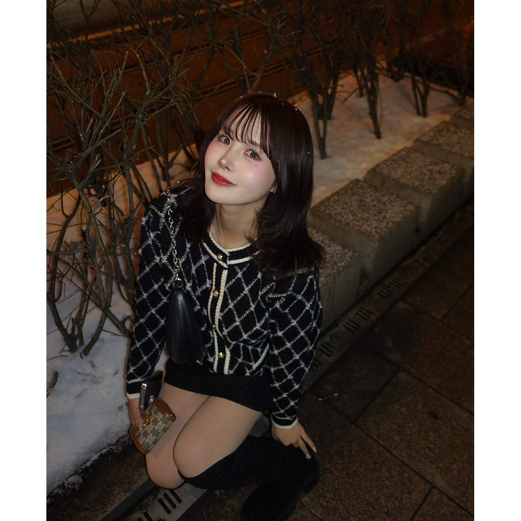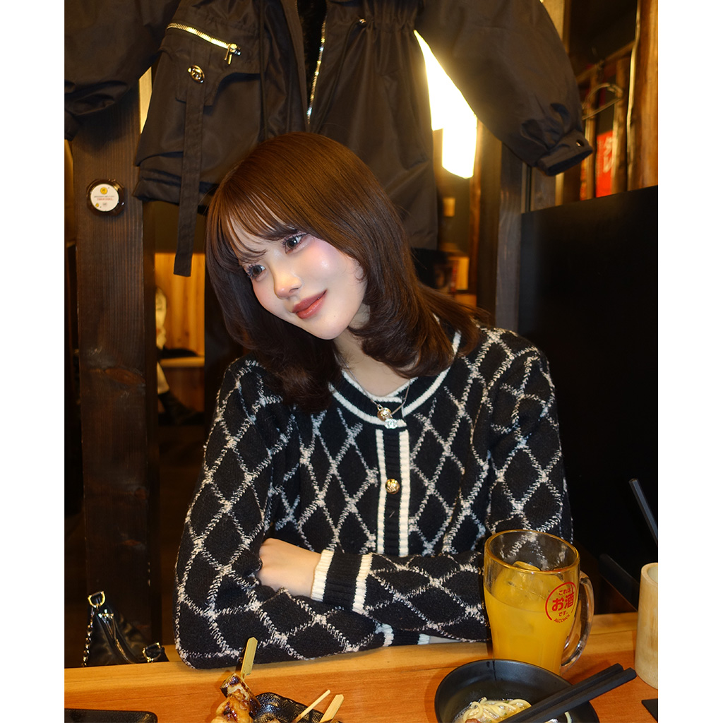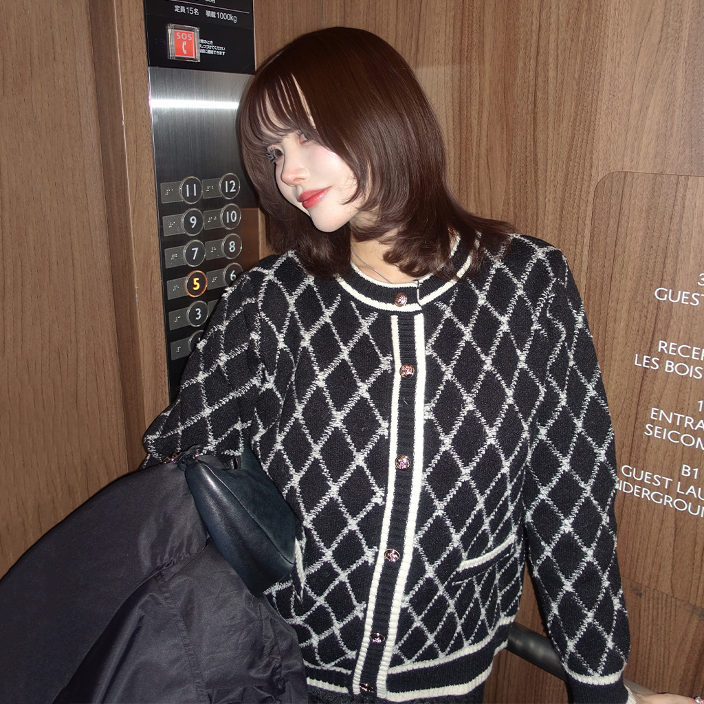 goldボタンツイードカーディガン
