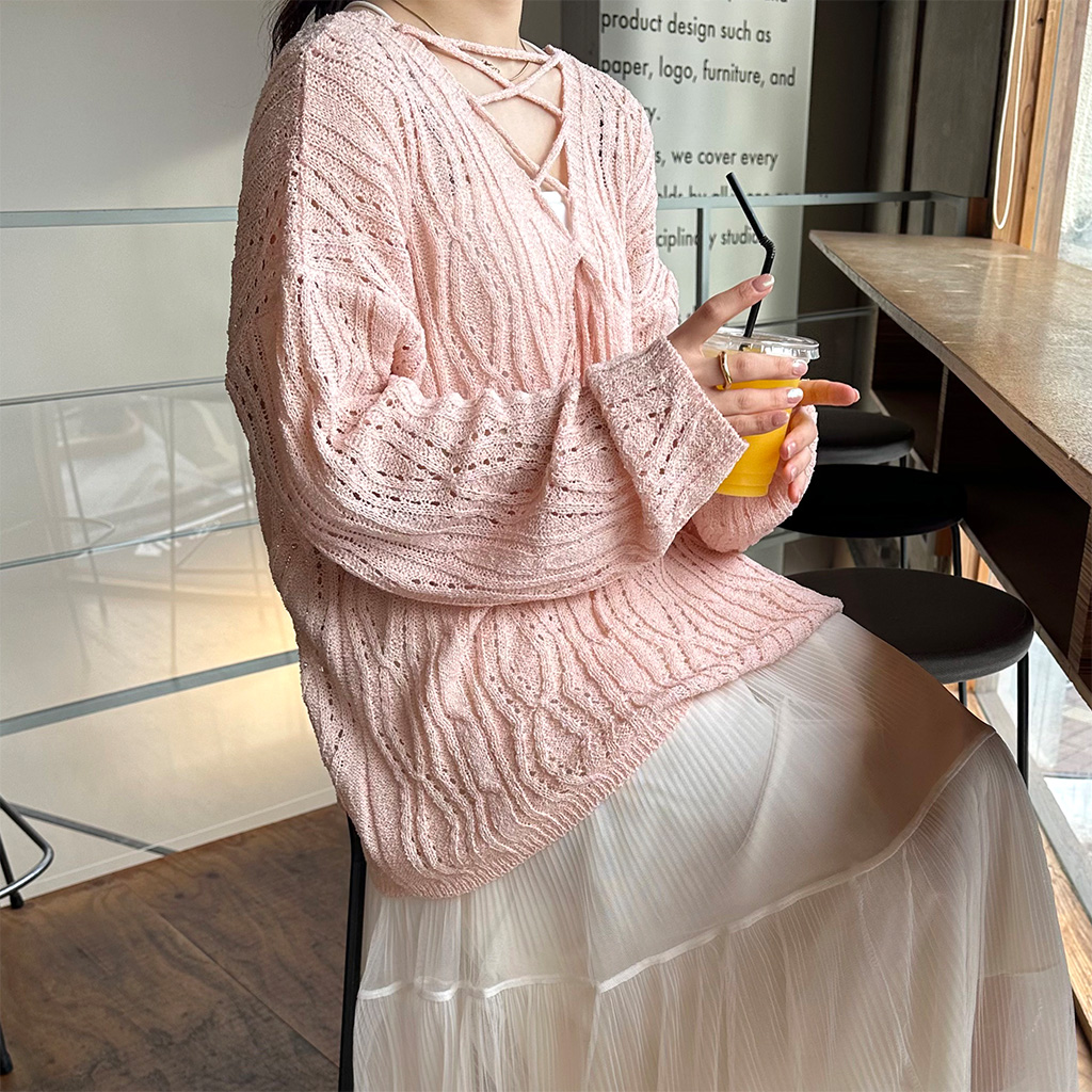ツイストストリングVネックニット