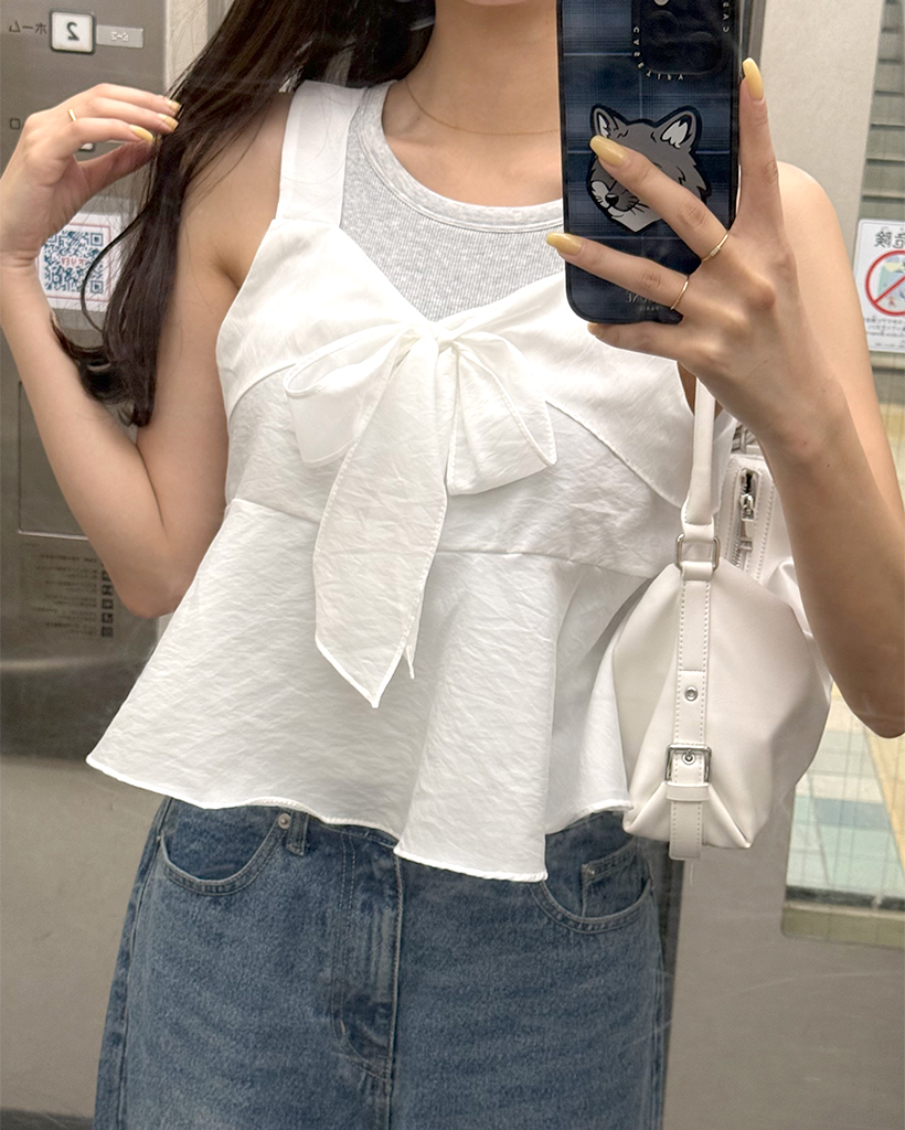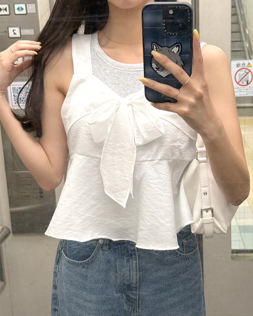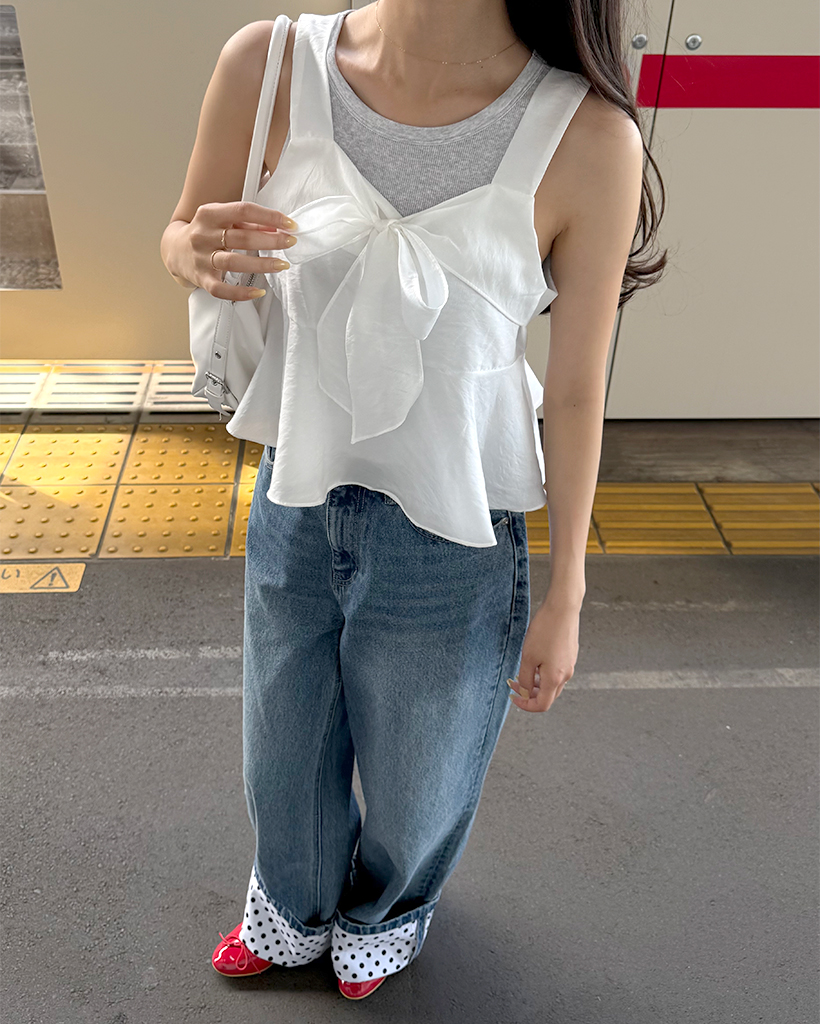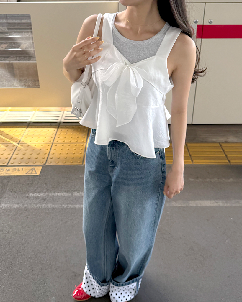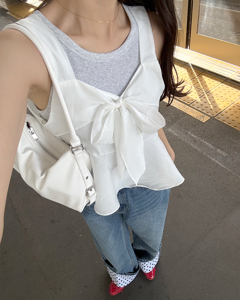 リボンポイントノースリーブブラウス
