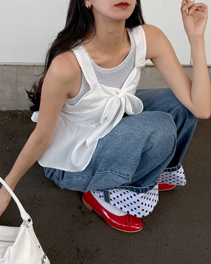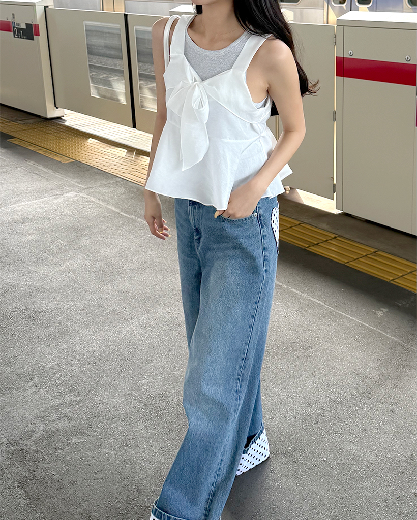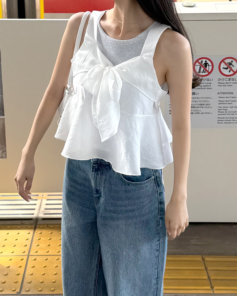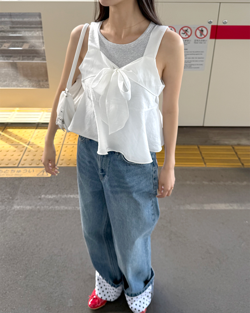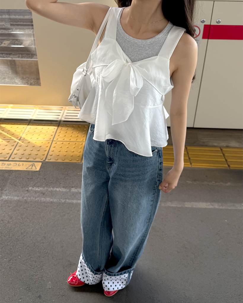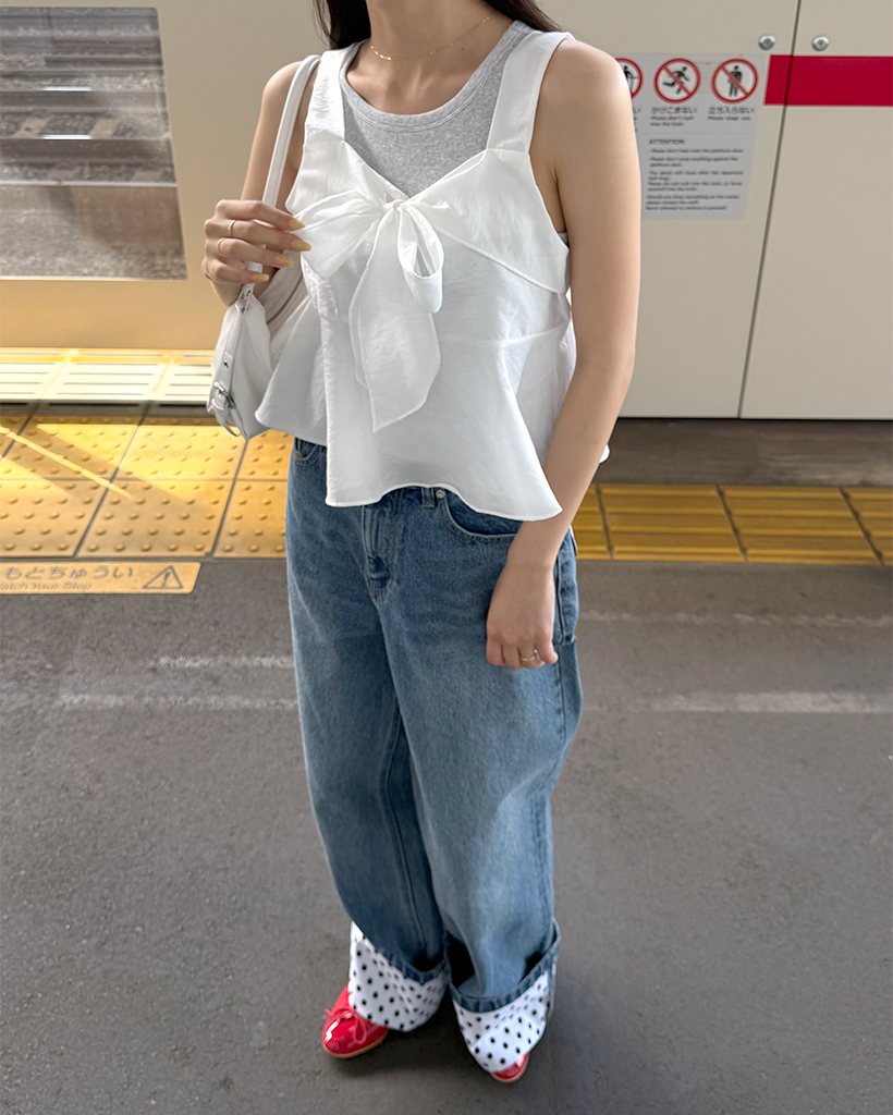 リボンポイントノースリーブブラウス