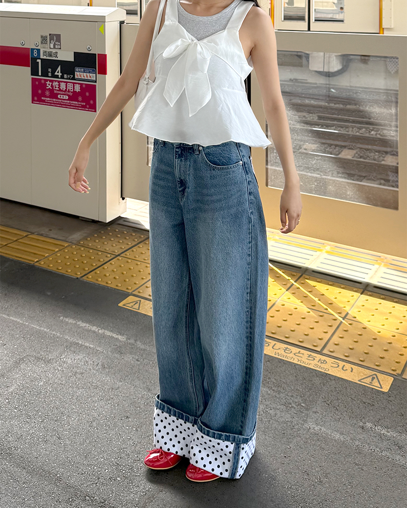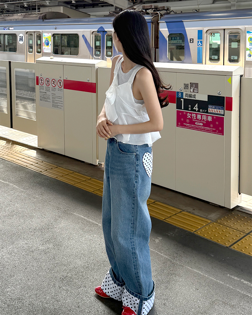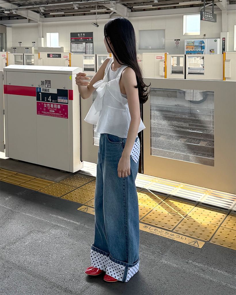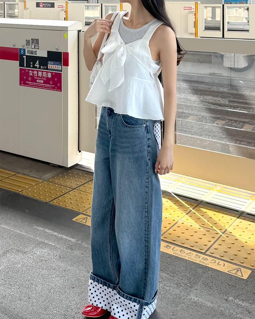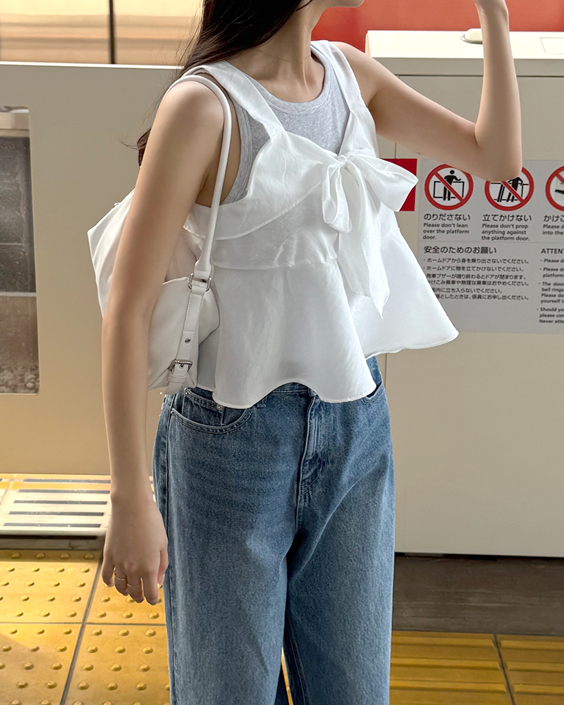 リボンポイントノースリーブブラウス
