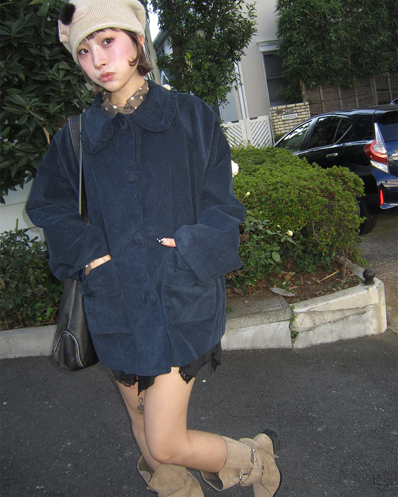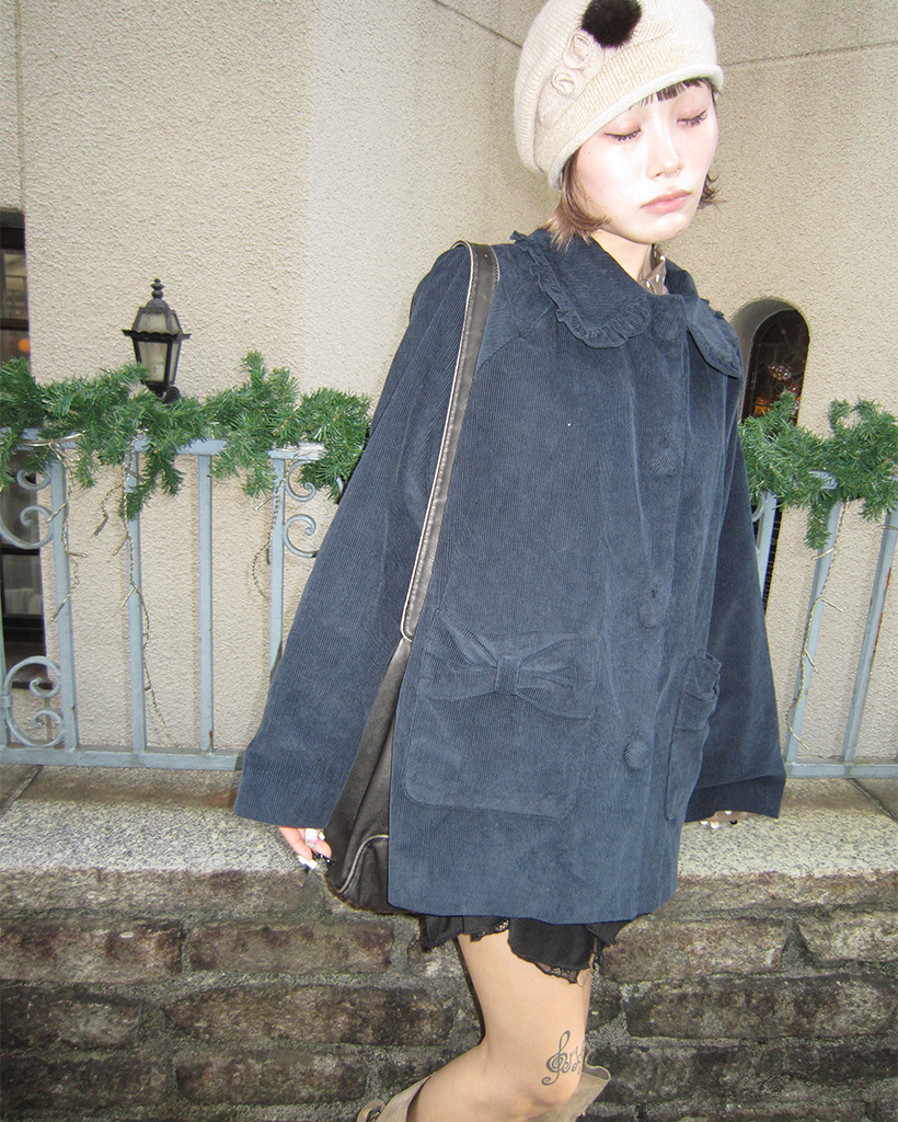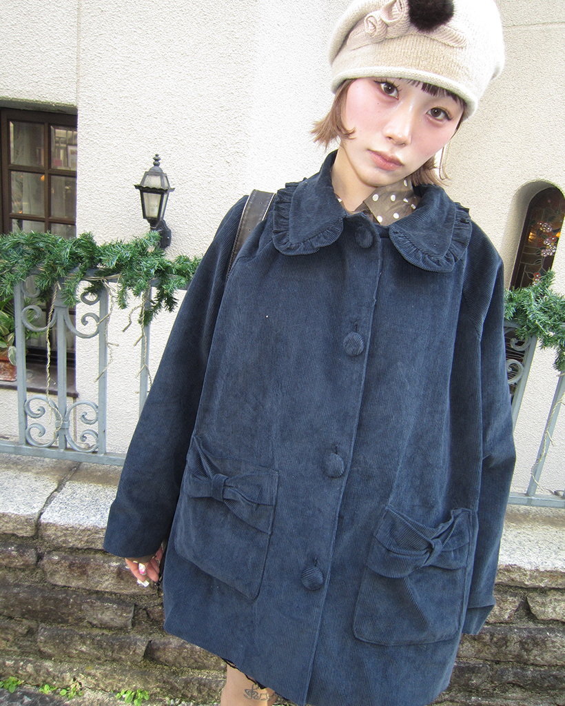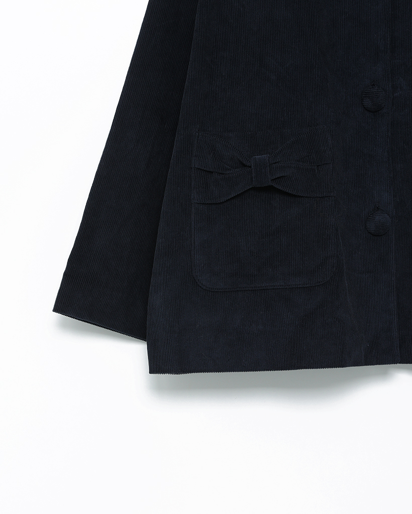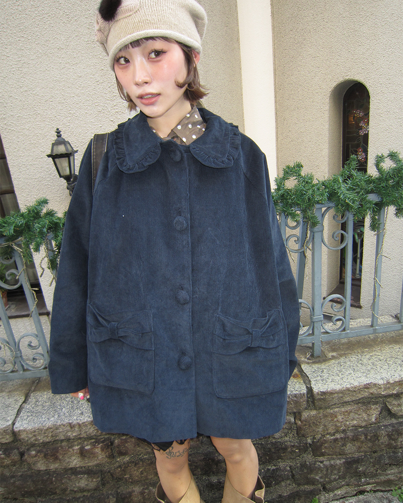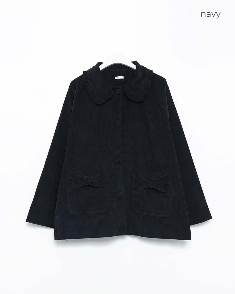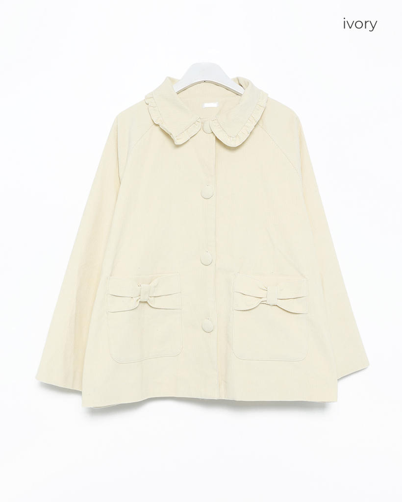フリルカラーリボンポケットコーデュロイジャケット