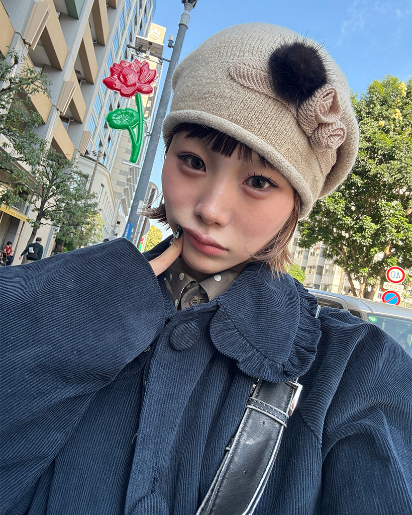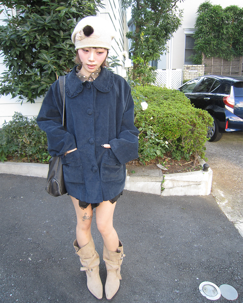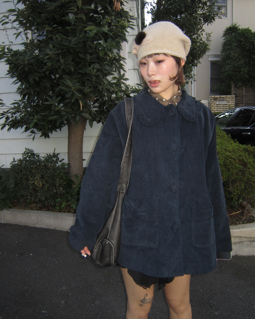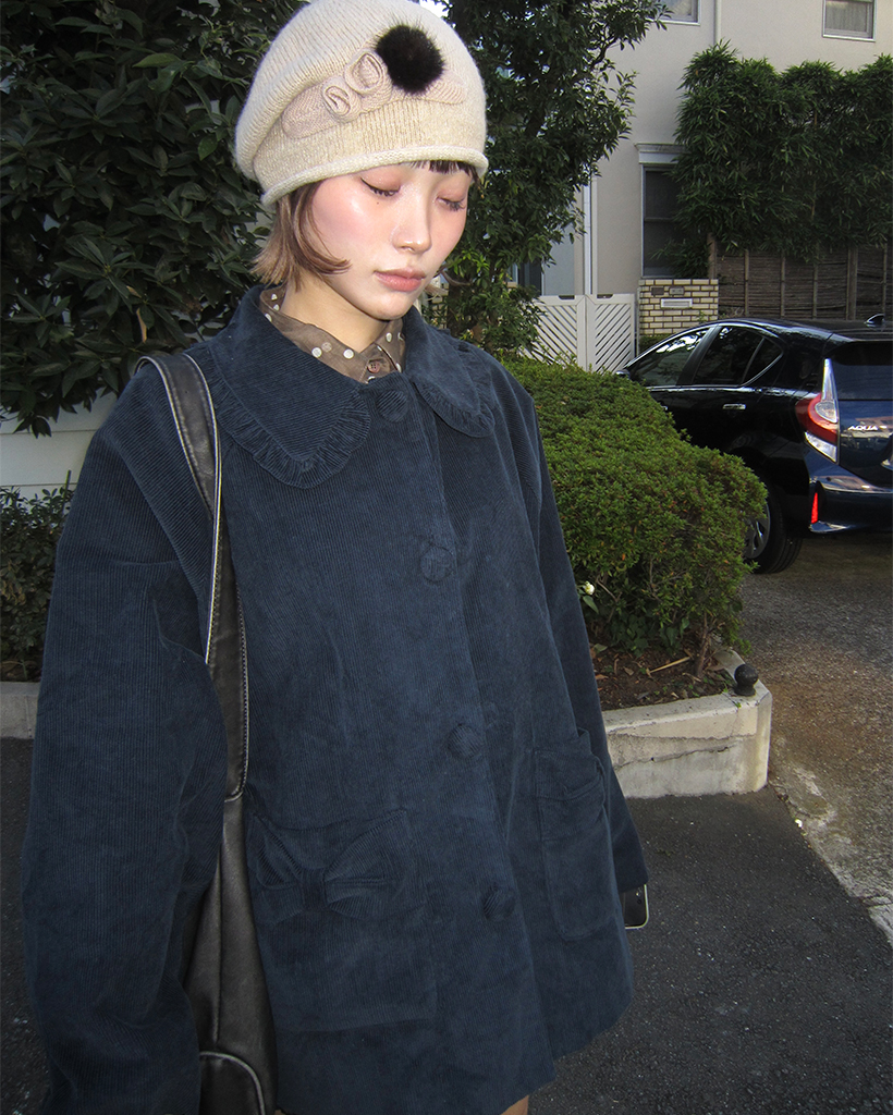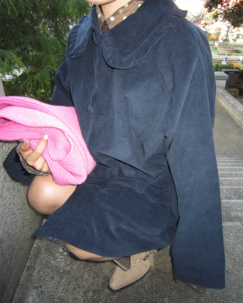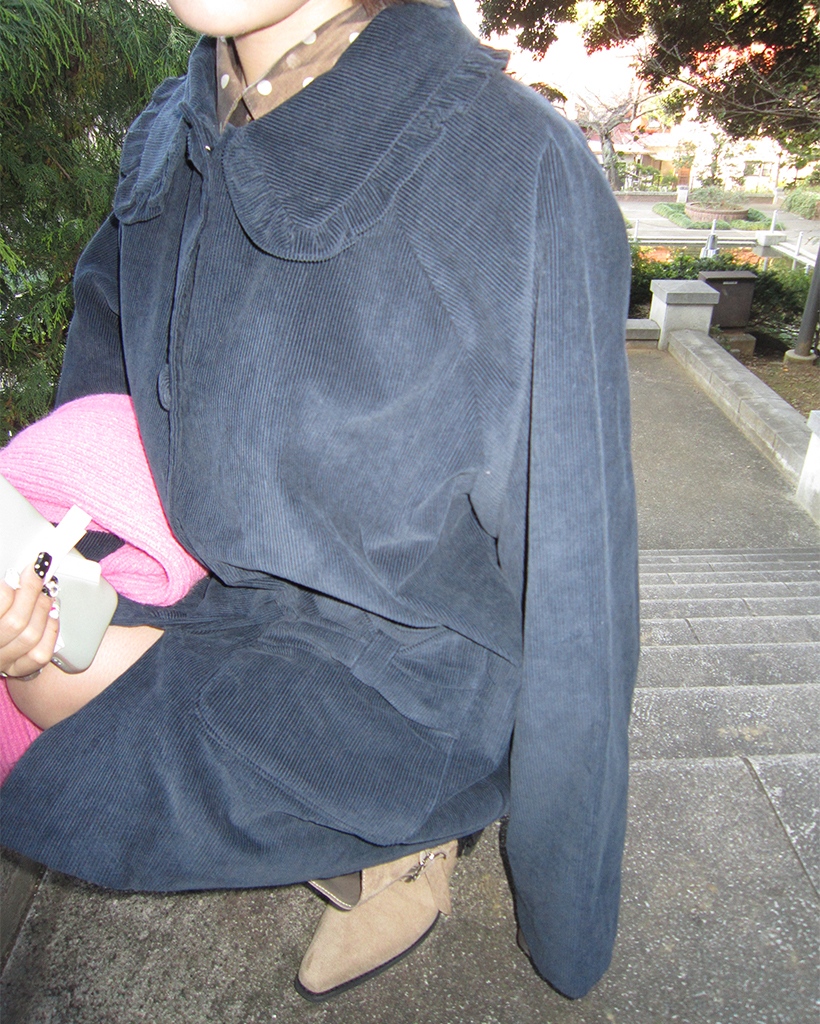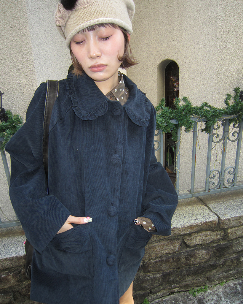 フリルカラーリボンポケットコーデュロイジャケット