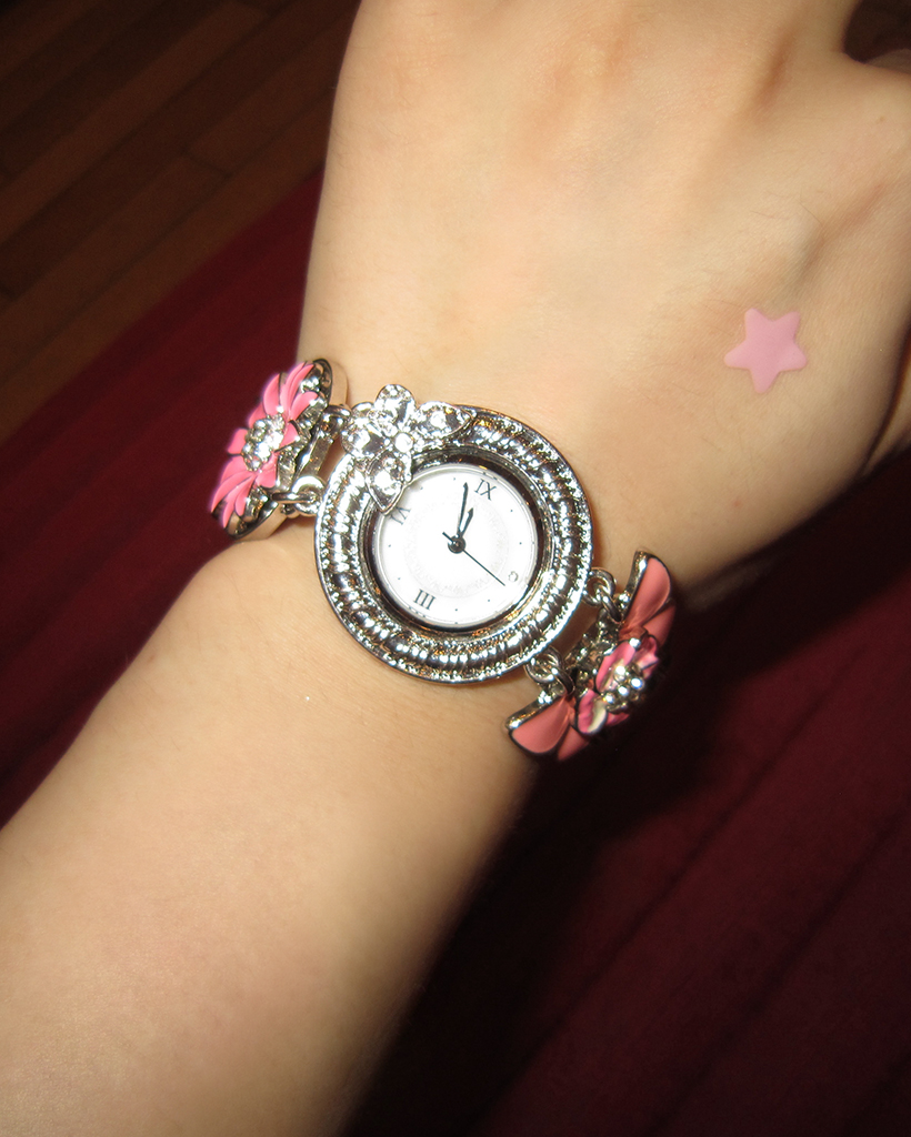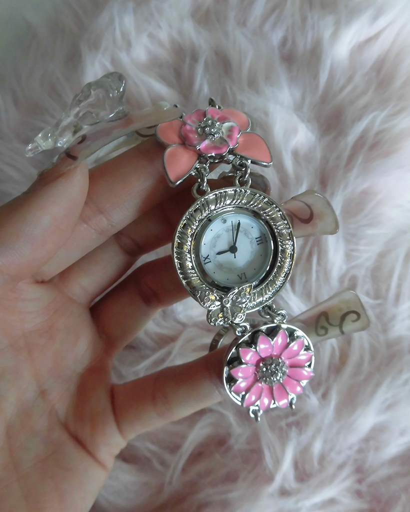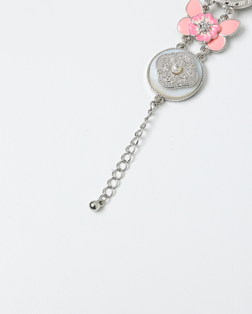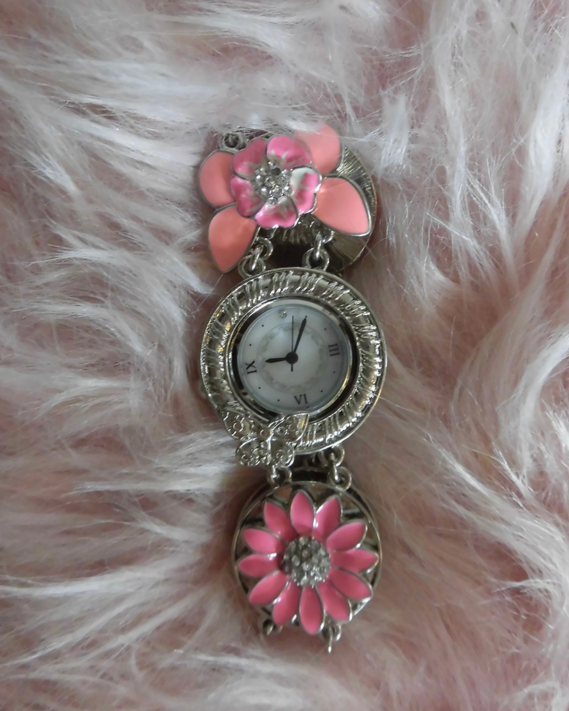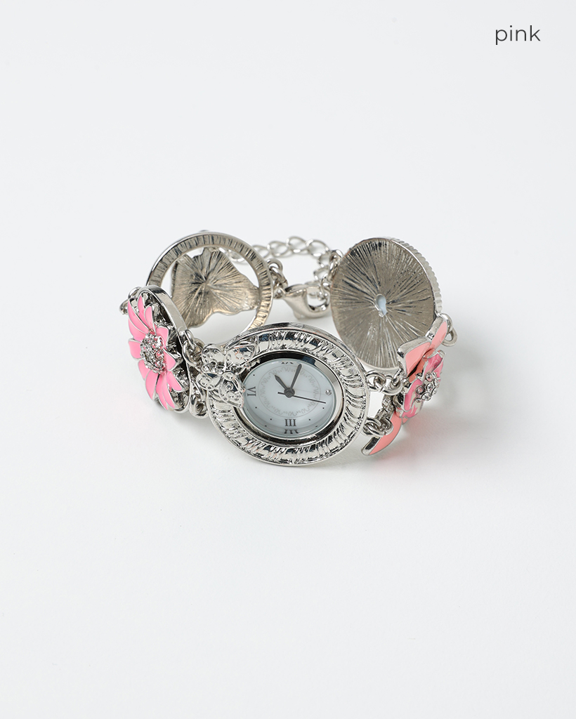 ピンクフラワーアンティークラウンドハンドウォッチ