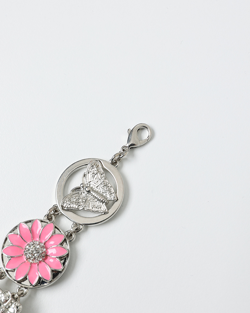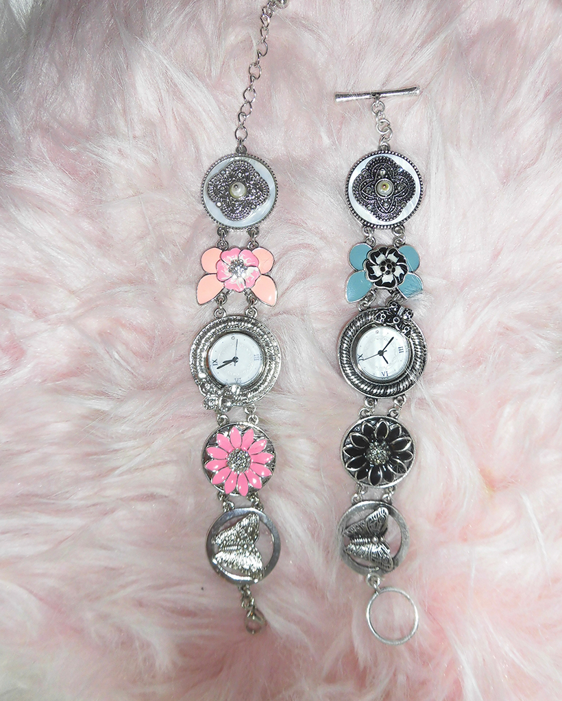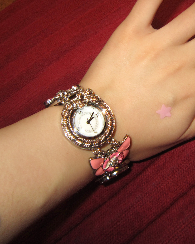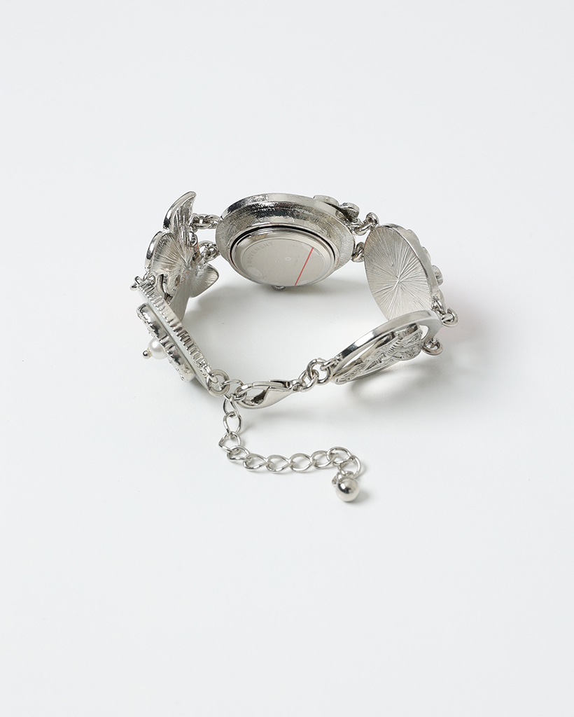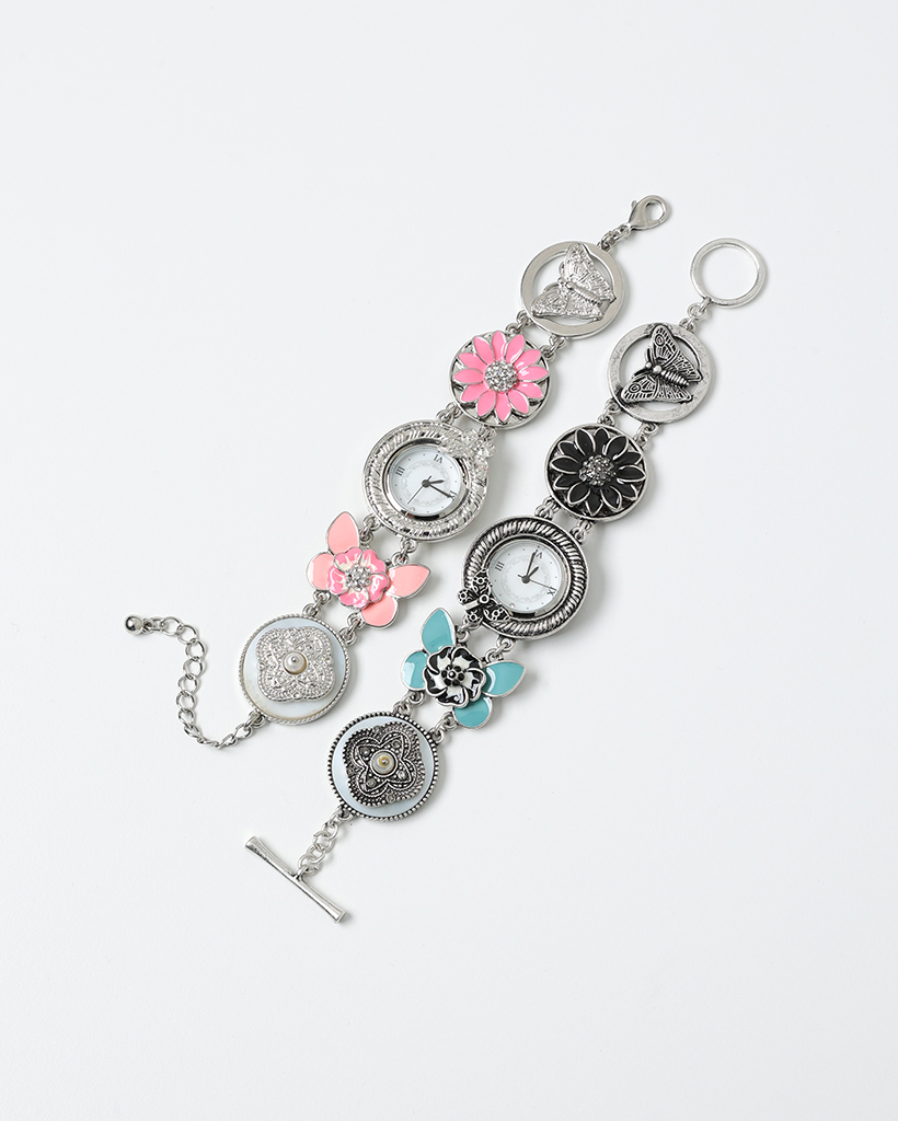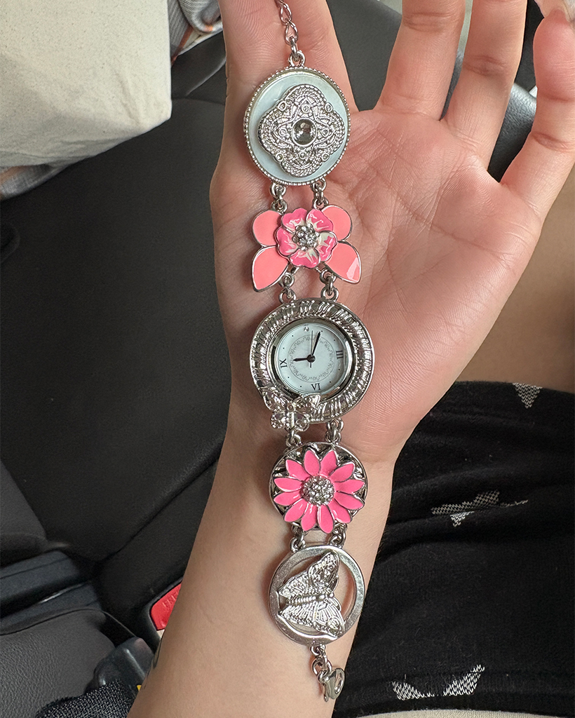 ピンクフラワーアンティークラウンドハンドウォッチ