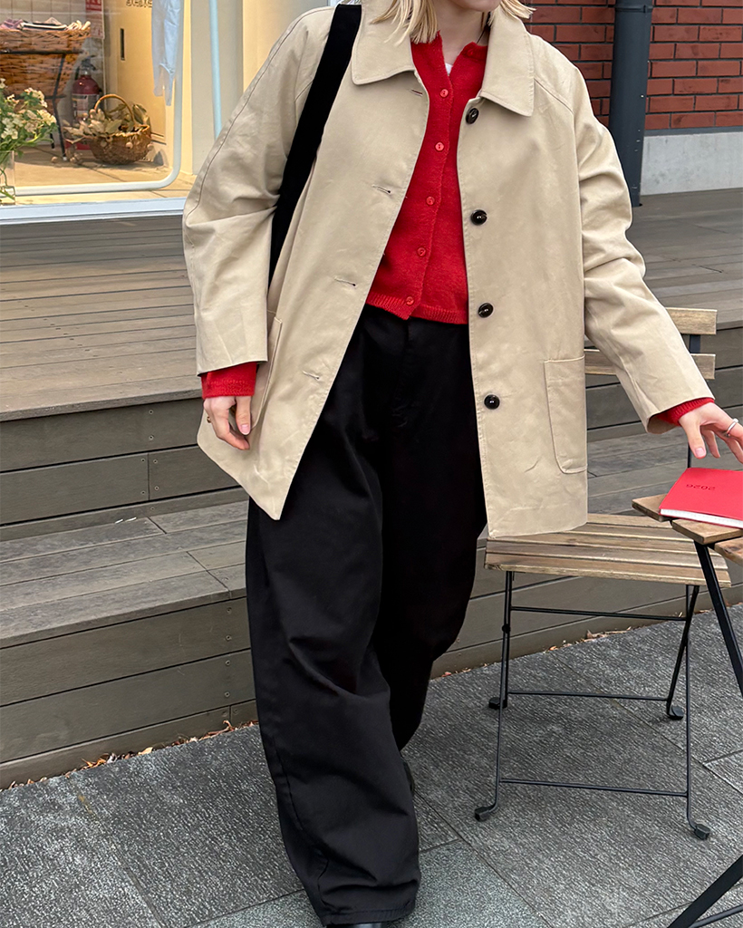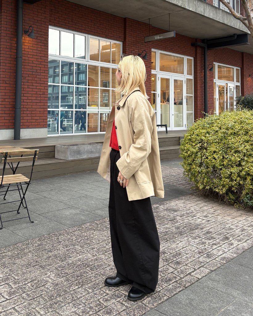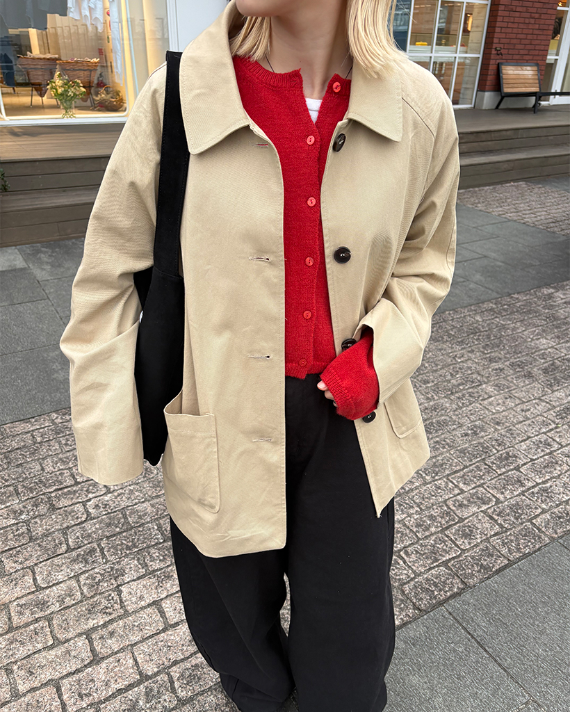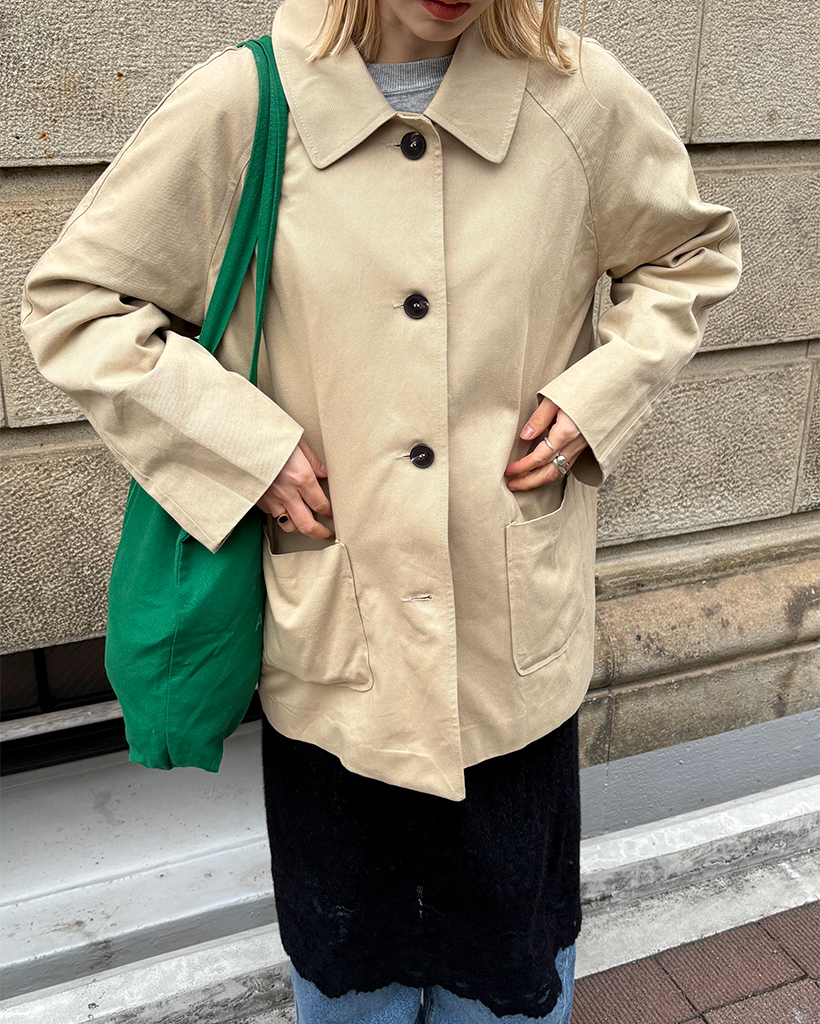 スクエアポケットシングルハーフトレンチコート