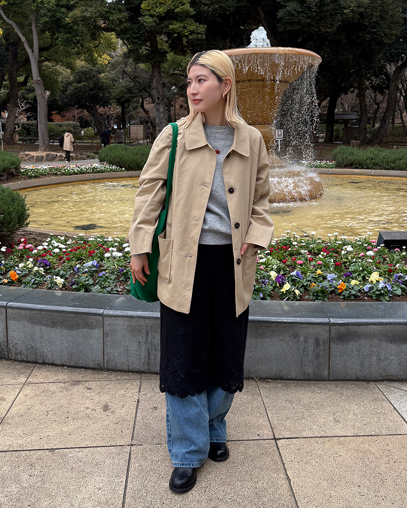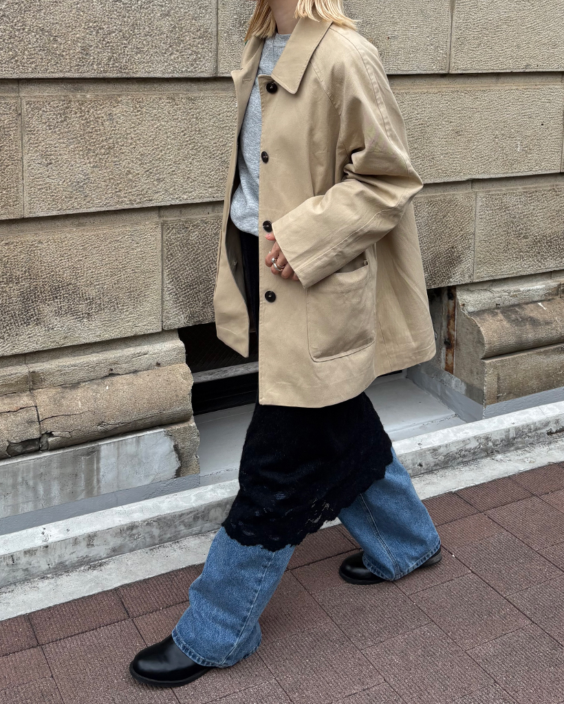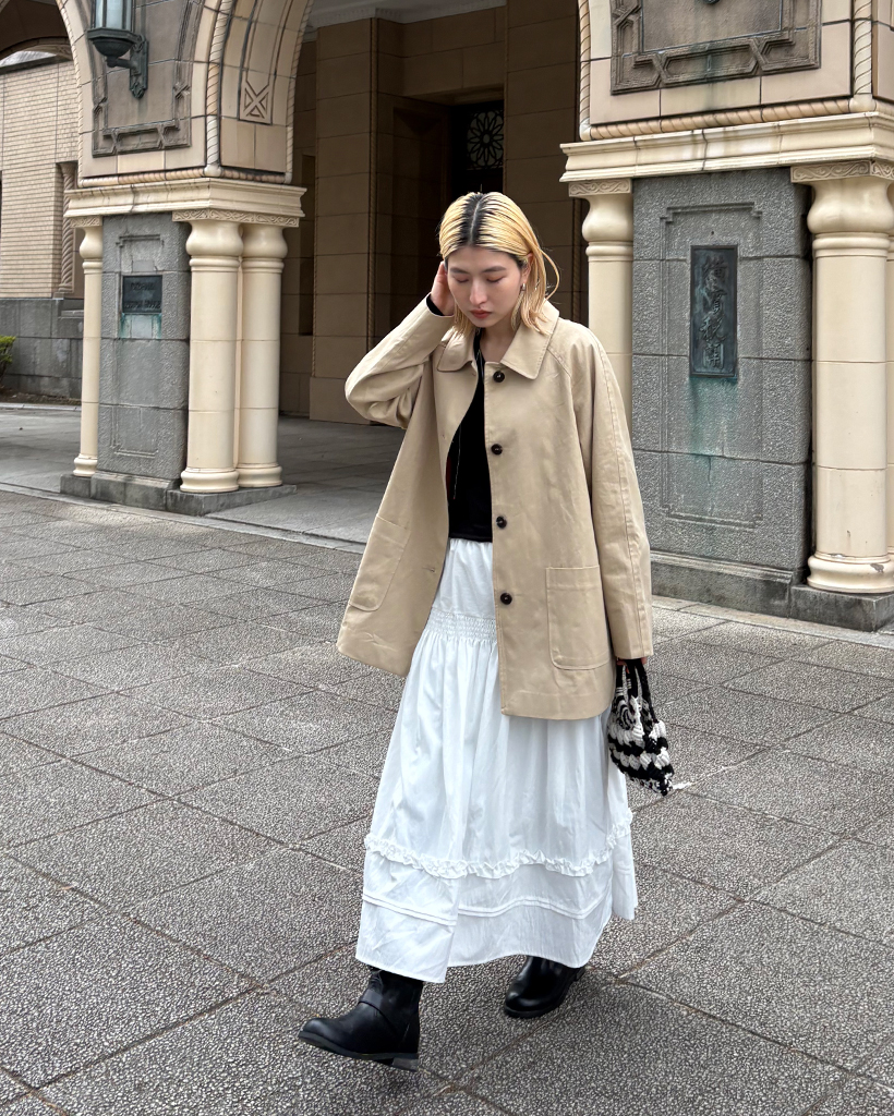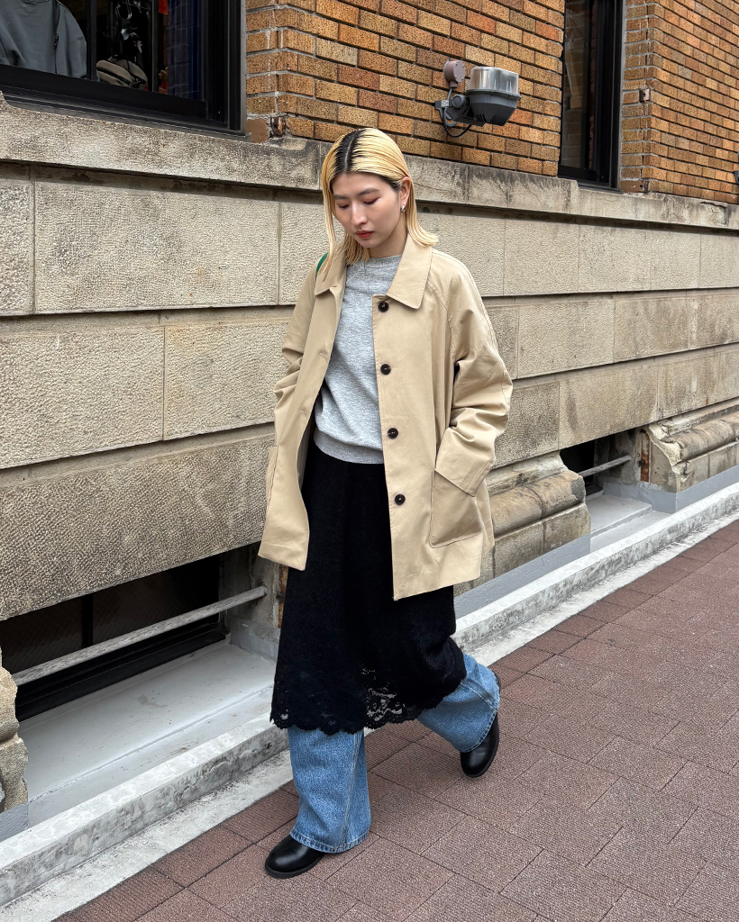 スクエアポケットシングルハーフトレンチコート