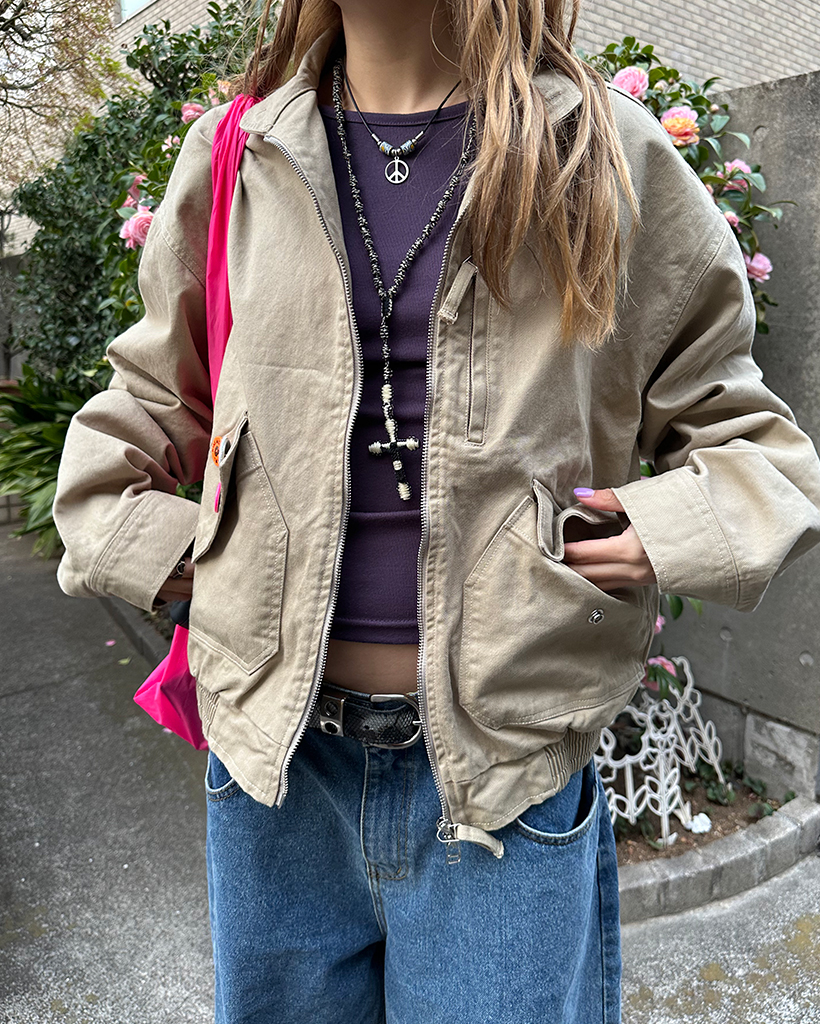 スタンドネックフラップダブルジップブルゾン