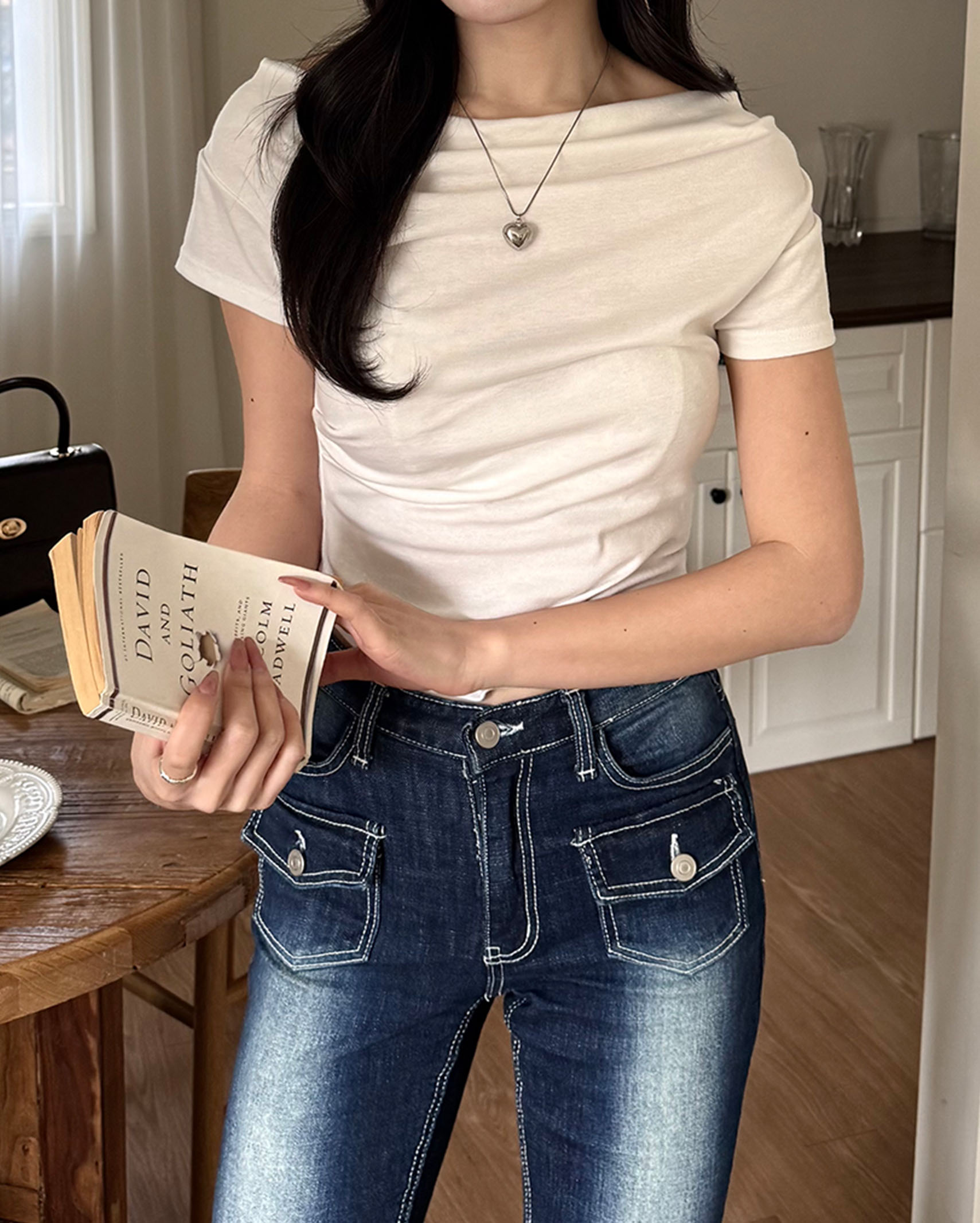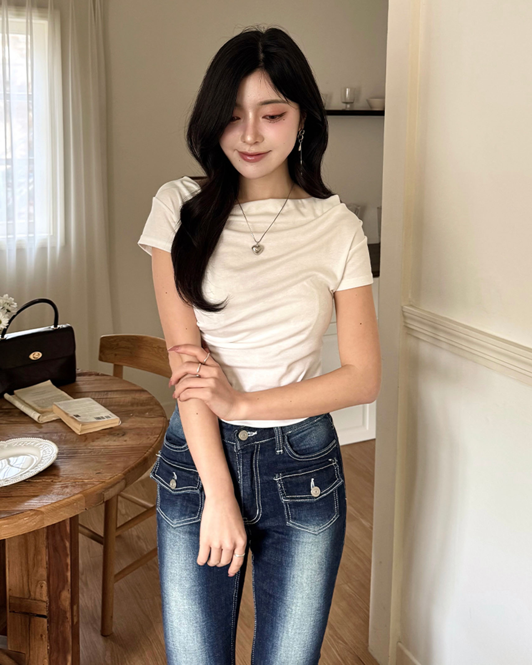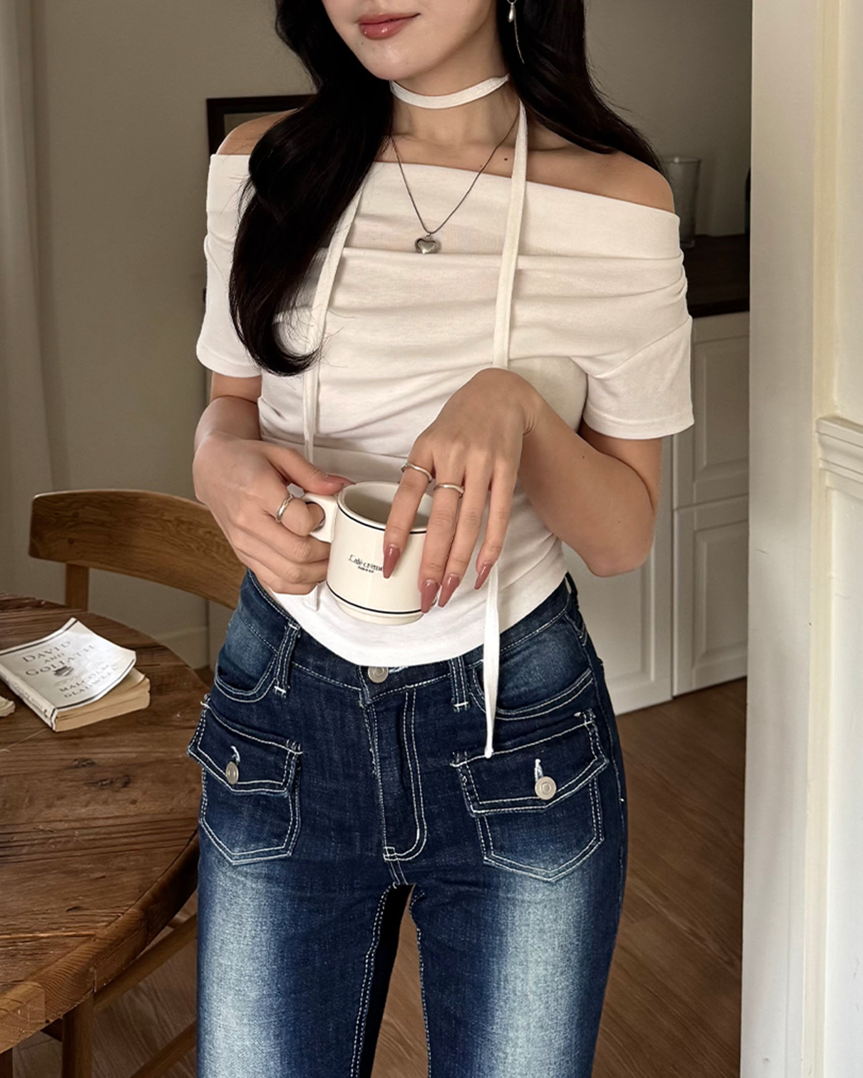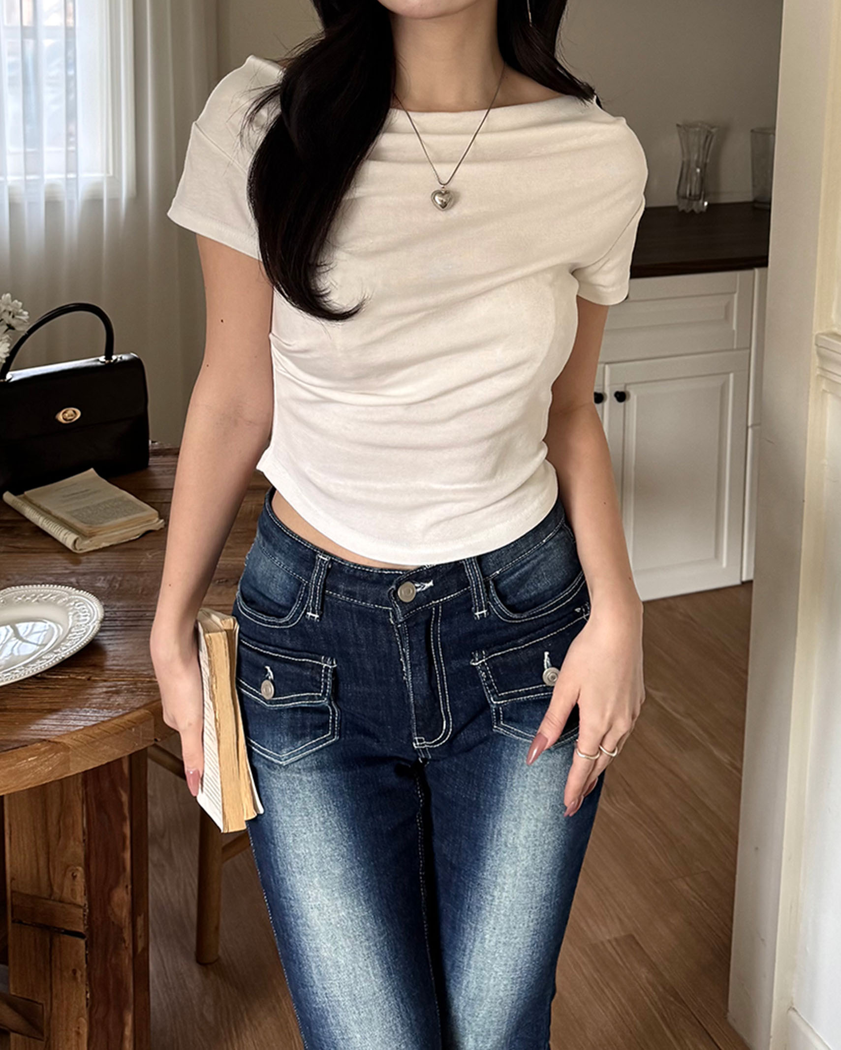 [8回再販](ORIGINAL) 3ウェイドレープネックTシャツ