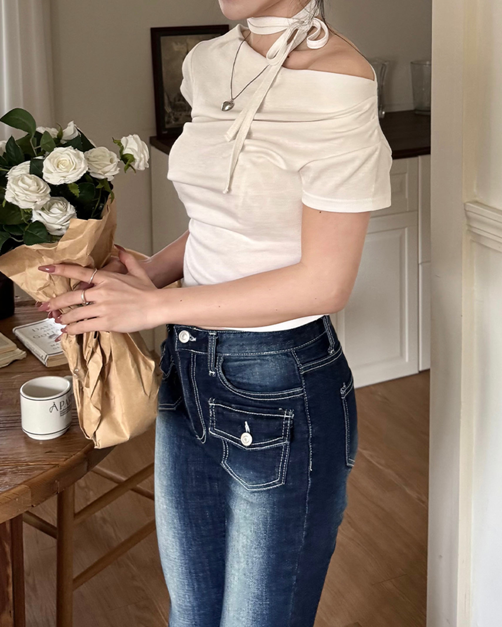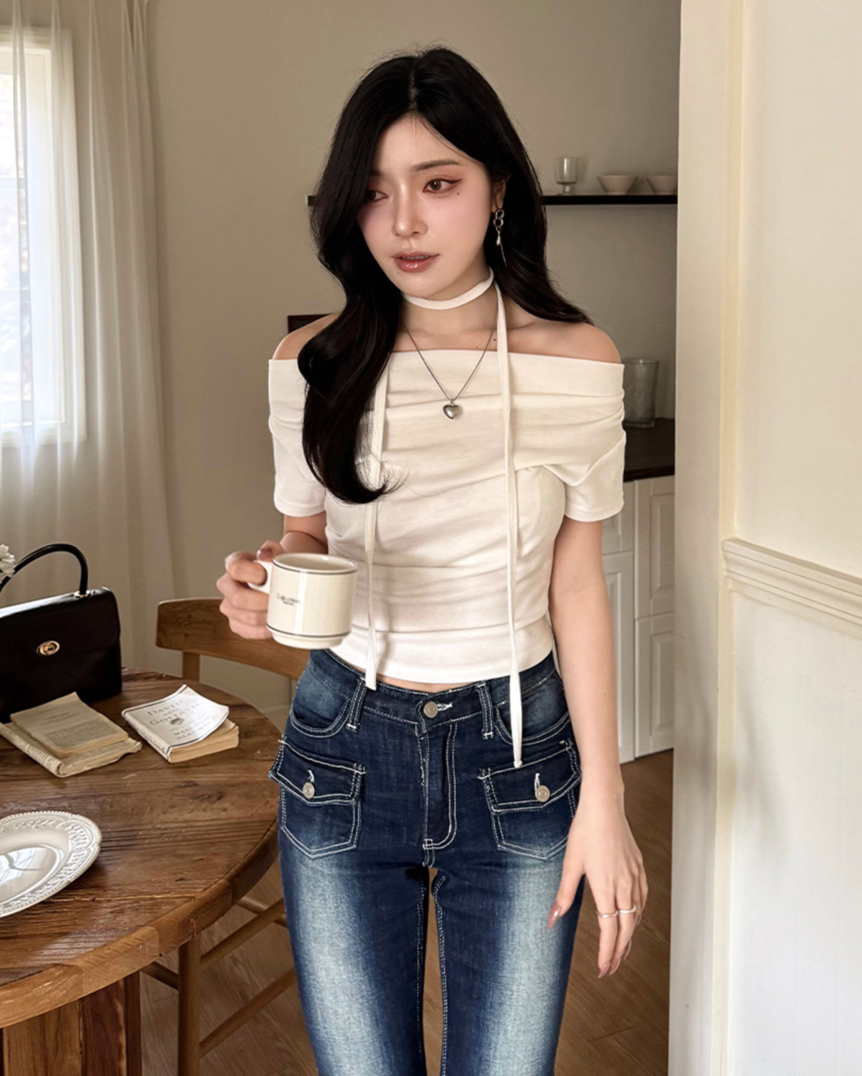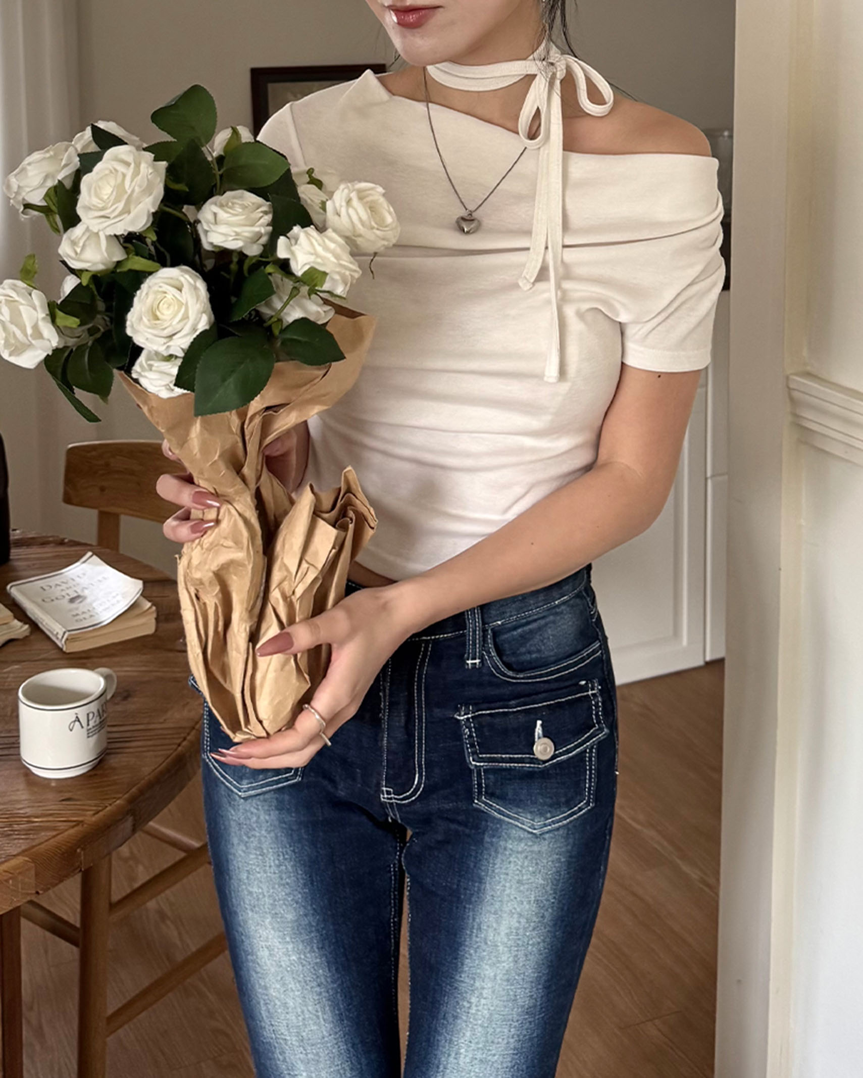 [8回再販](ORIGINAL) 3ウェイドレープネックTシャツ