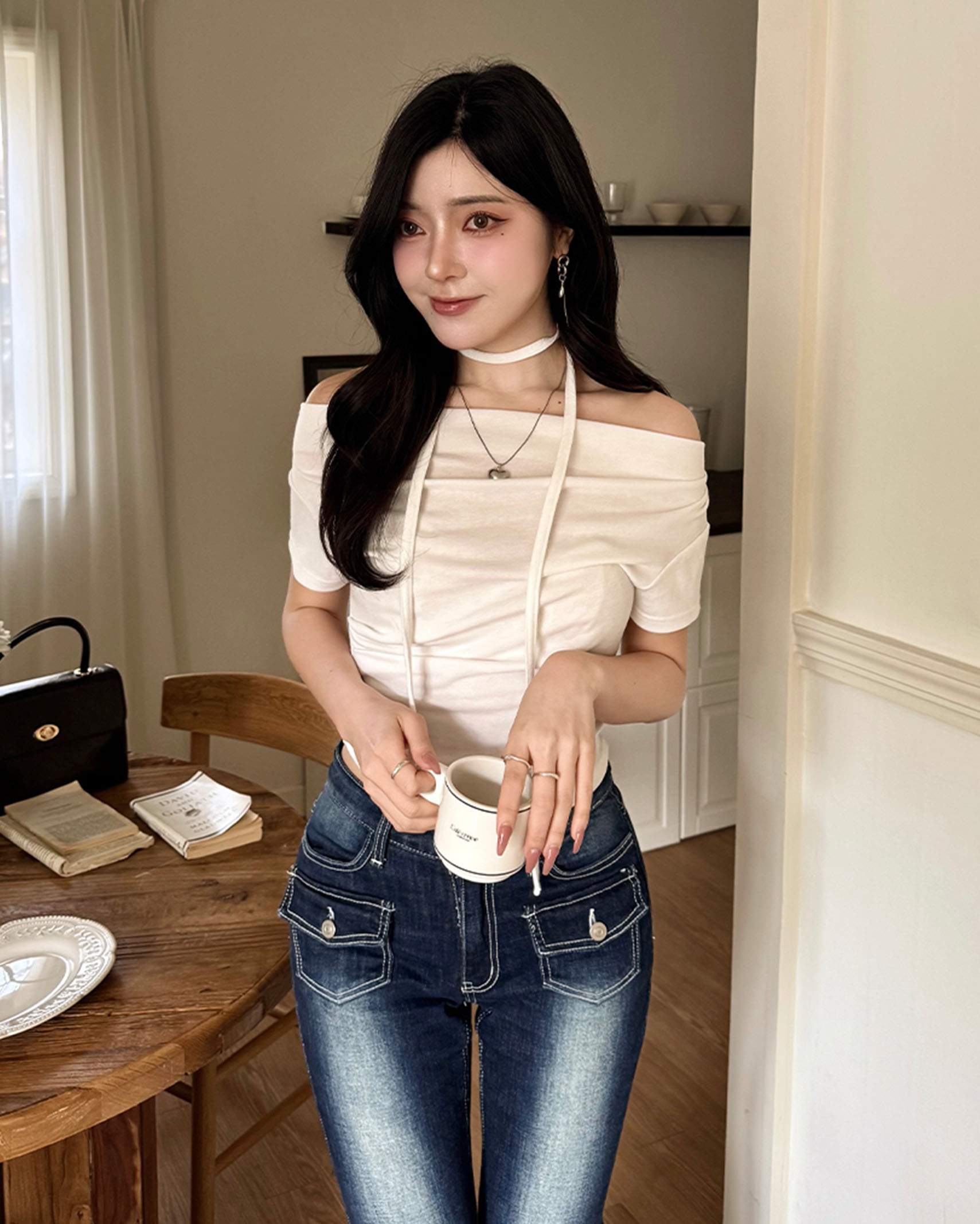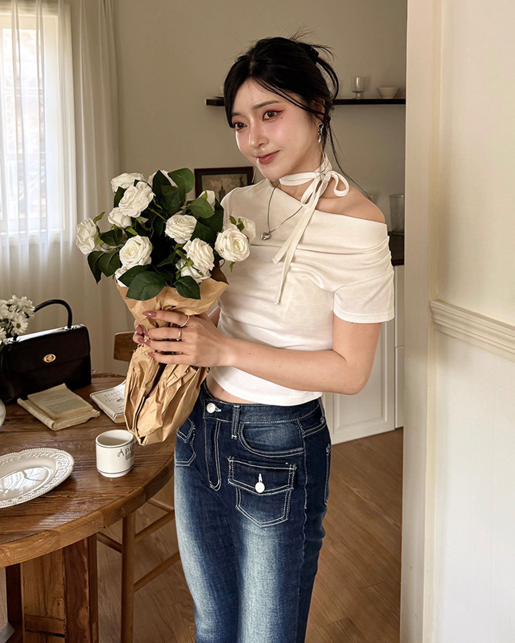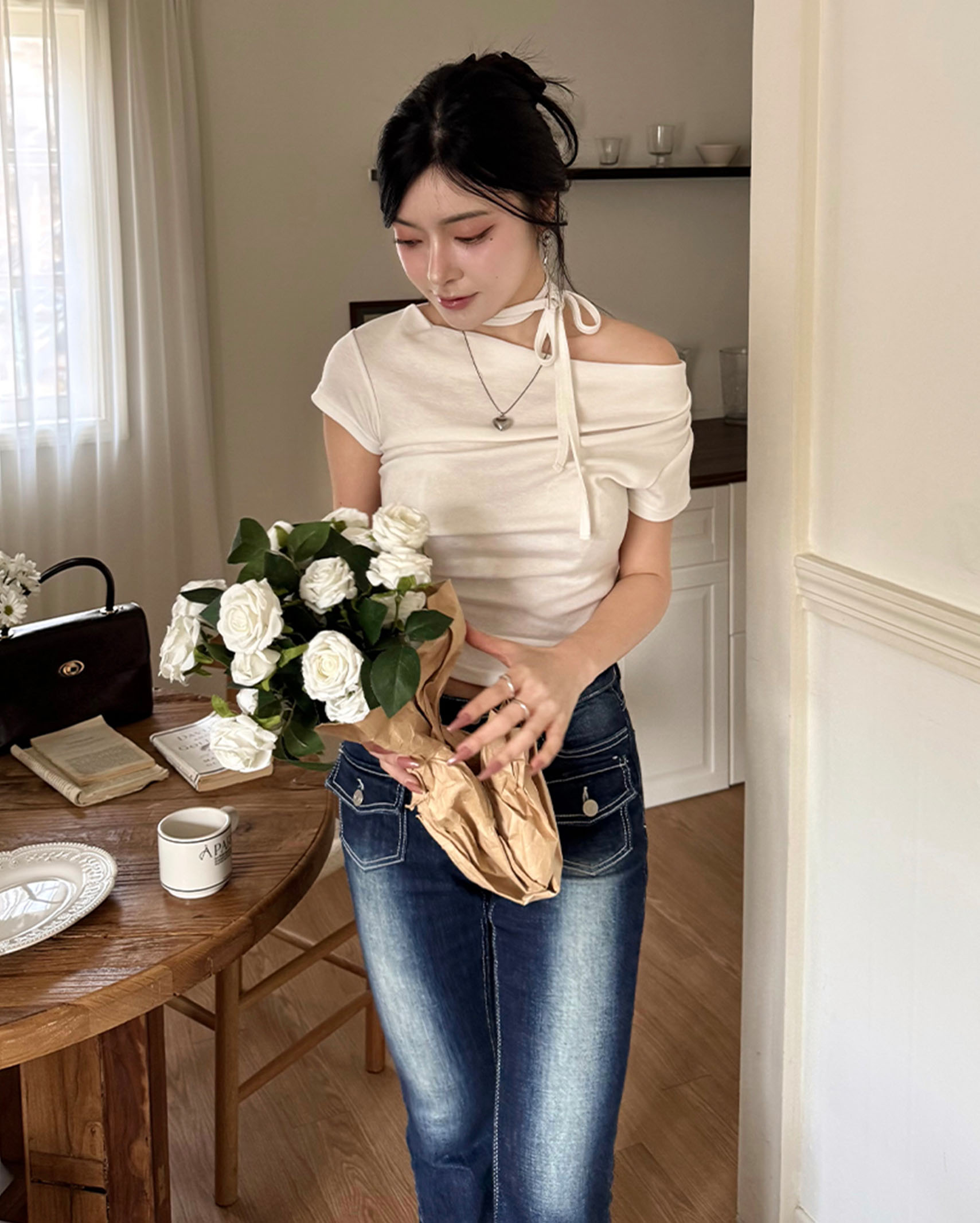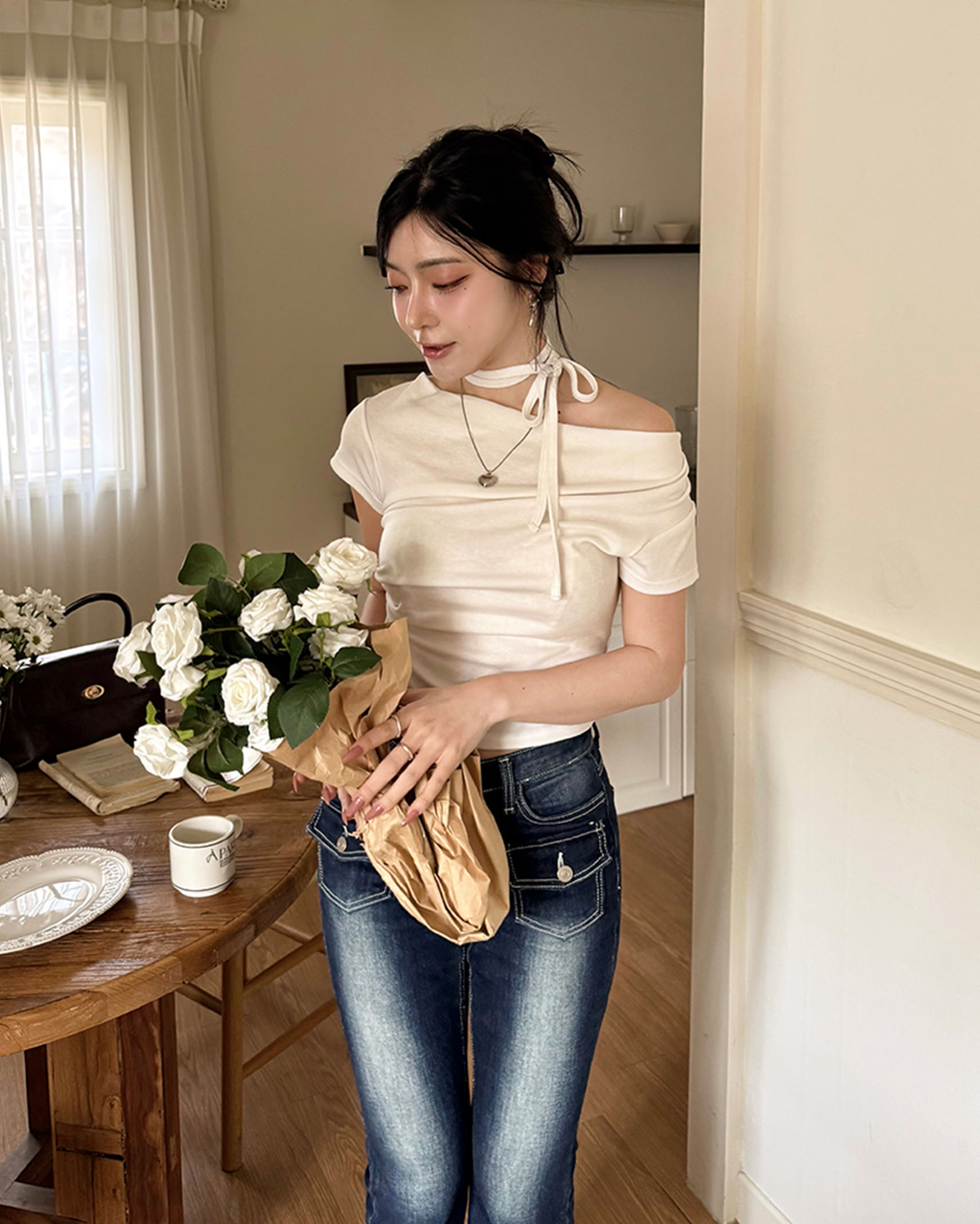 [8回再販](ORIGINAL) 3ウェイドレープネックTシャツ