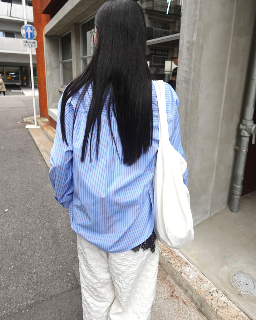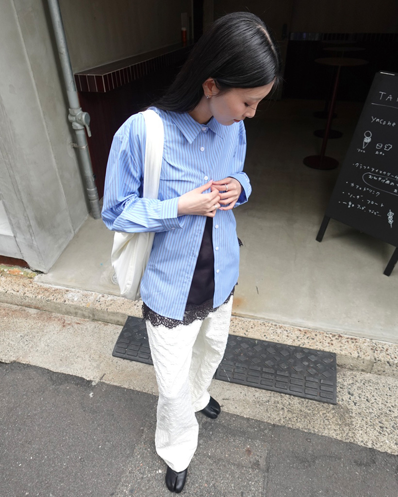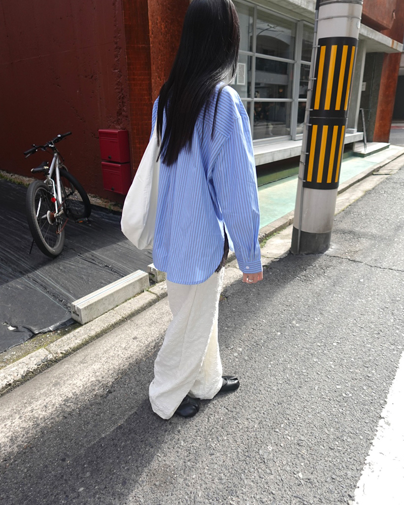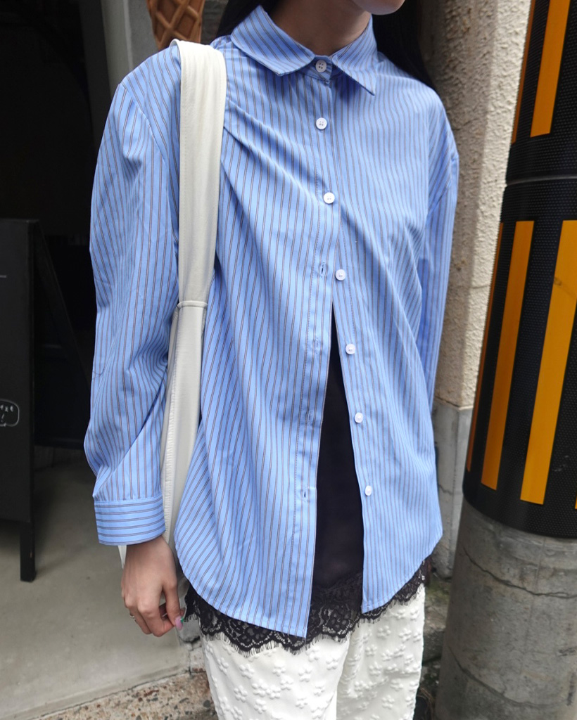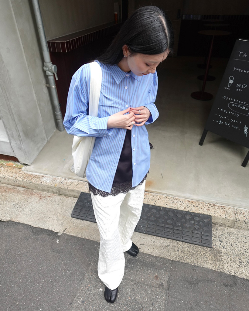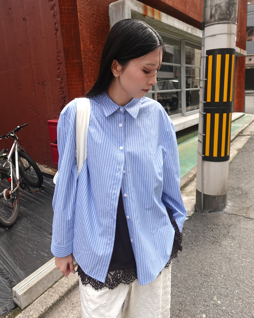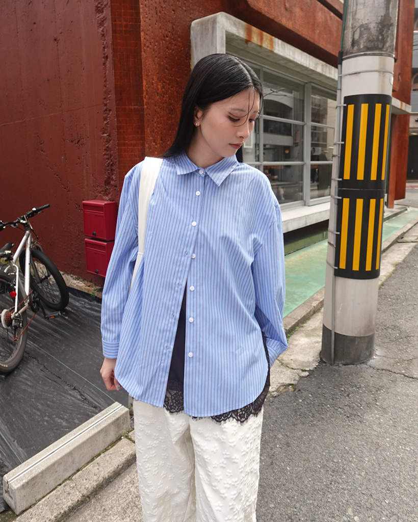 ペンシルダブルストライプサイドラウンドスリットシャツ