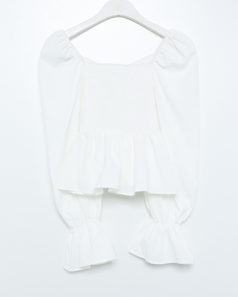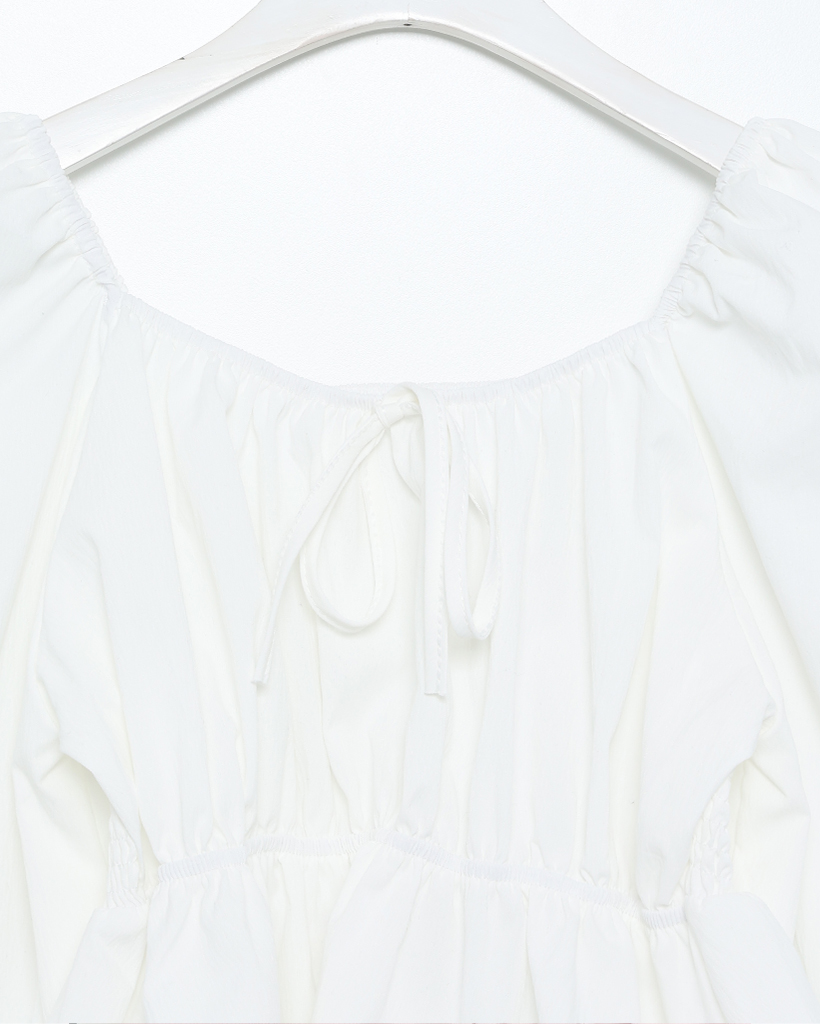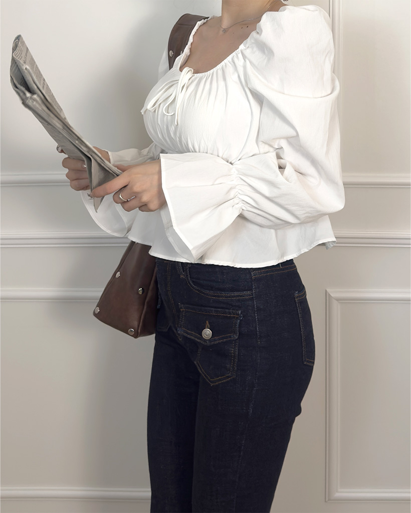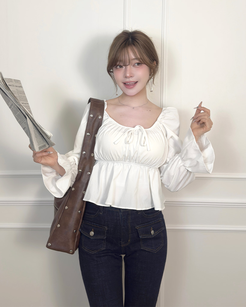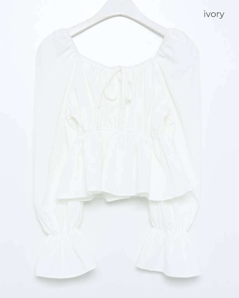 リボンギャザーパフスリーブブラウス