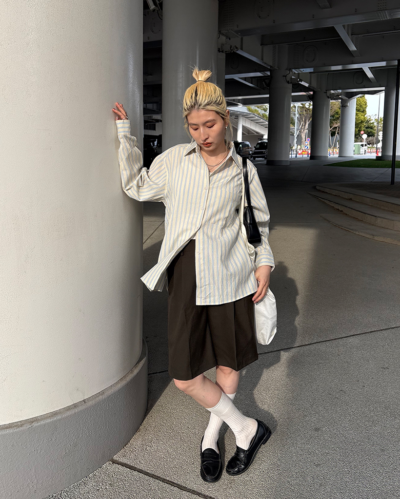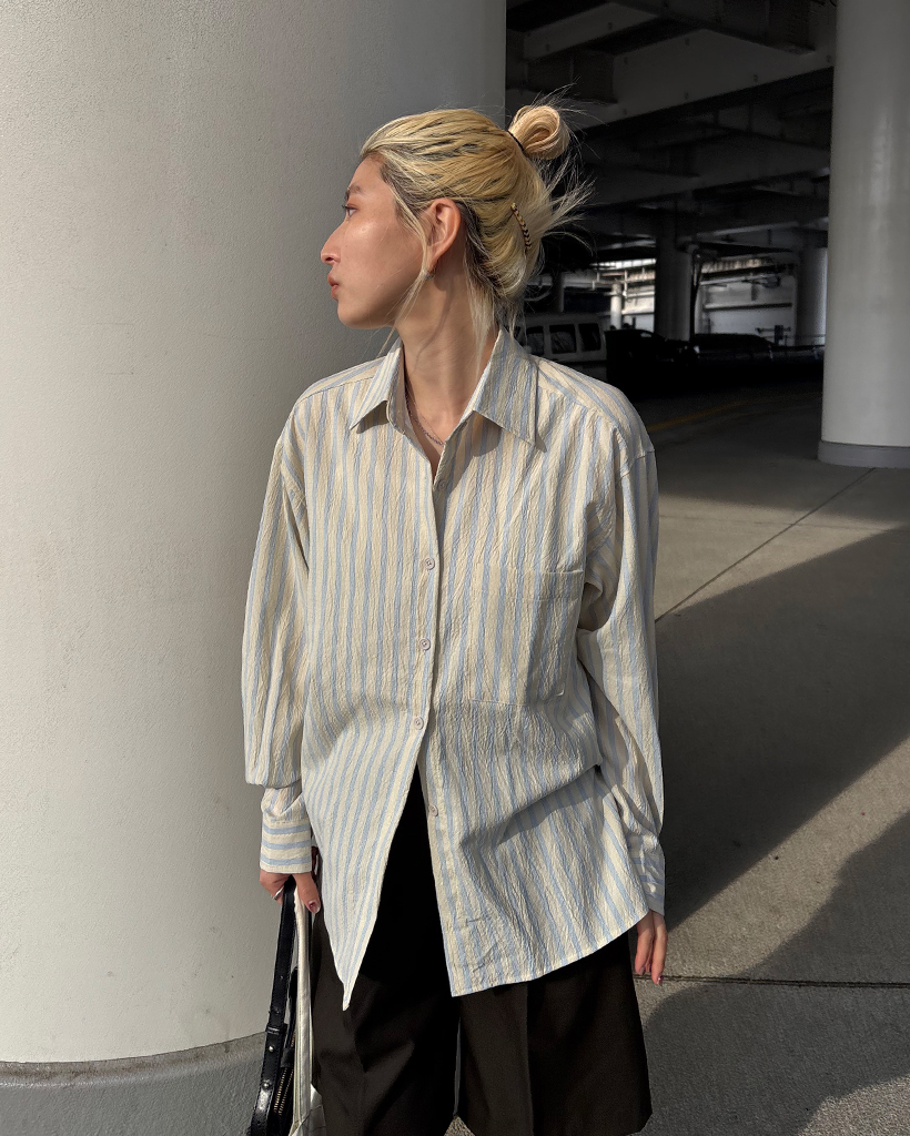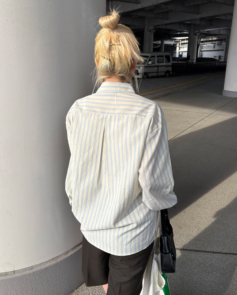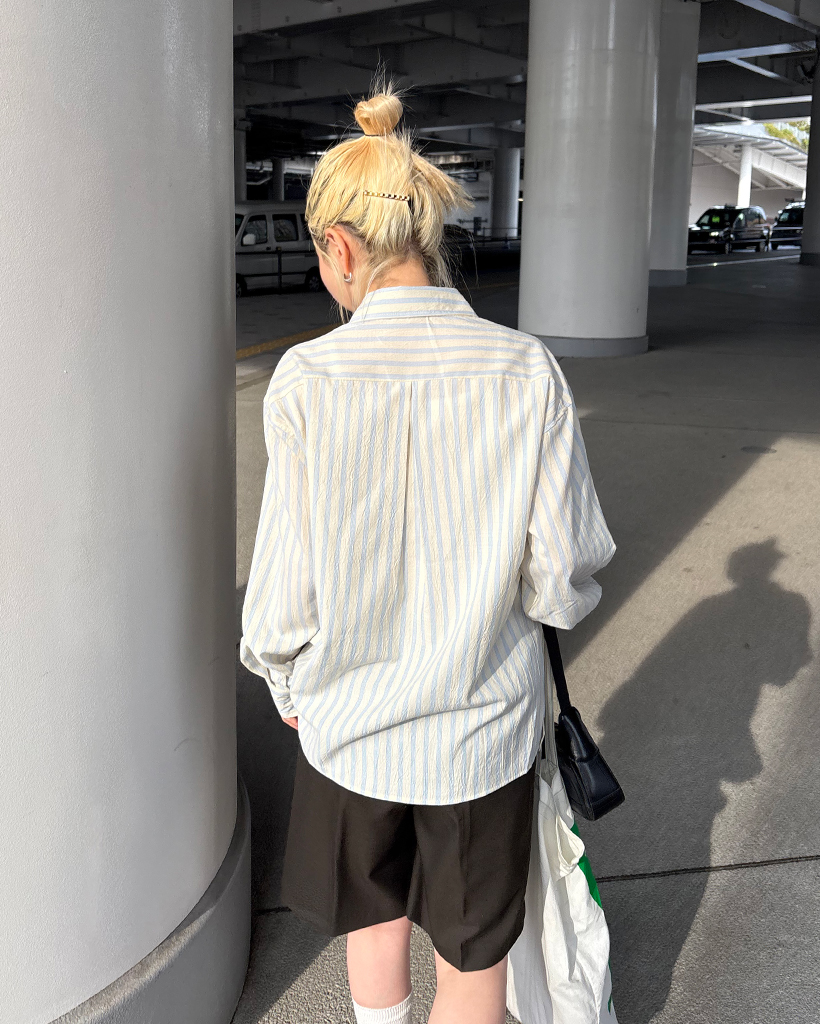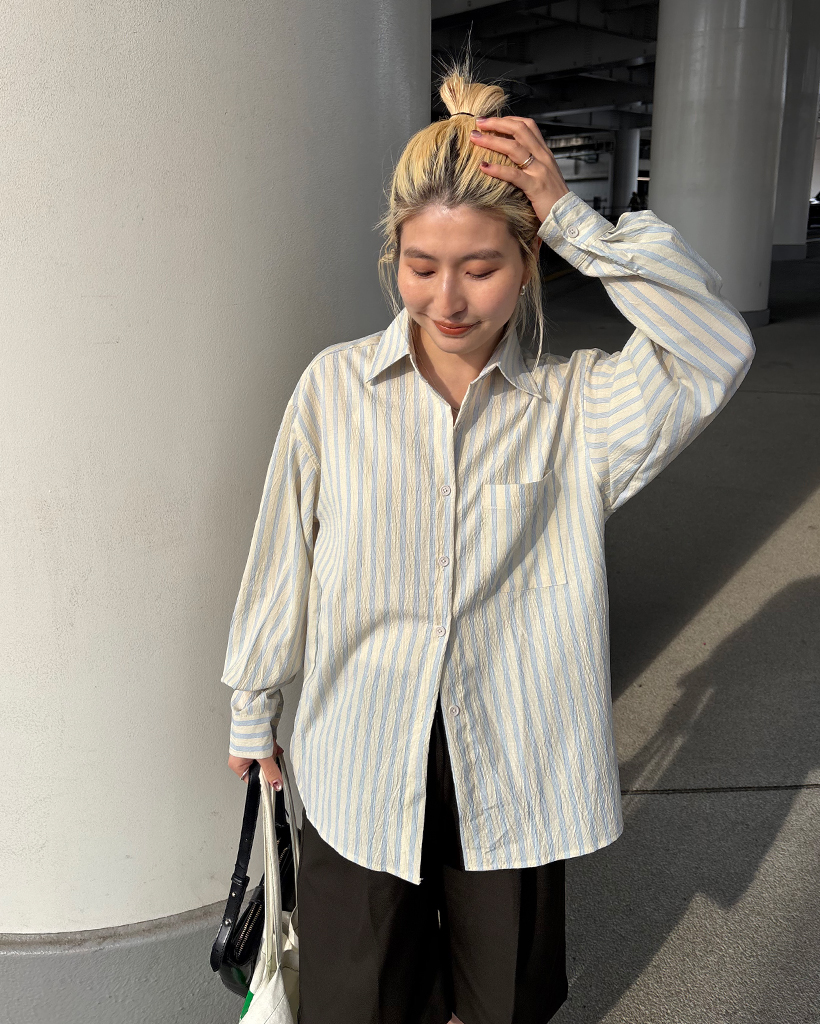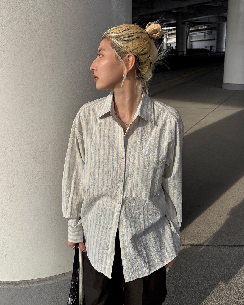 ダブルストライプリンクルルーズシャツ