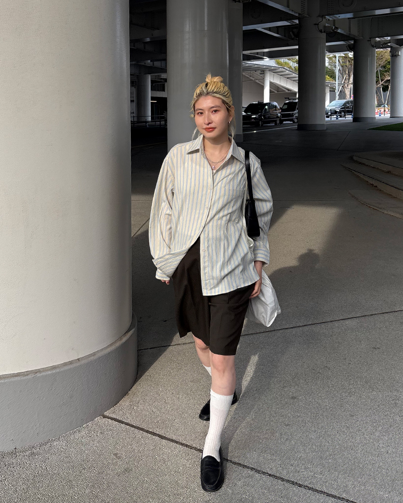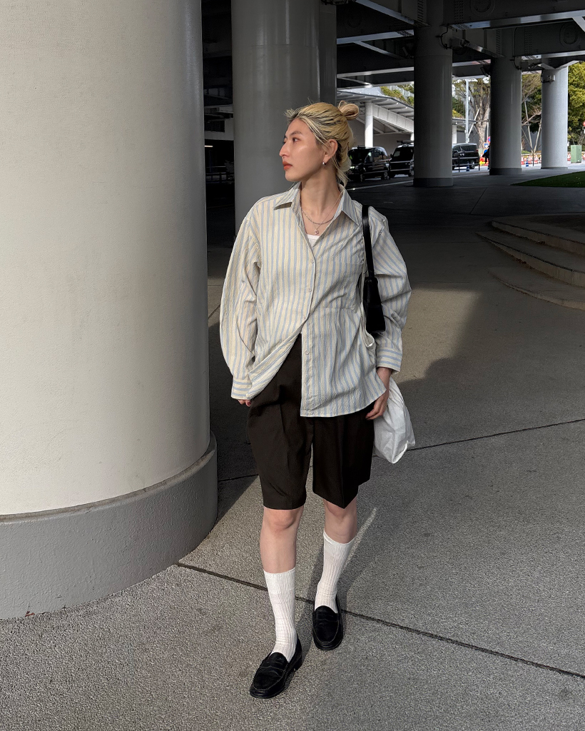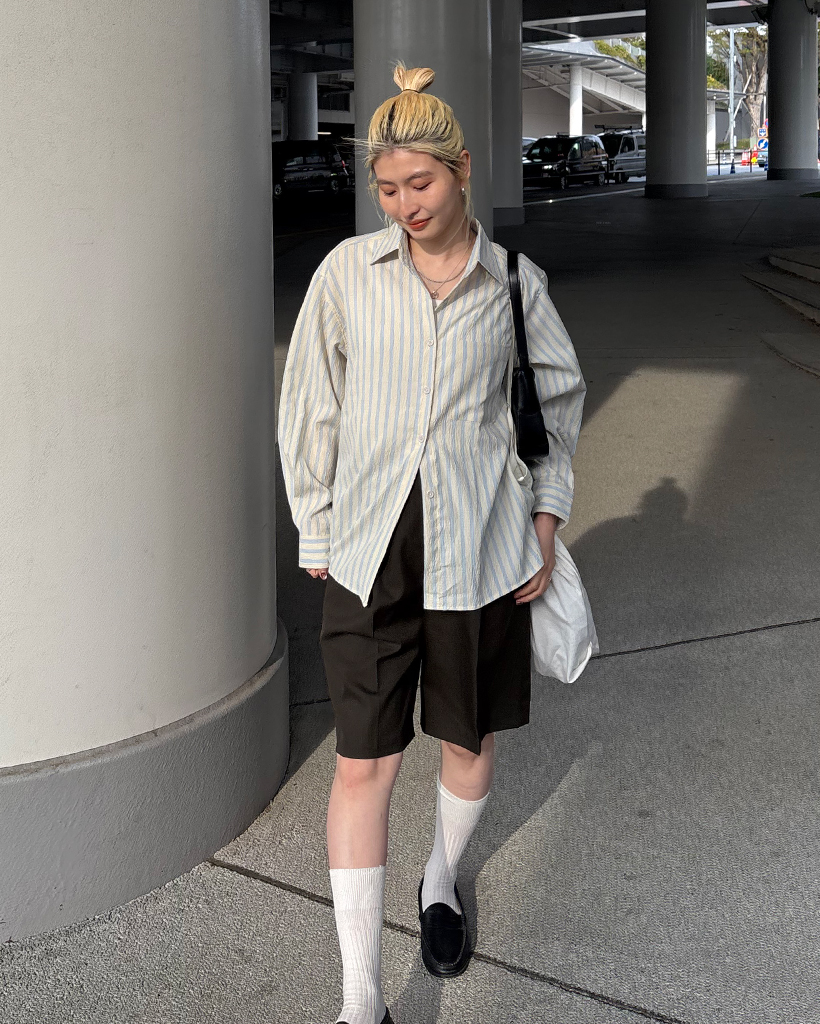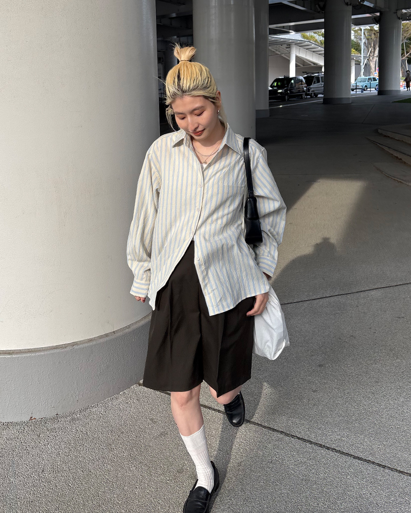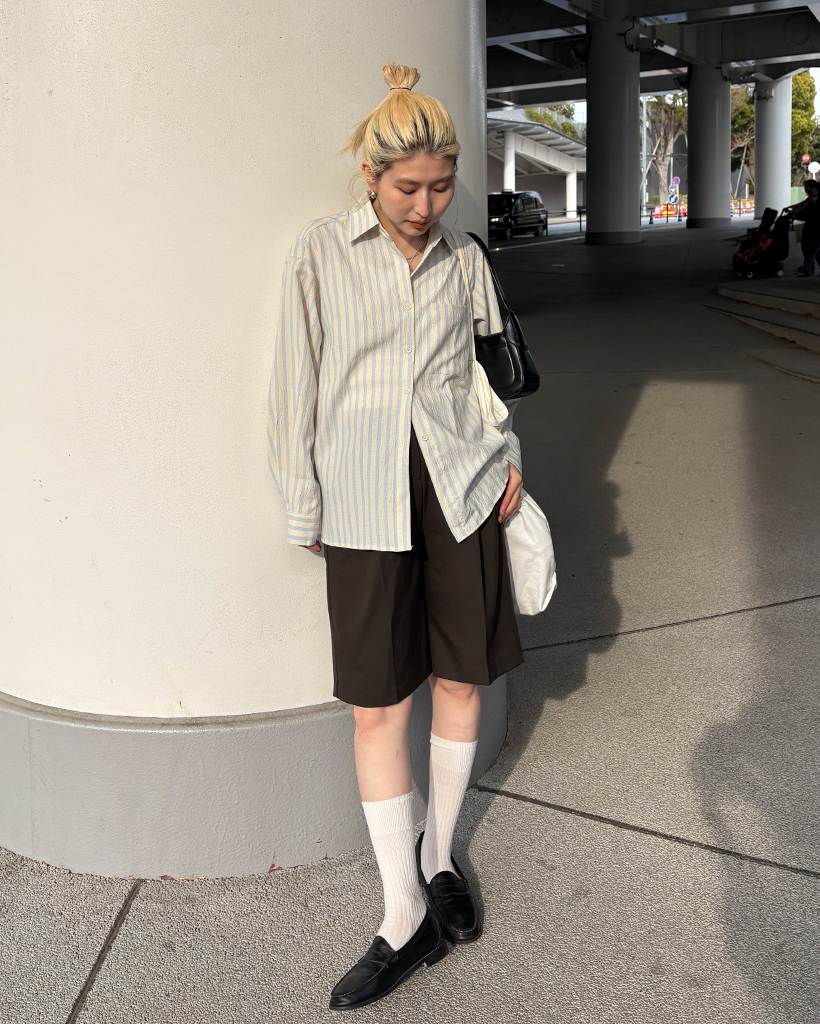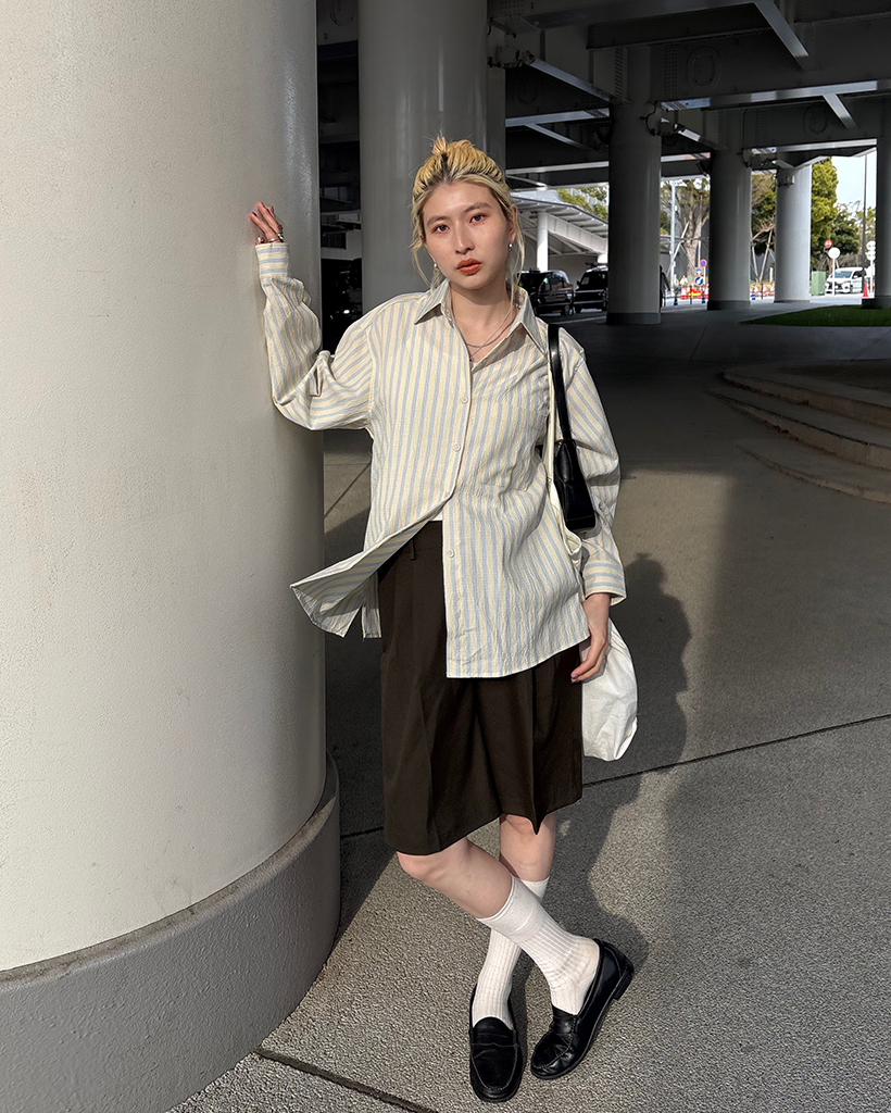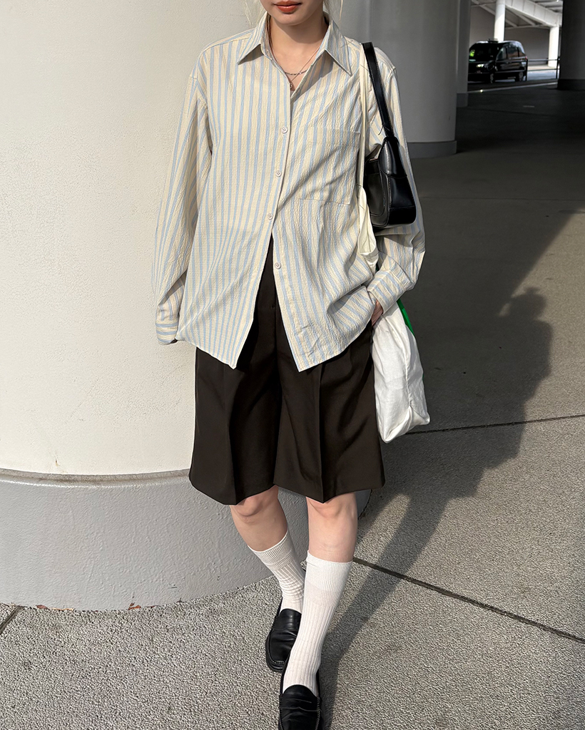 ダブルストライプリンクルルーズシャツ
