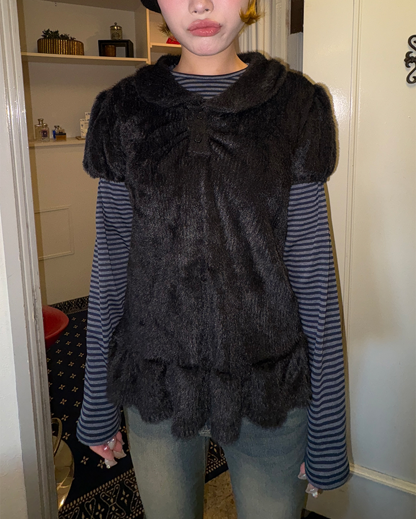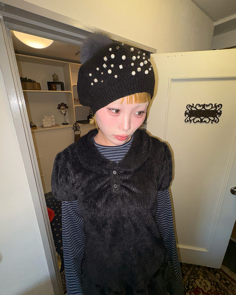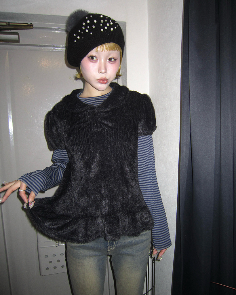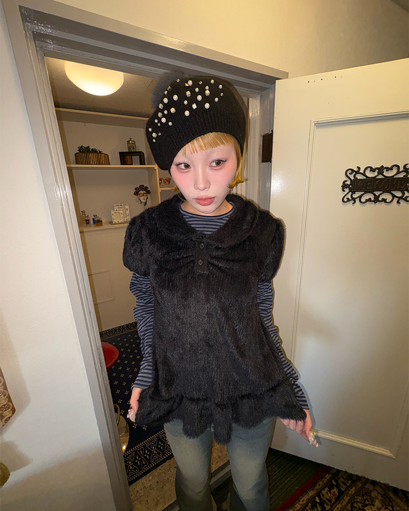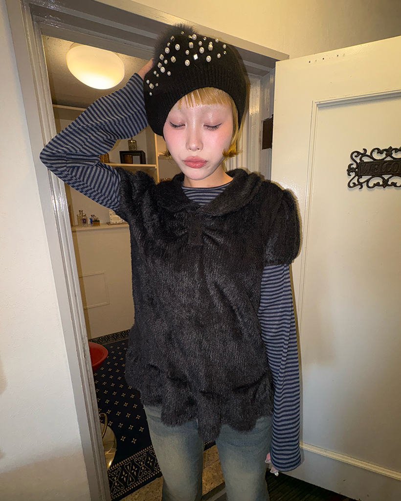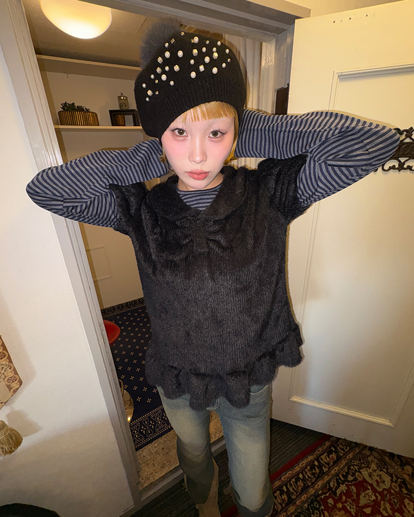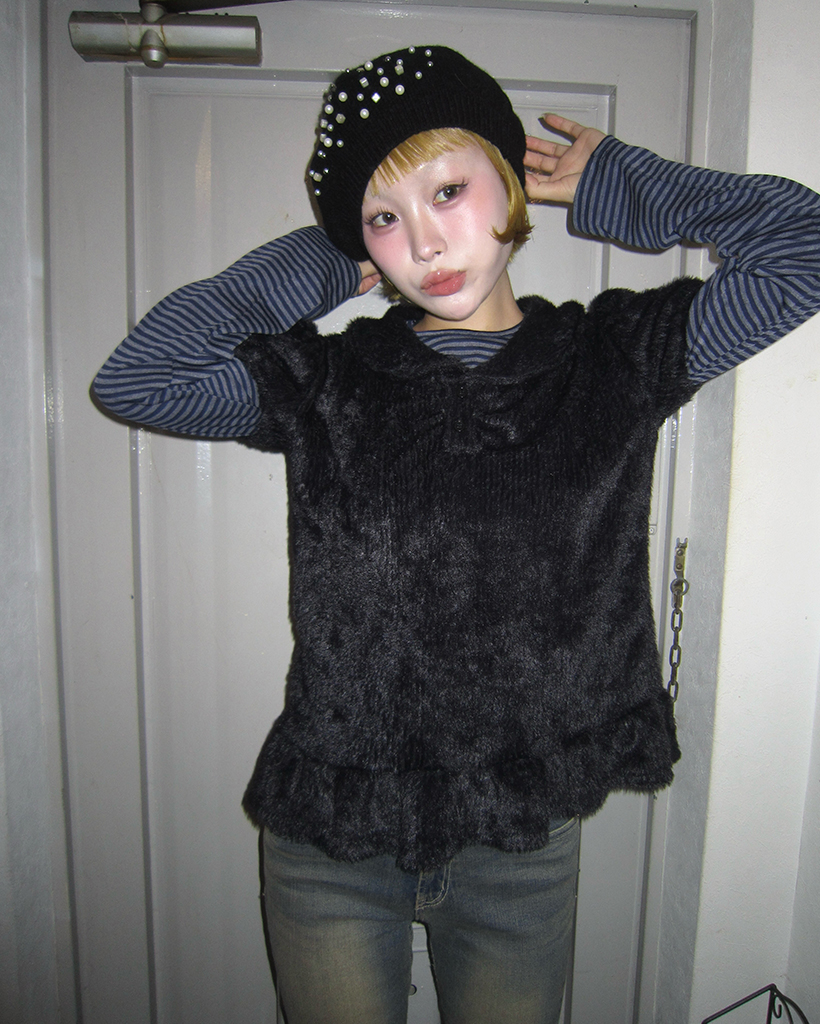 モヘアポロネックパフスリーブペプラム