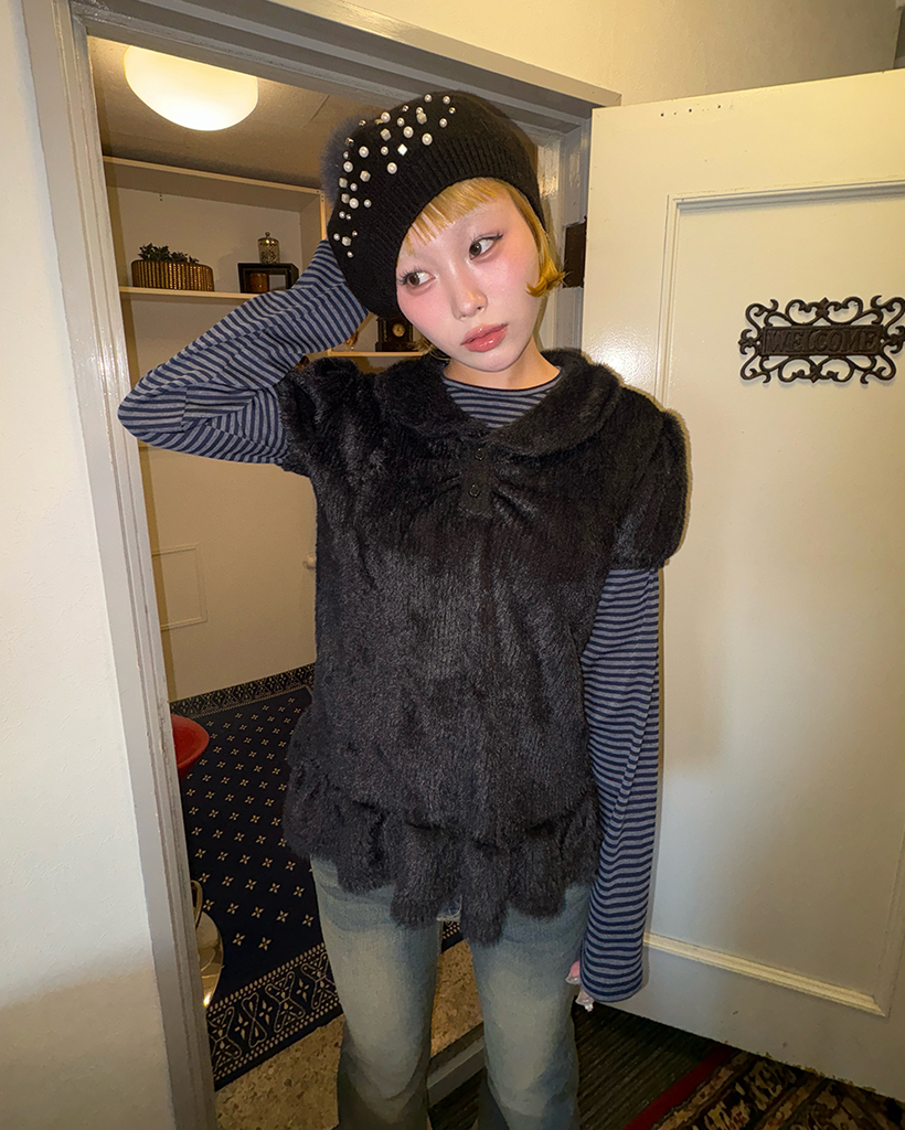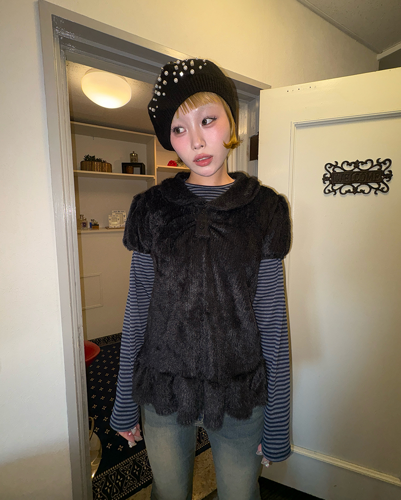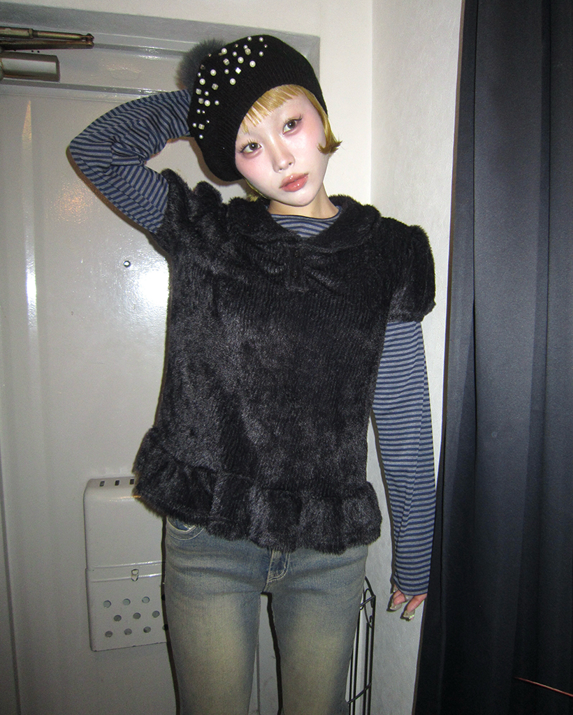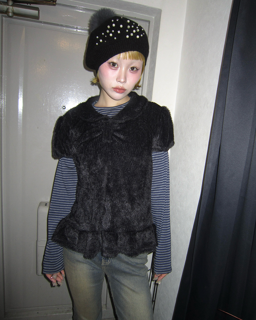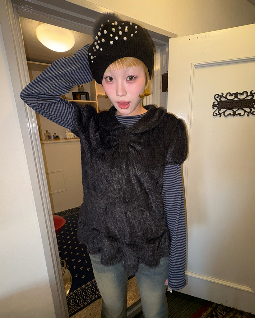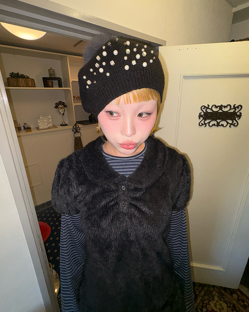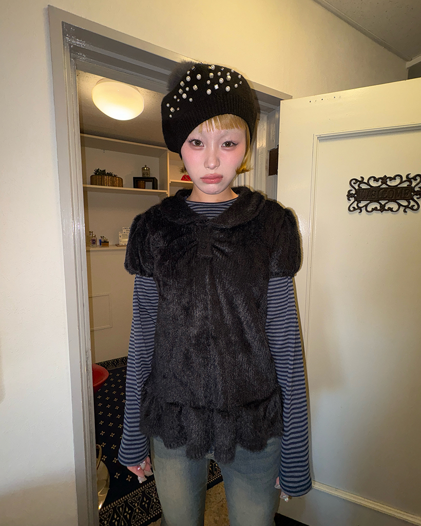 モヘアポロネックパフスリーブペプラム