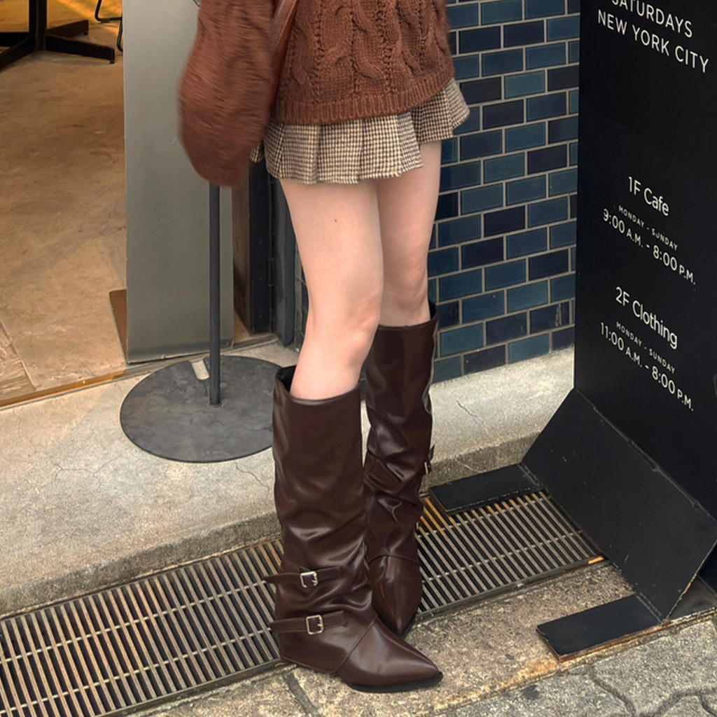 バックルロングブーツ