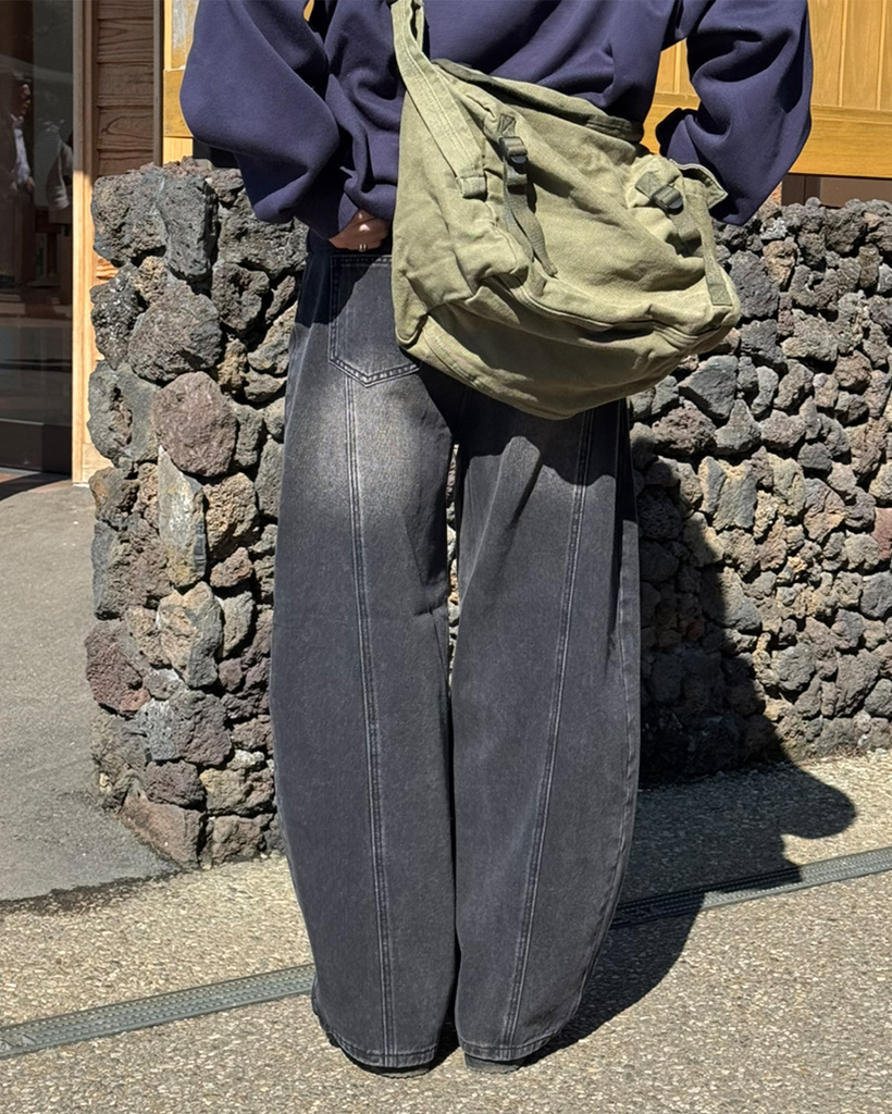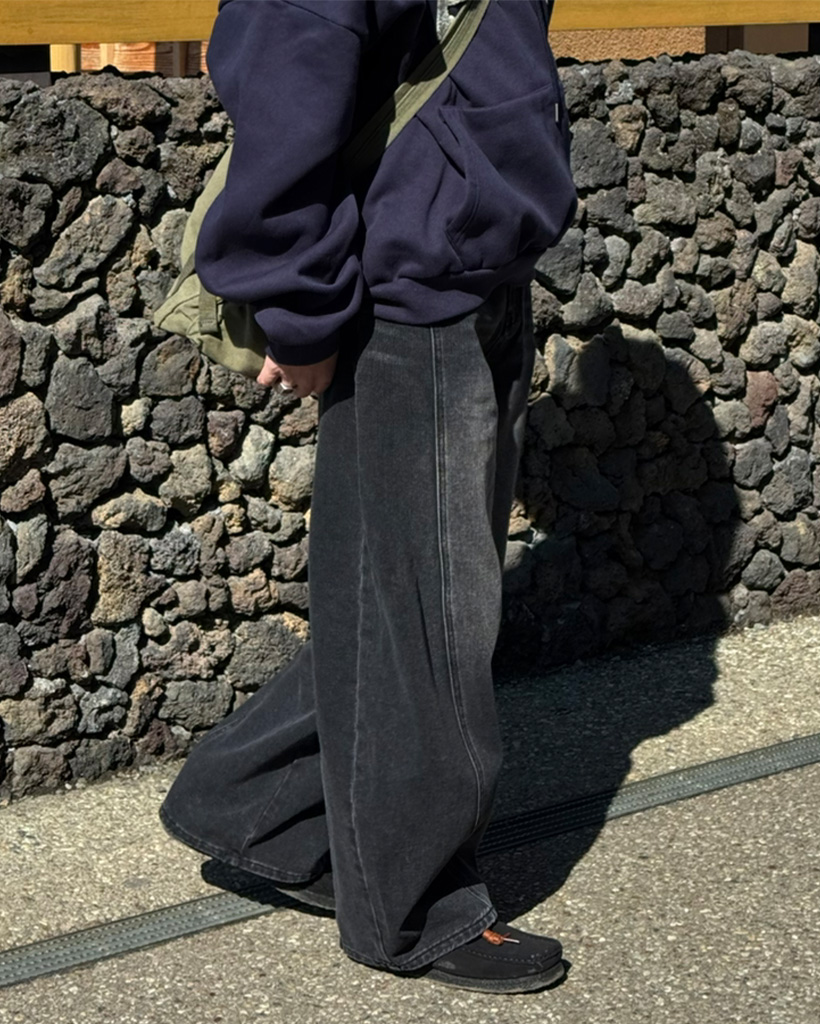 (ユニセックス) バルーンフィットウォッシュデニムパンツ