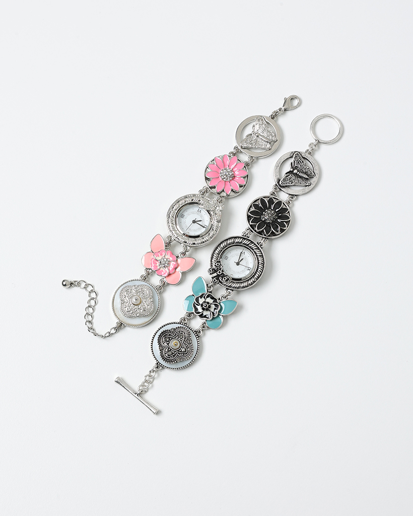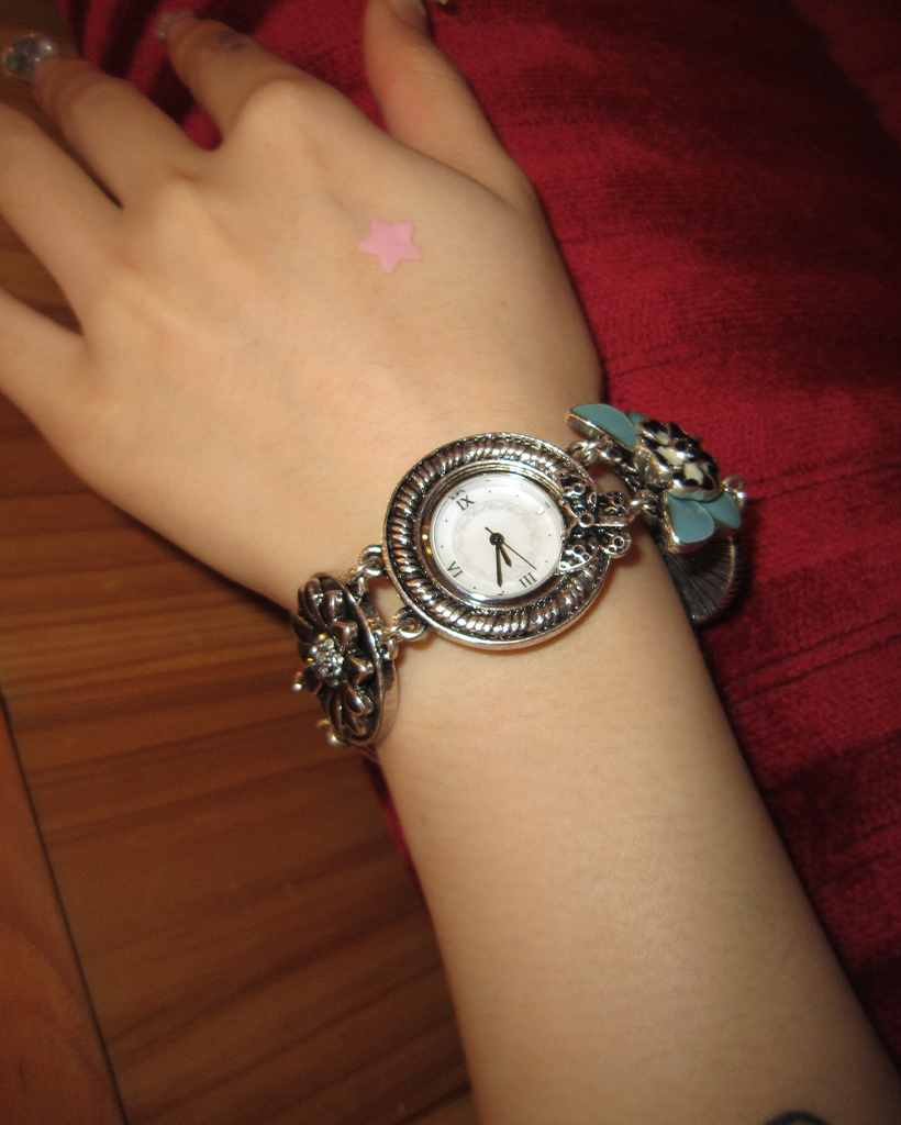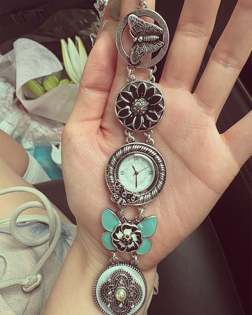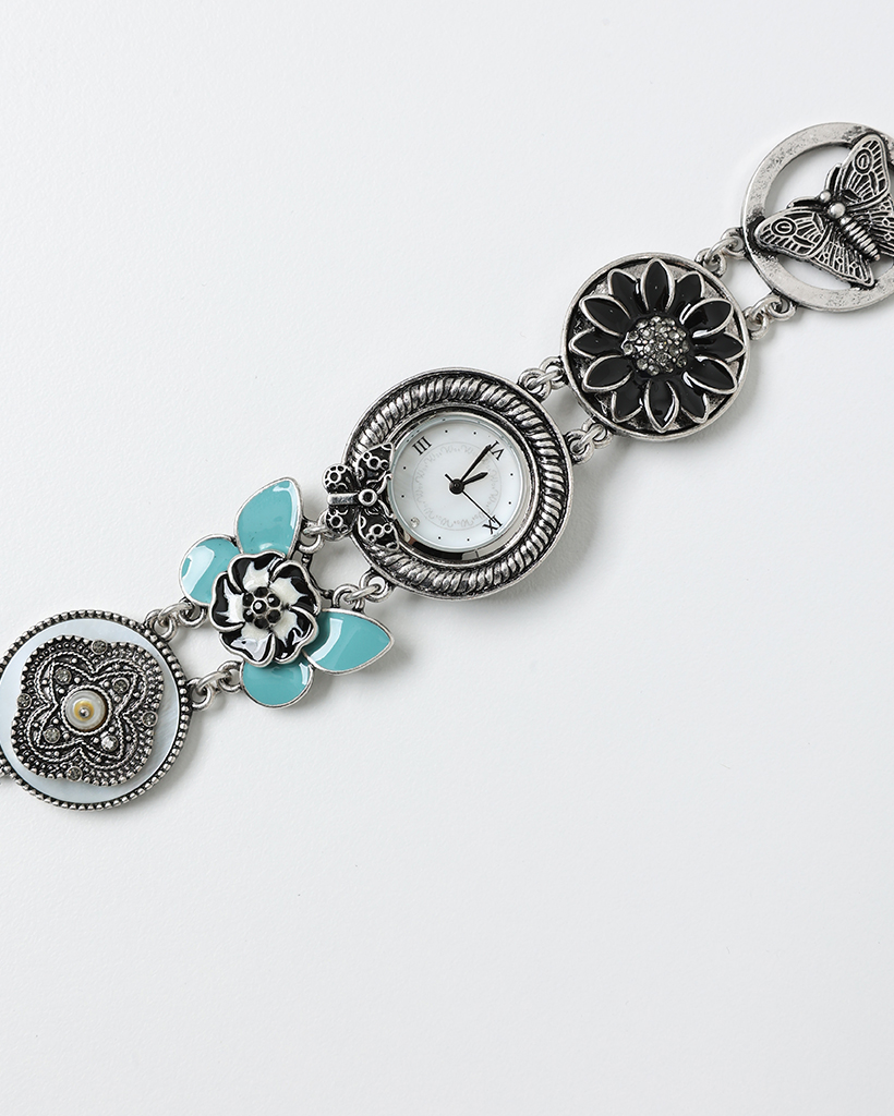 ミントフラワーアンティークマンテルラウンドハンドウォッチ