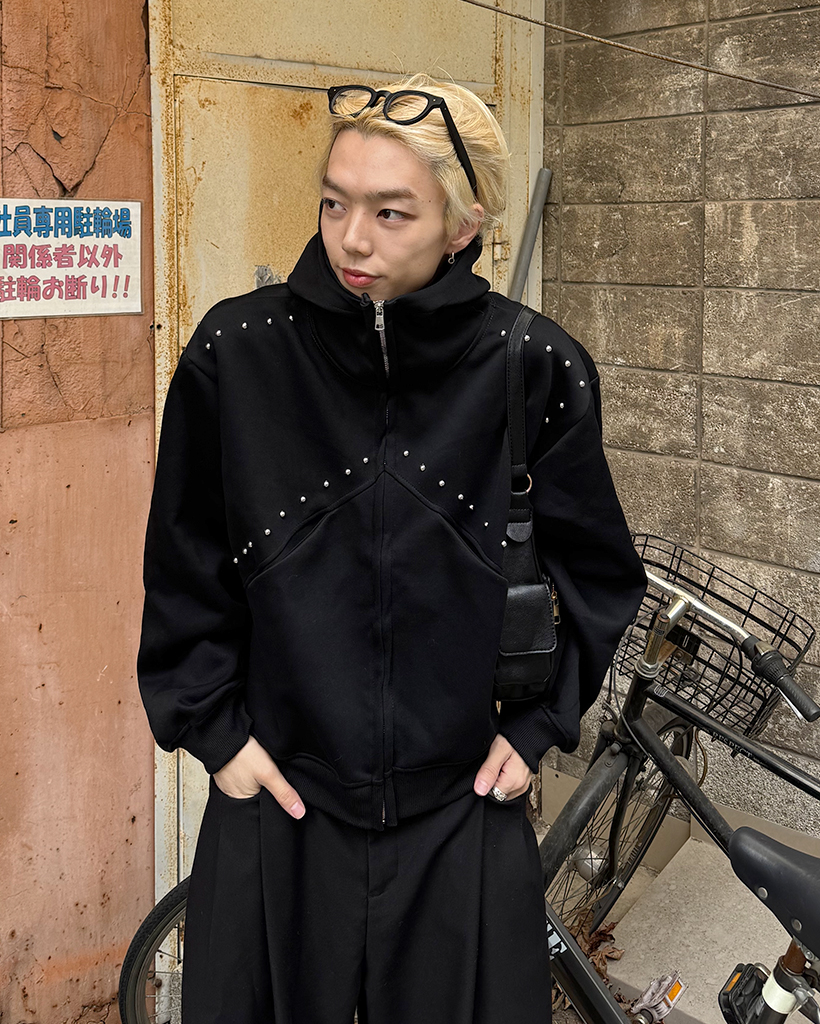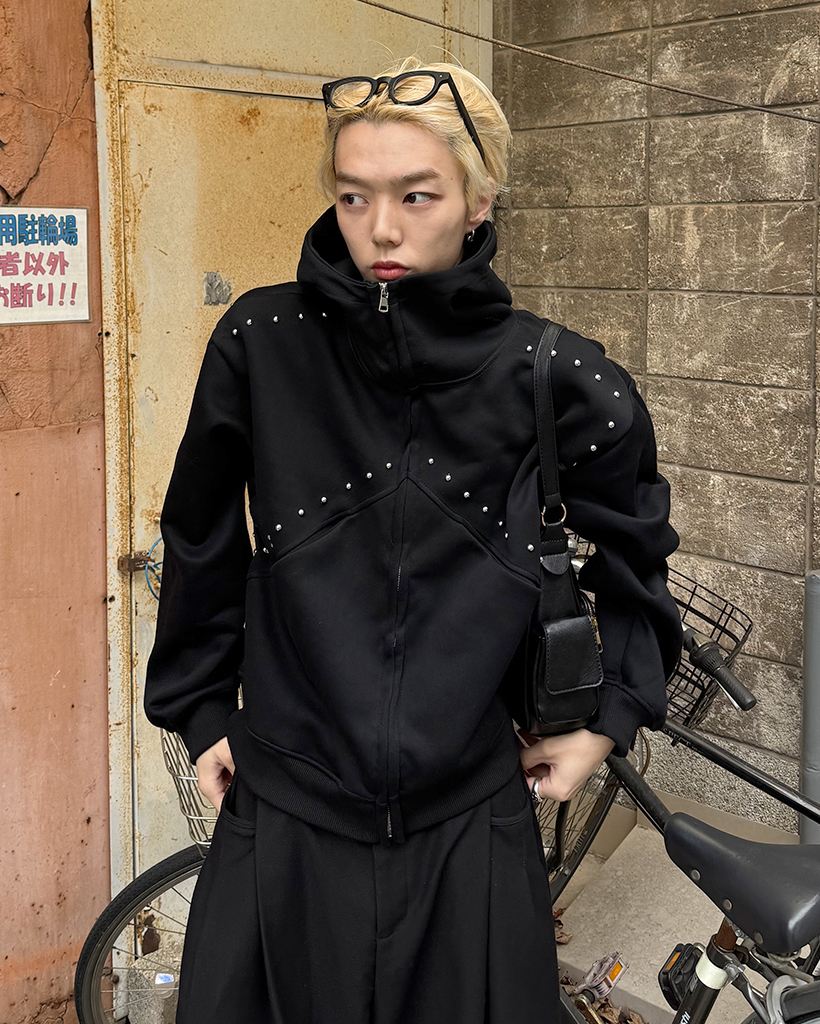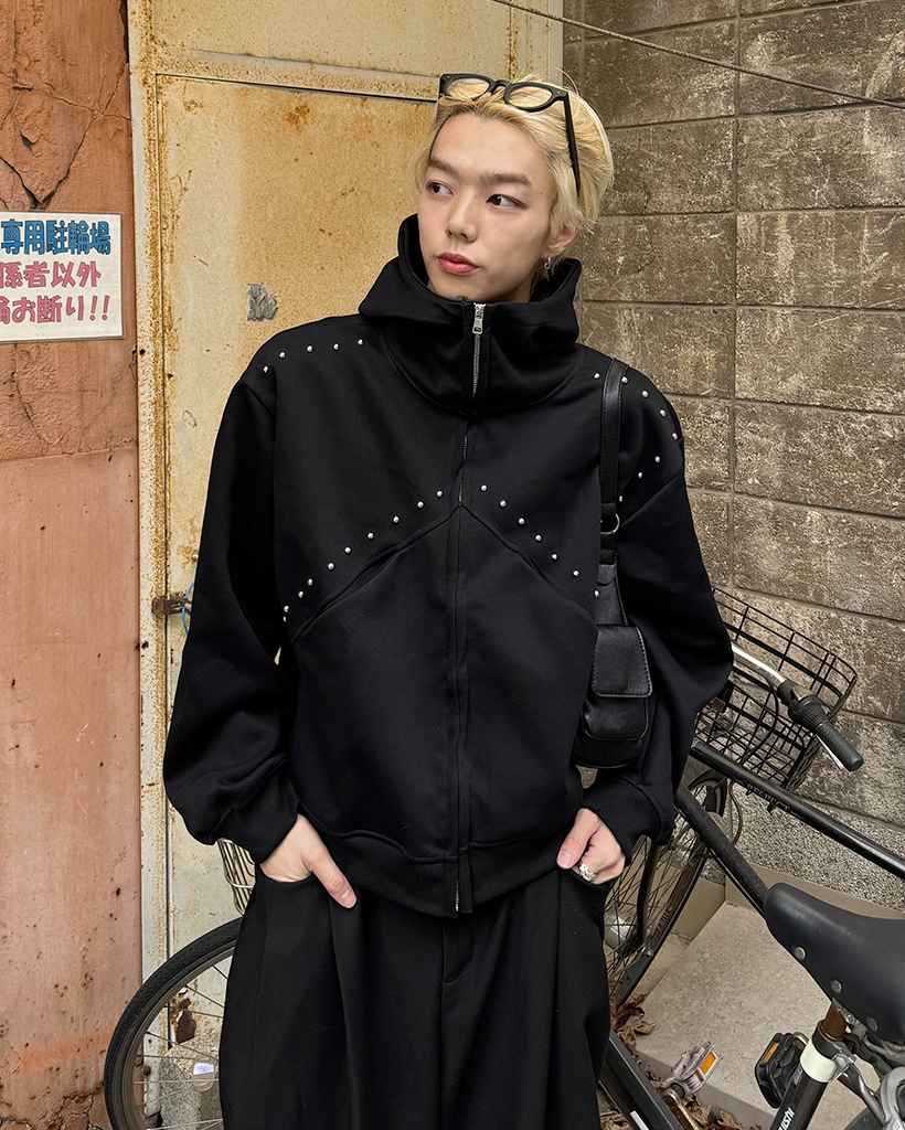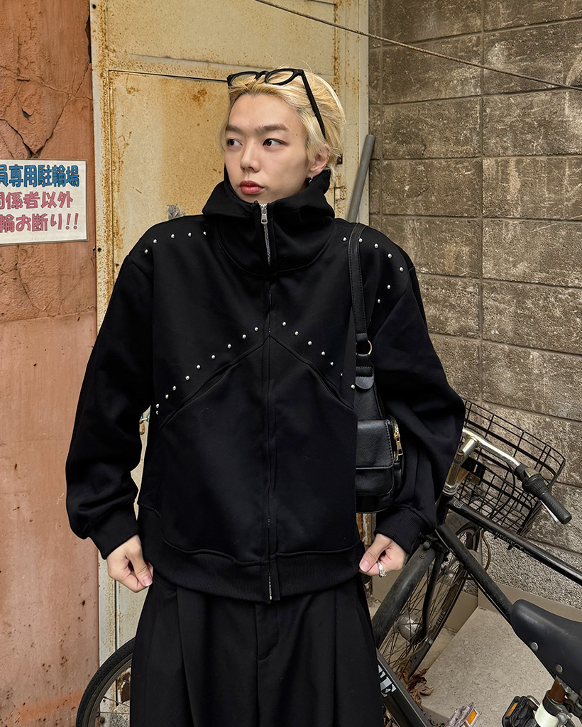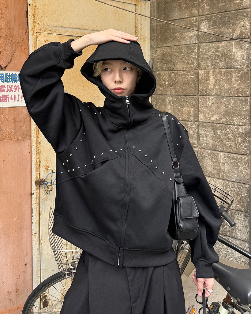 (ユニセックス)ルーズフィットスタッズポイントパーカー