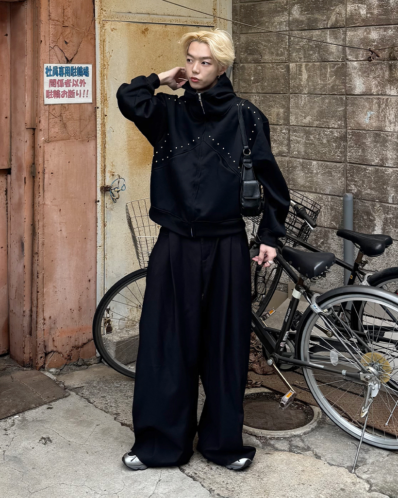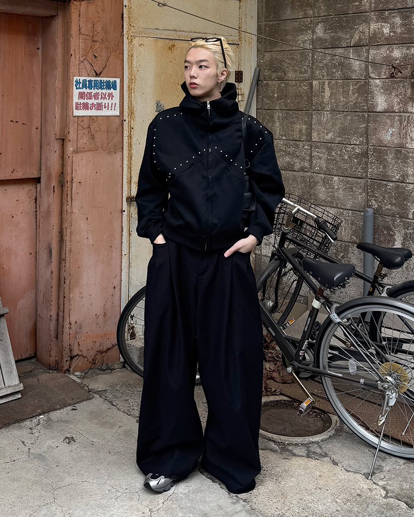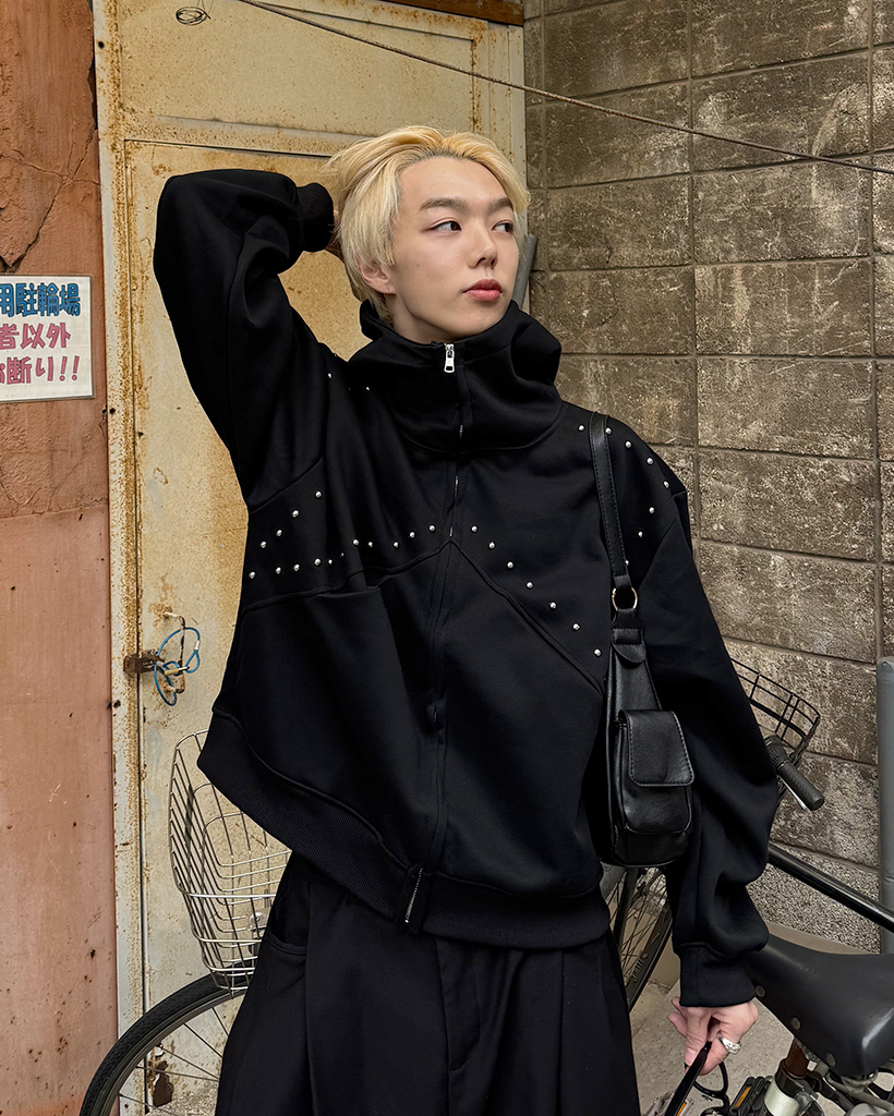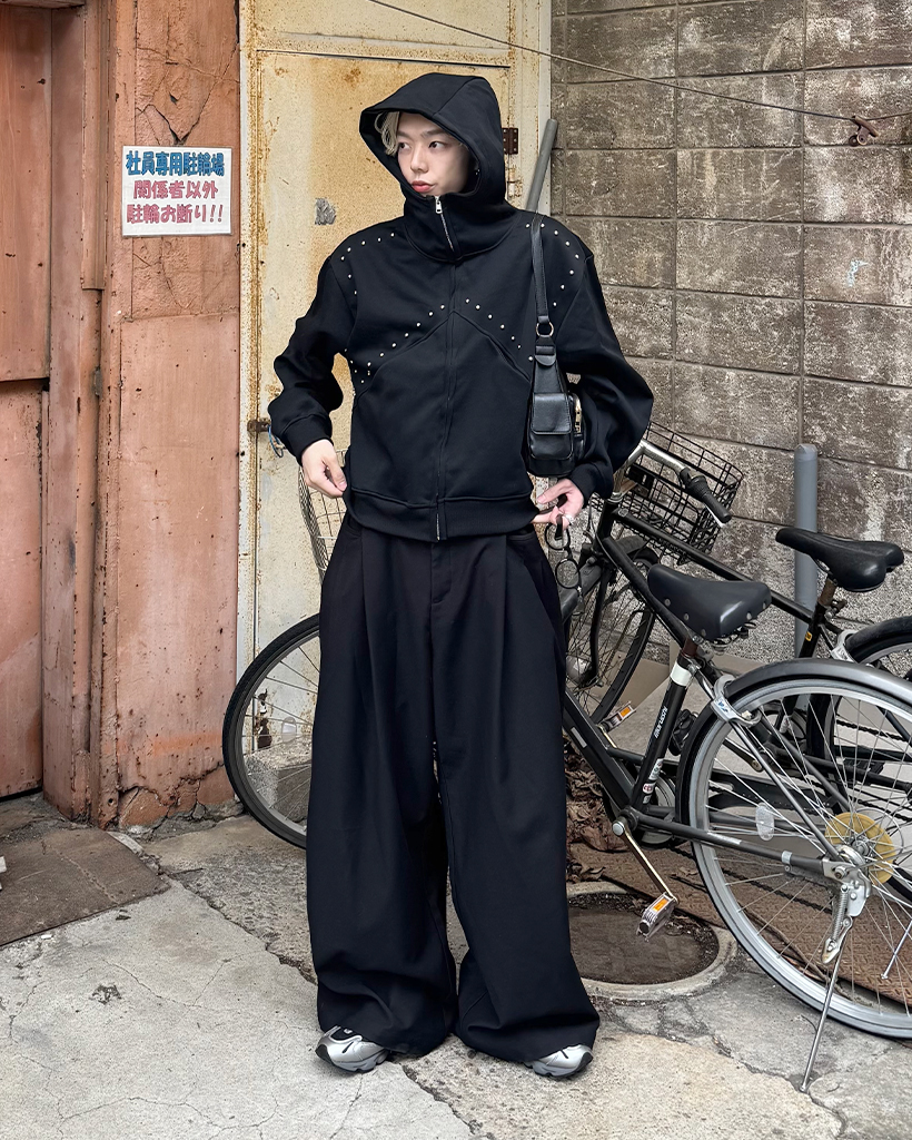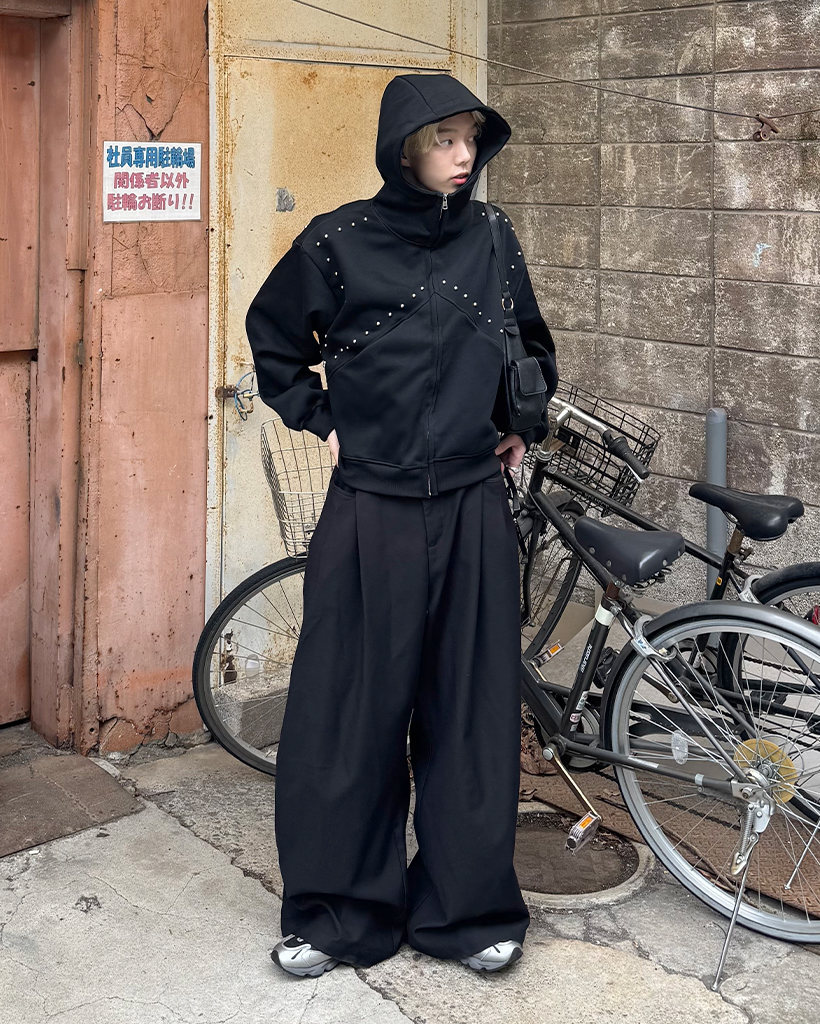 (ユニセックス)ルーズフィットスタッズポイントパーカー